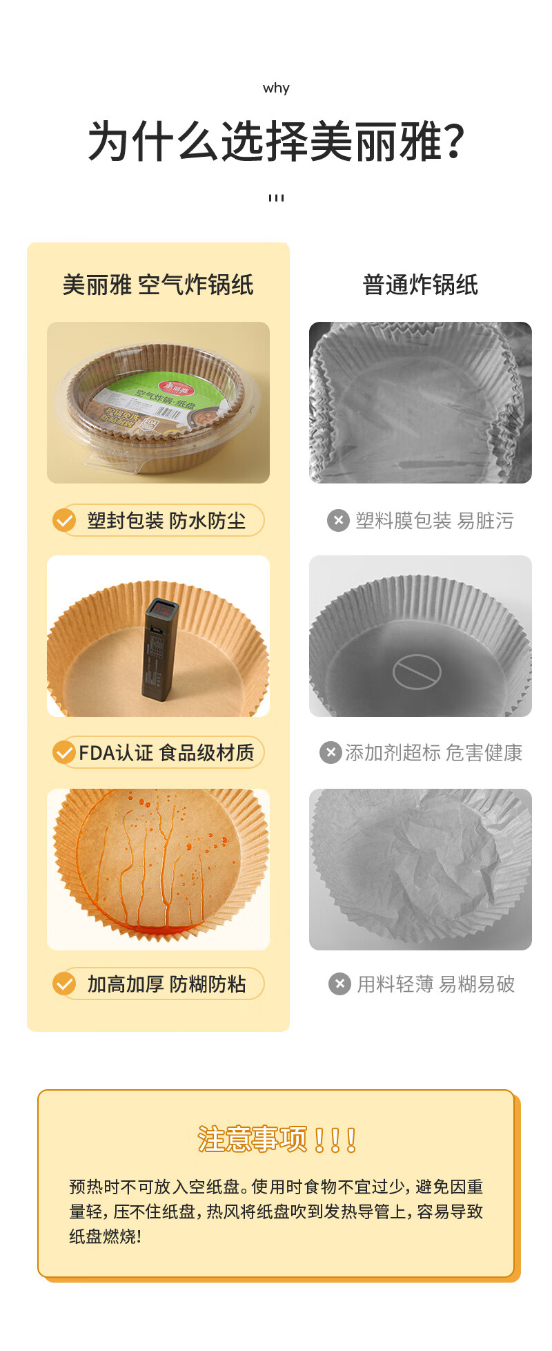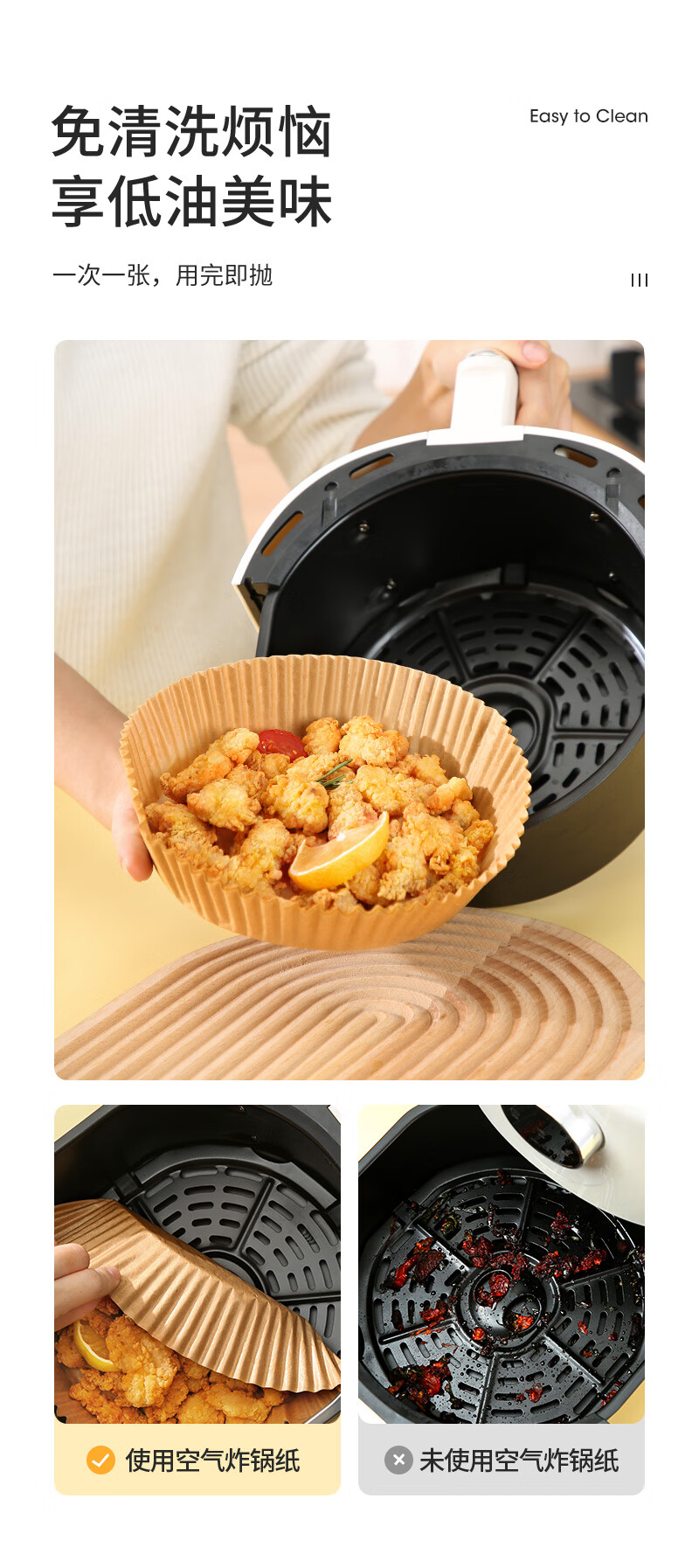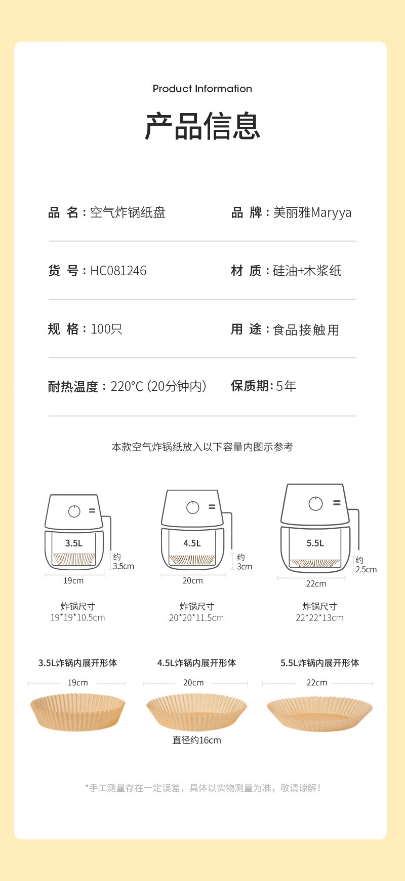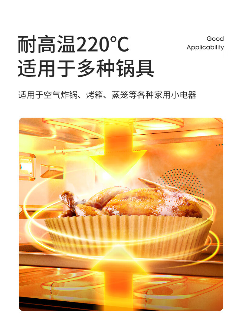 美丽雅空气炸锅专用纸16cm*100只 烘焙吸油隔油纸 圆形硅油纸盘