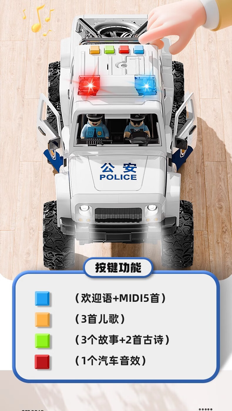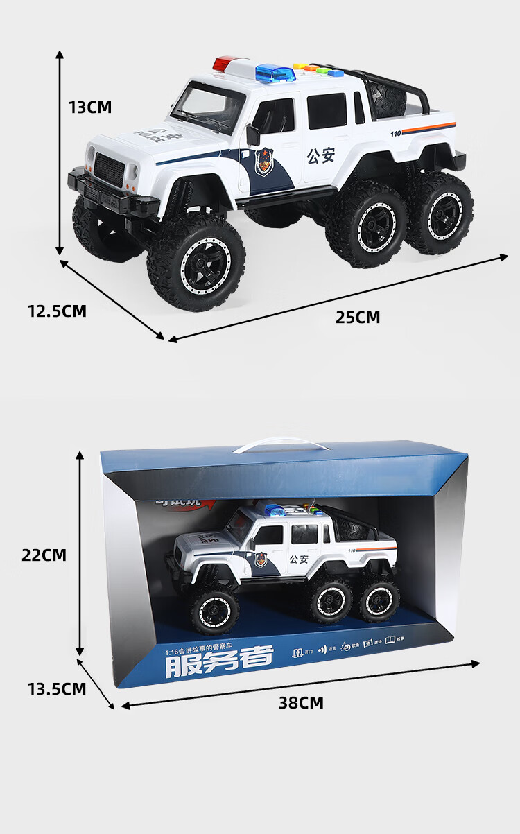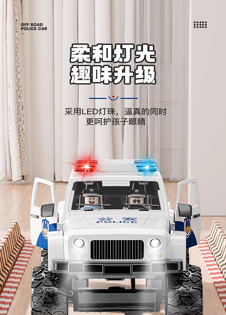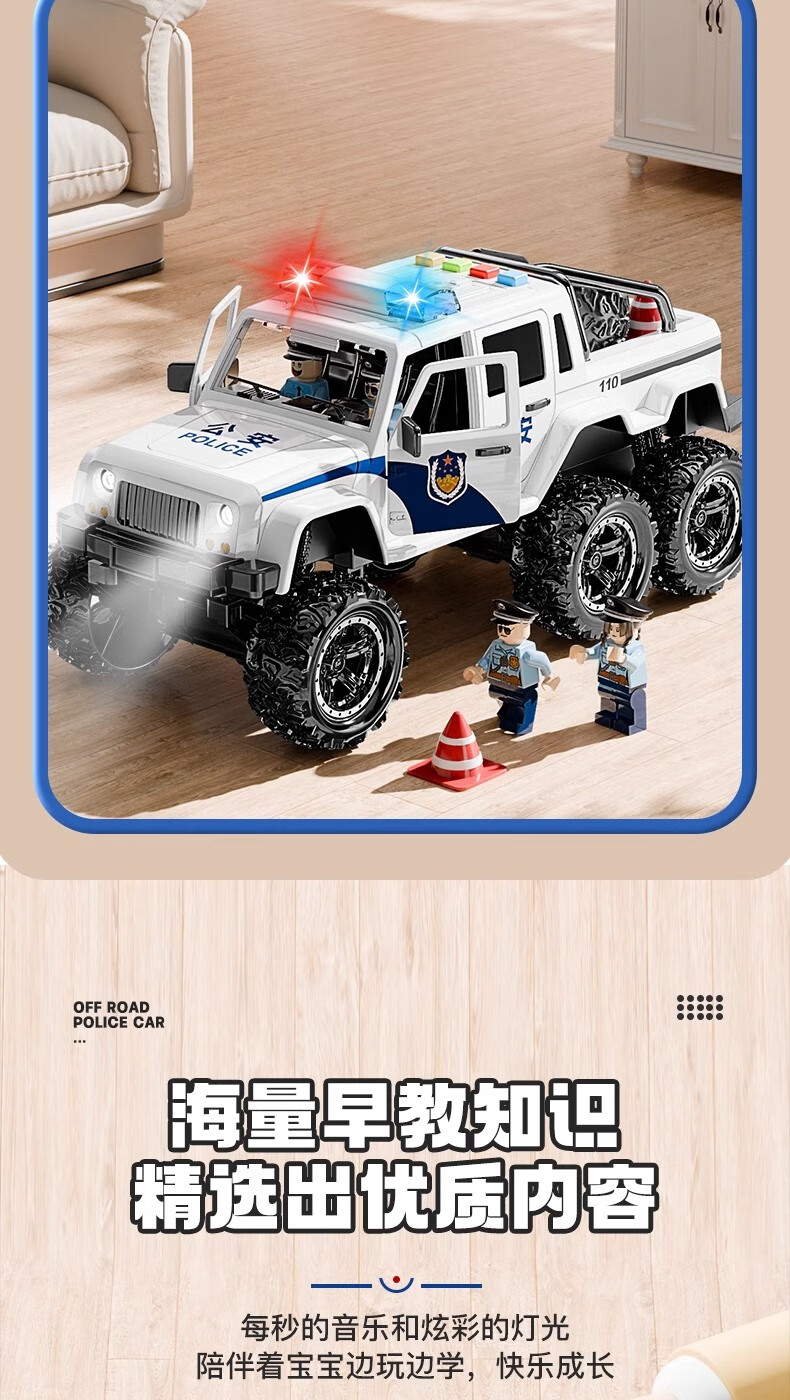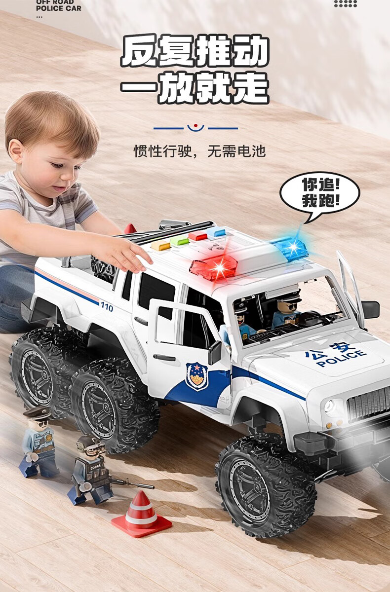 恩贝家族超大号儿童警车玩具车3-6岁六轮特警车汽车模型生日新年礼物男孩