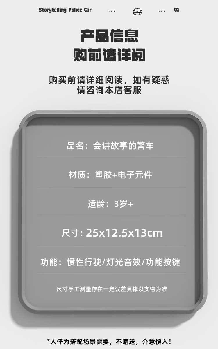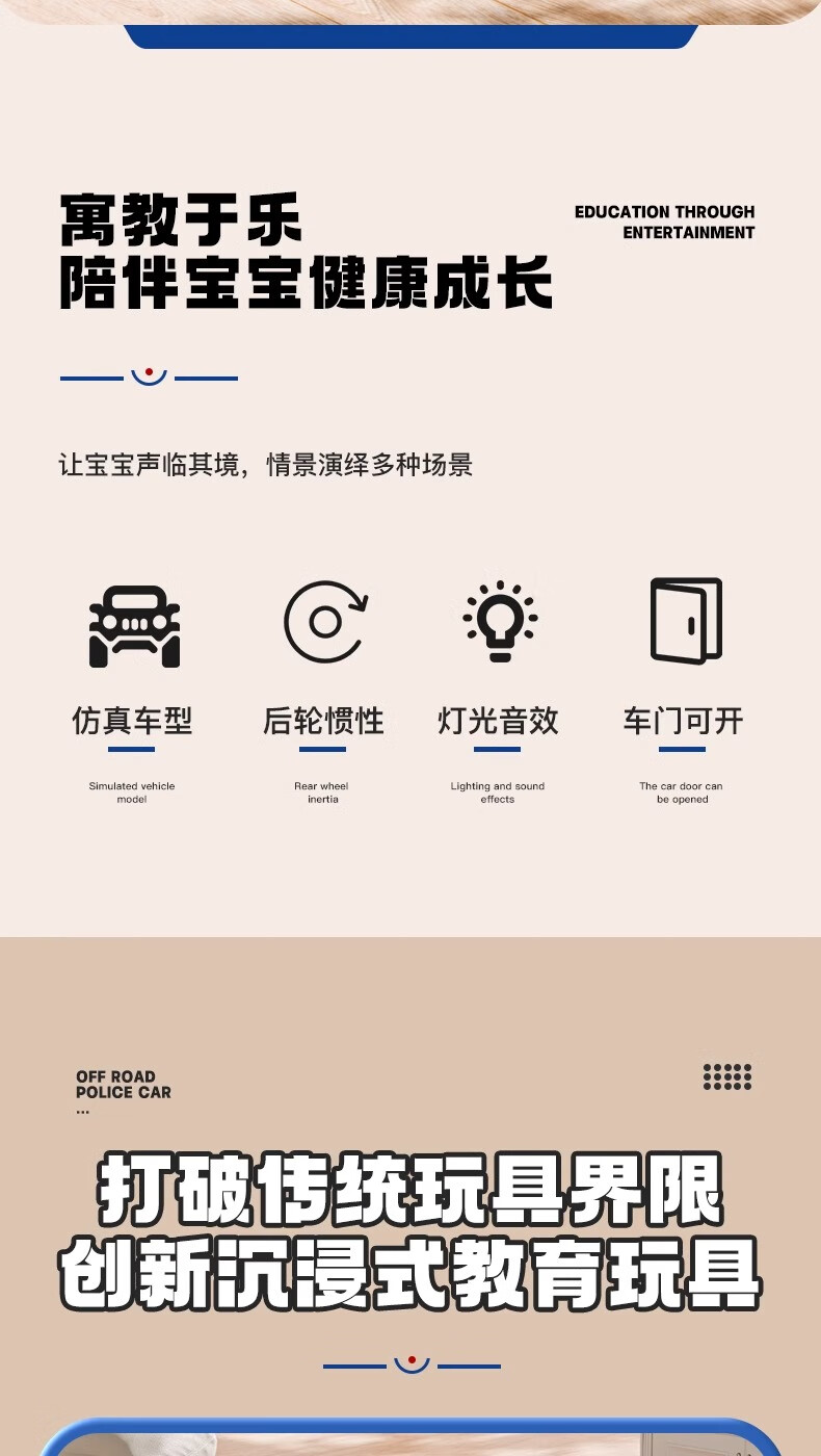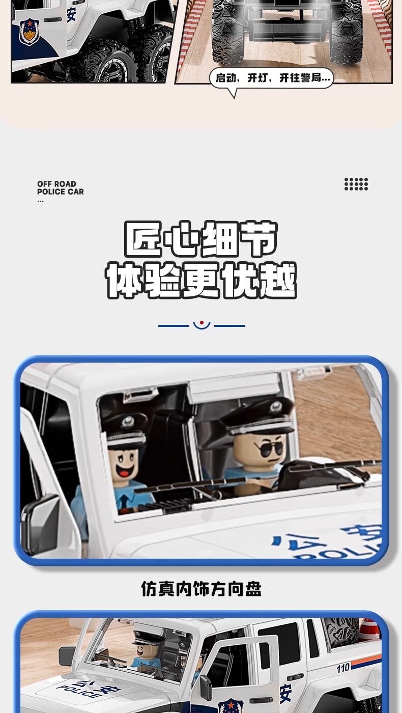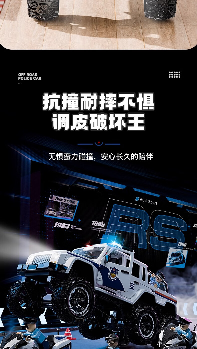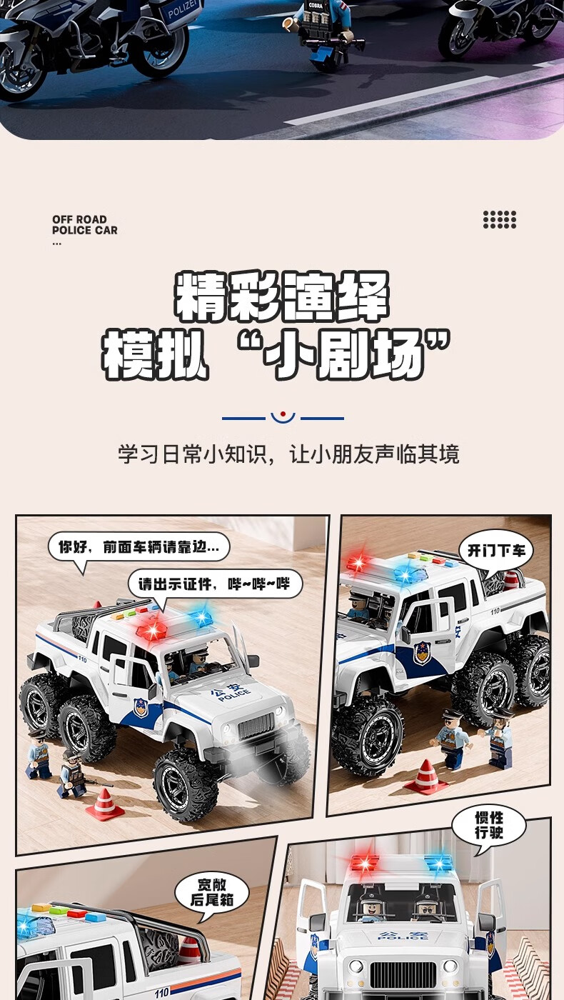 恩贝家族超大号儿童警车玩具车3-6岁六轮特警车汽车模型生日新年礼物男孩
