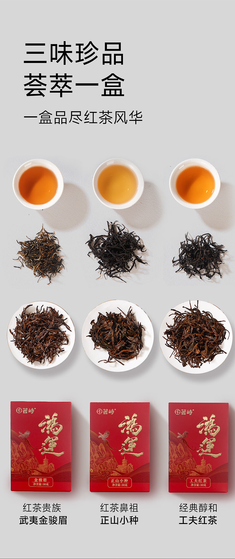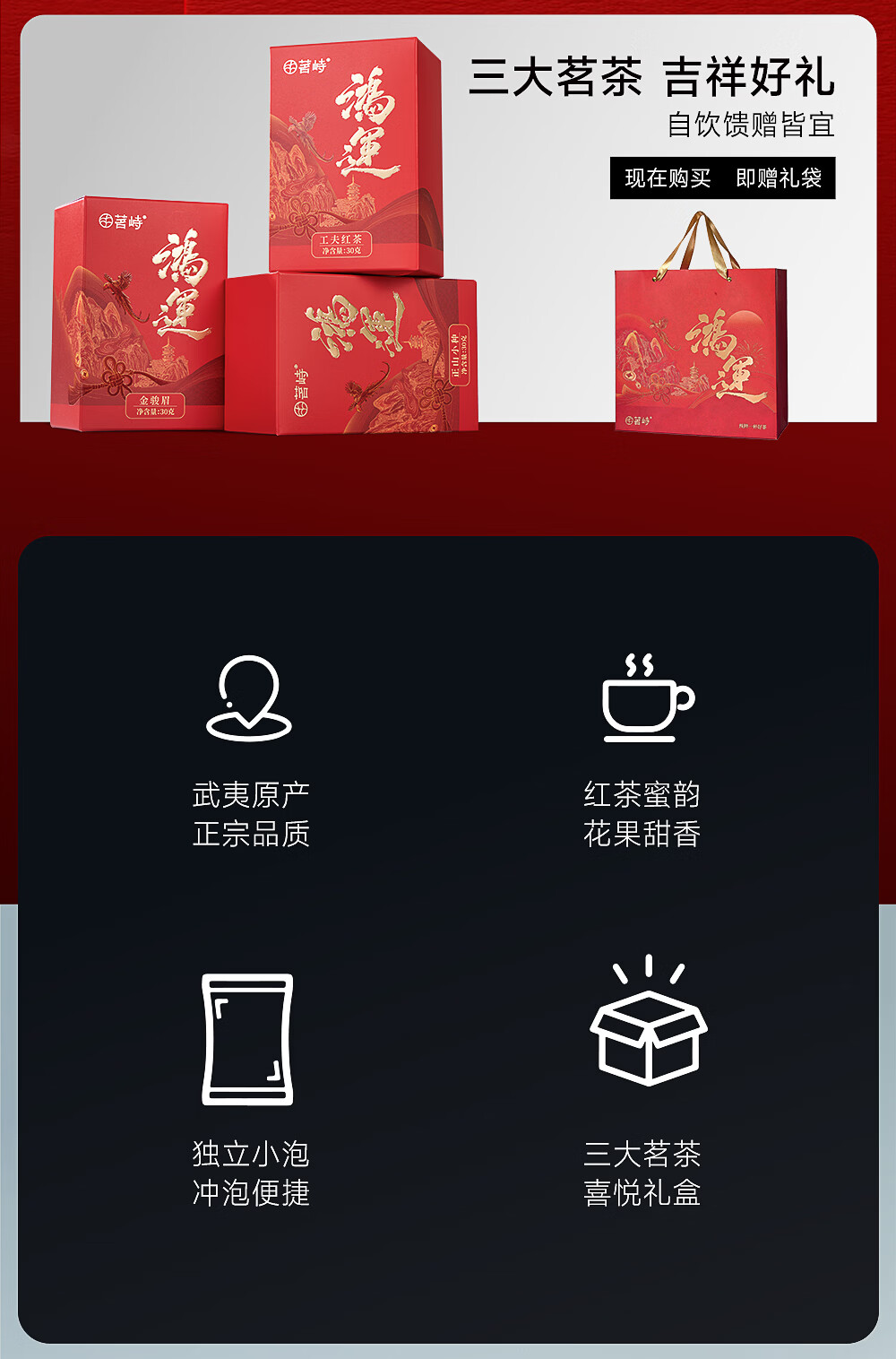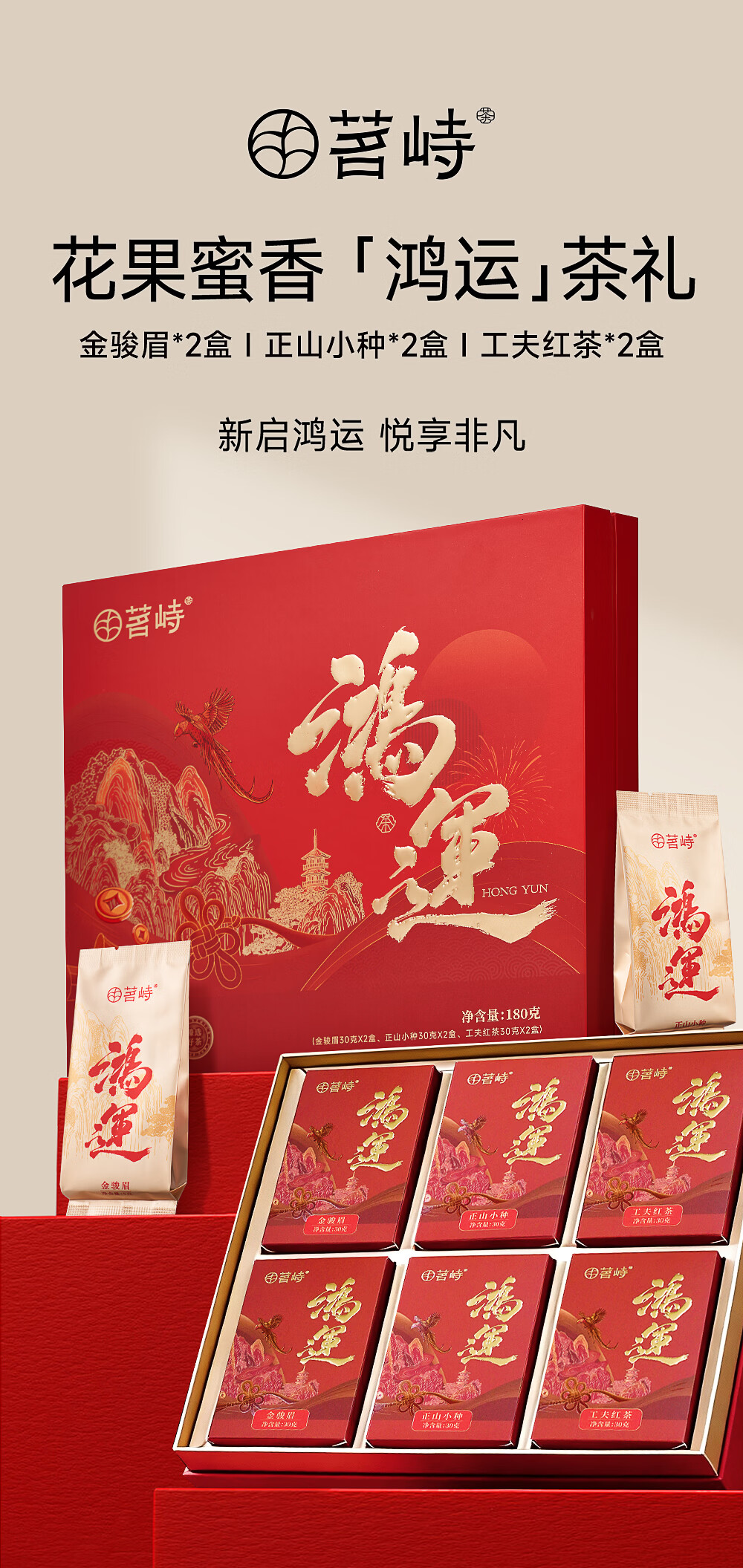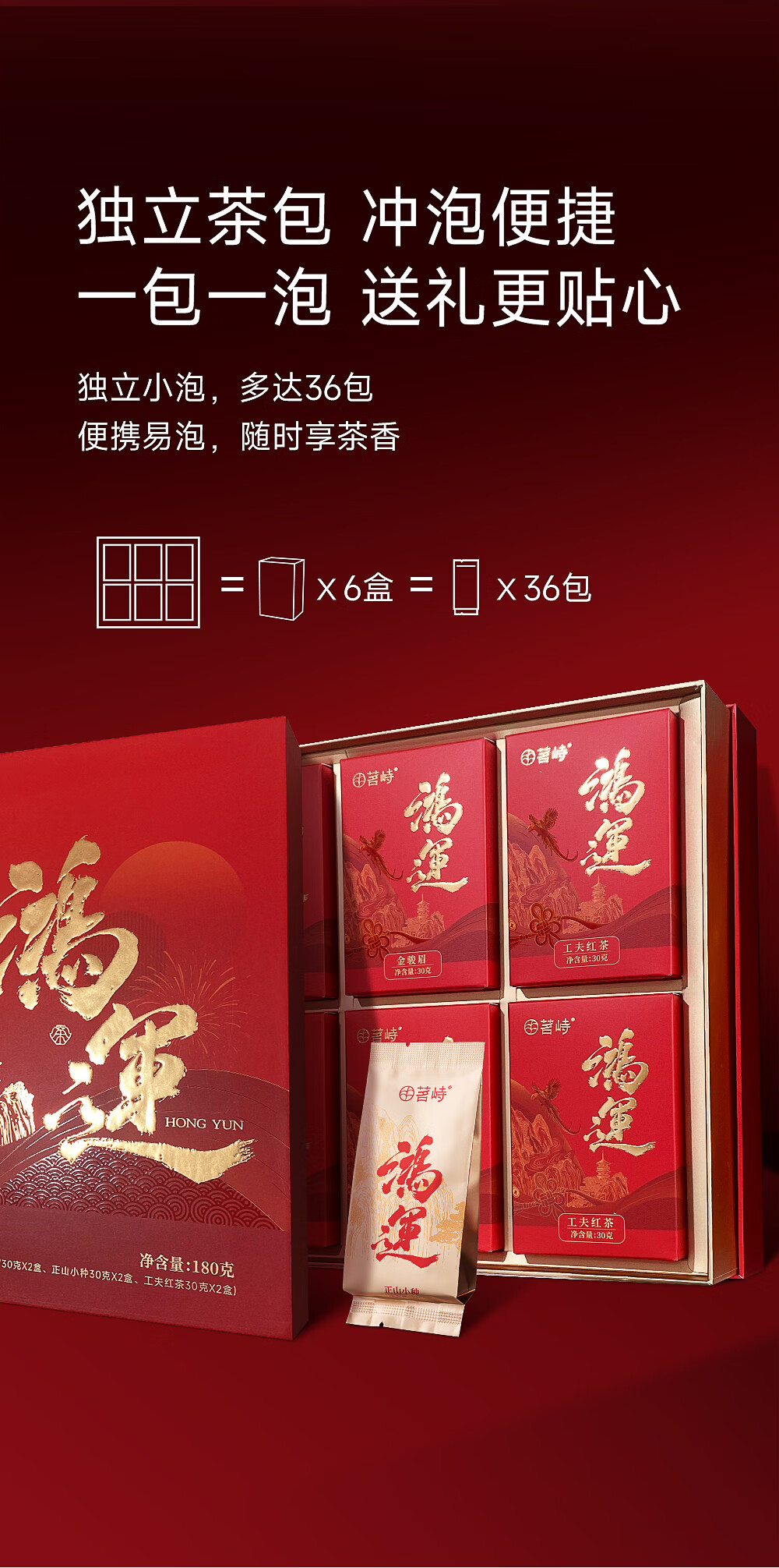 峻山野茗峙 三大茗茶红茶金骏眉正山小种白牡丹茶叶礼盒装送礼年货长辈 鸿运礼盒180g