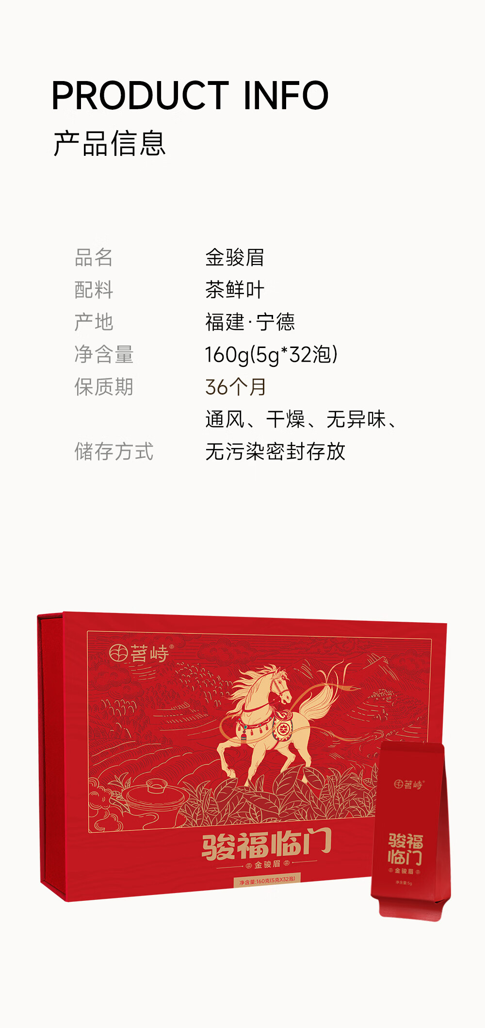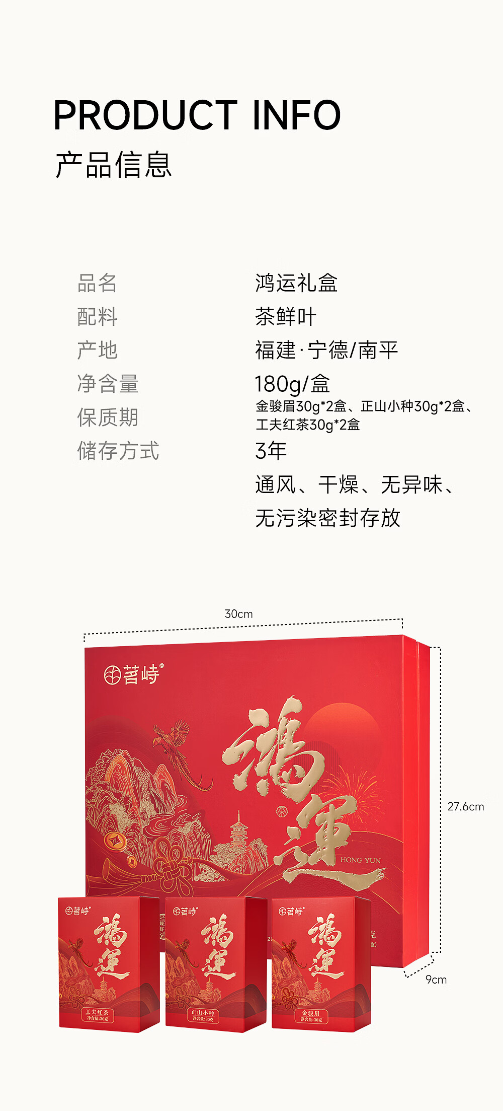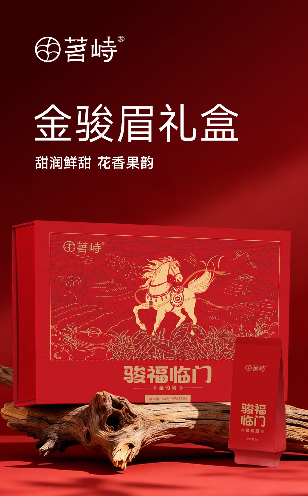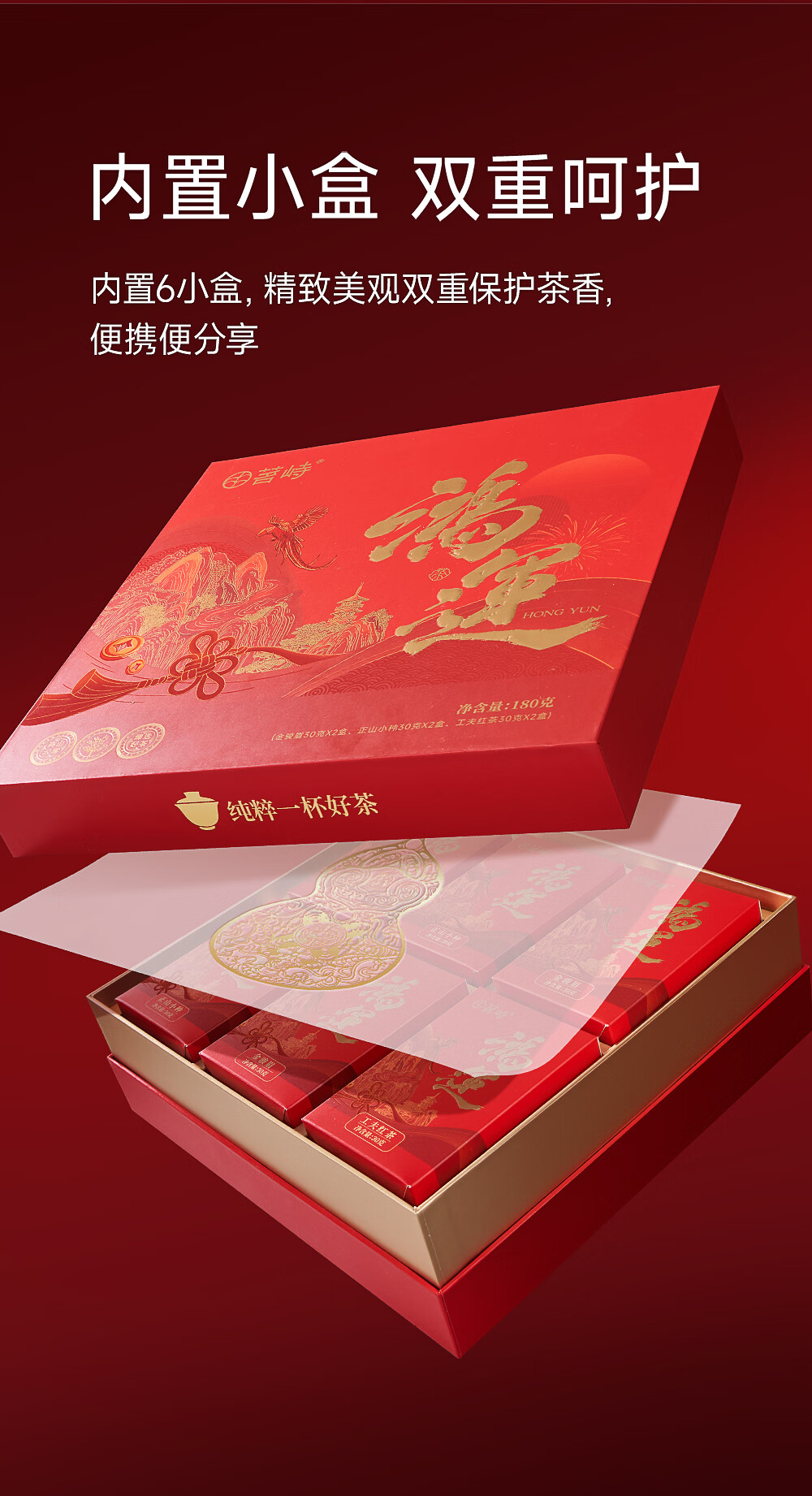 峻山野茗峙 三大茗茶红茶金骏眉正山小种白牡丹茶叶礼盒装送礼年货长辈 鸿运礼盒180g