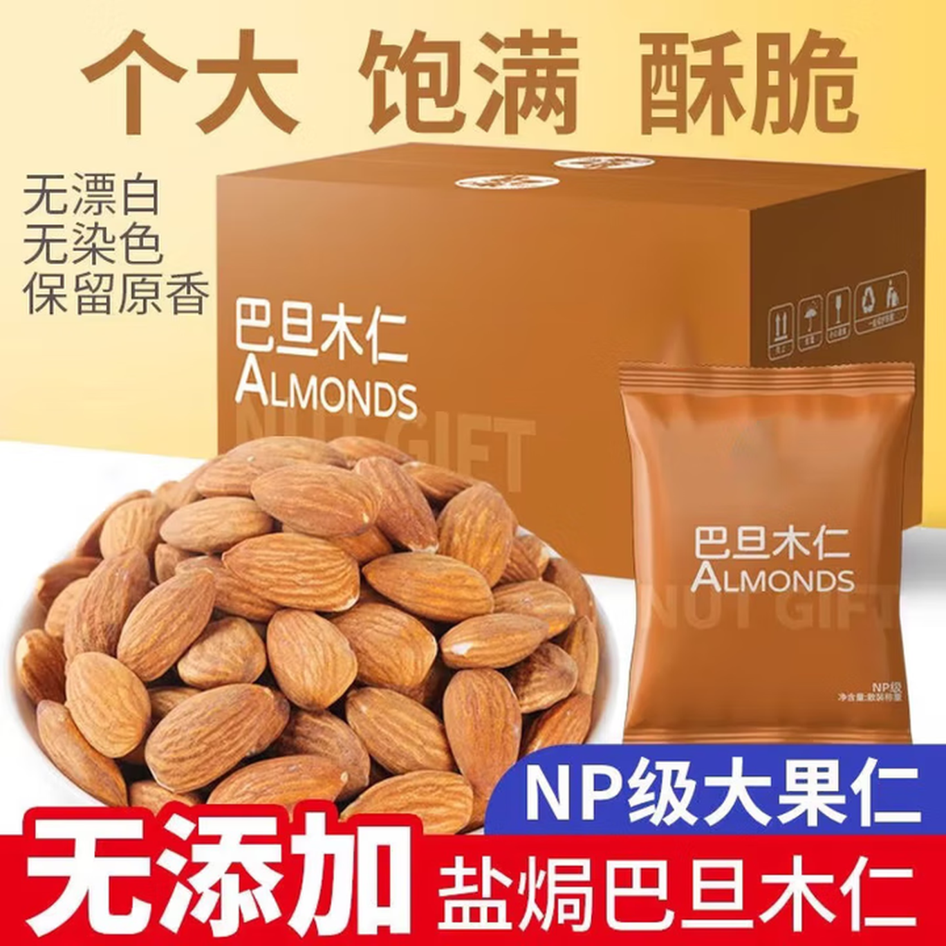 每日扁桃仁巴旦木仁烘培盐焗杏仁巴达木干果孕妇原味烘培 10包