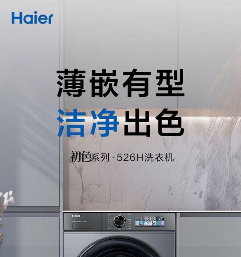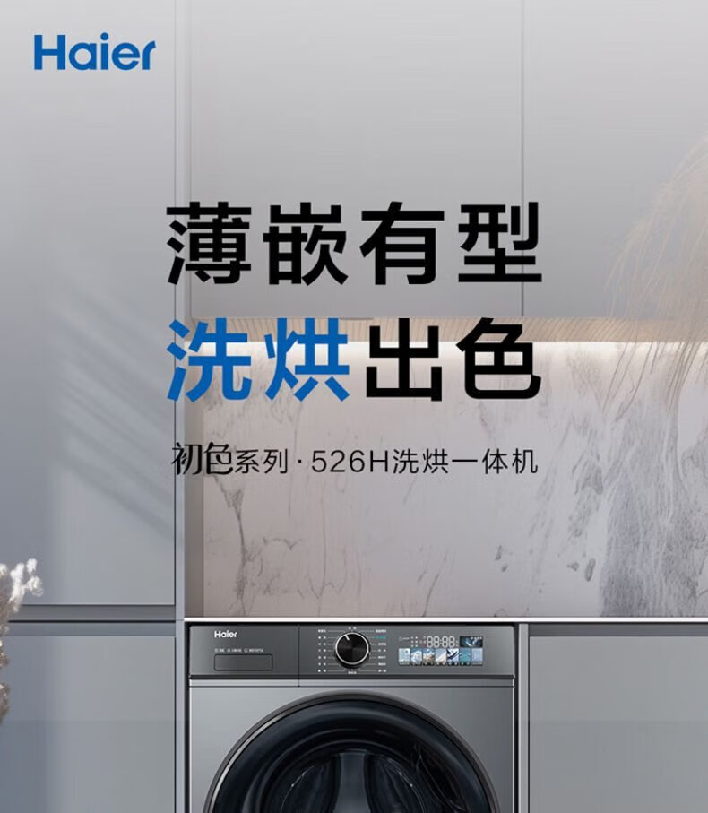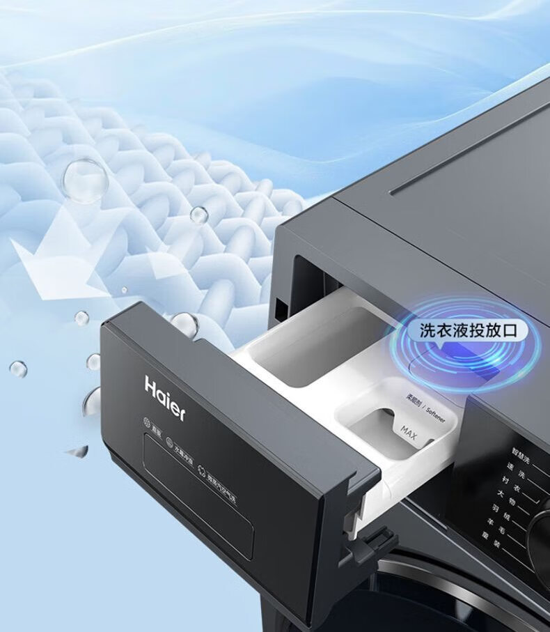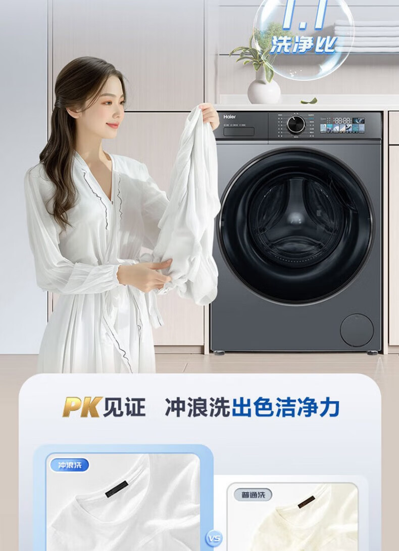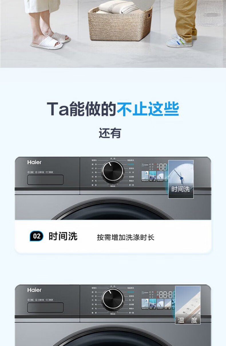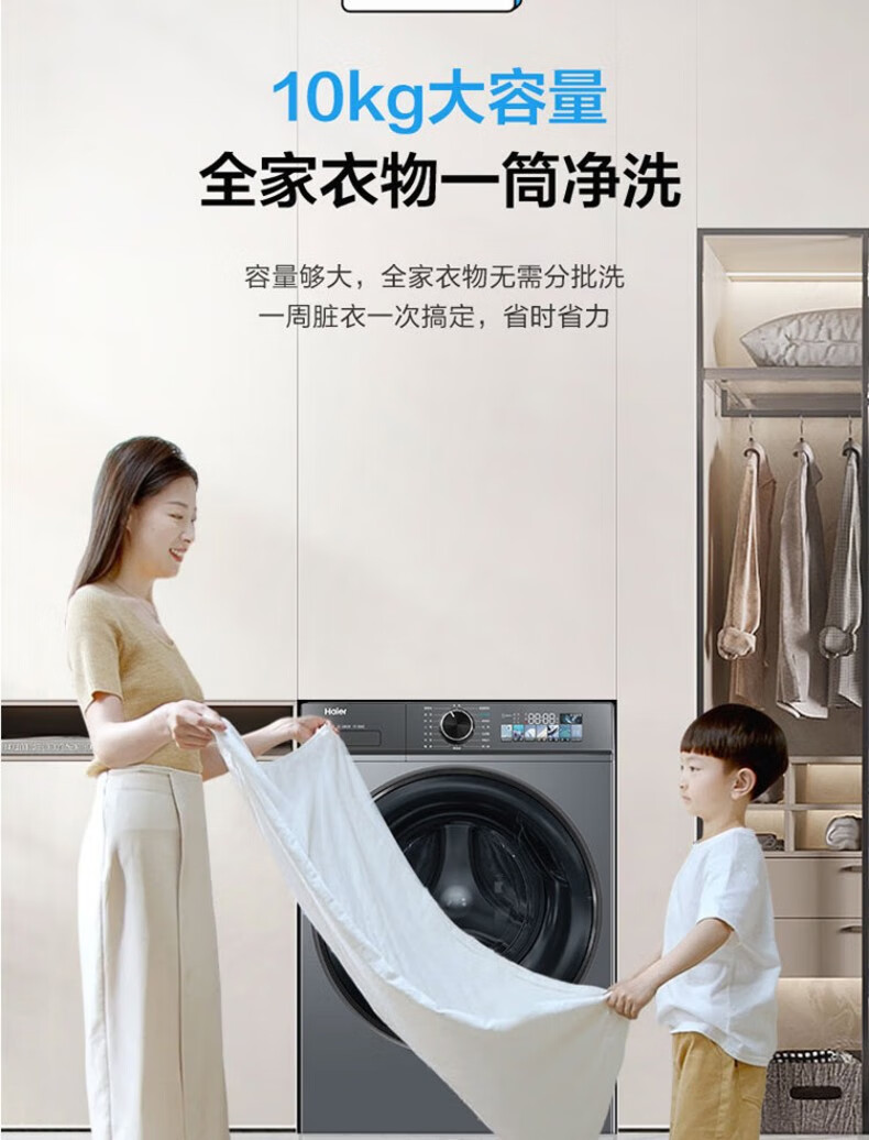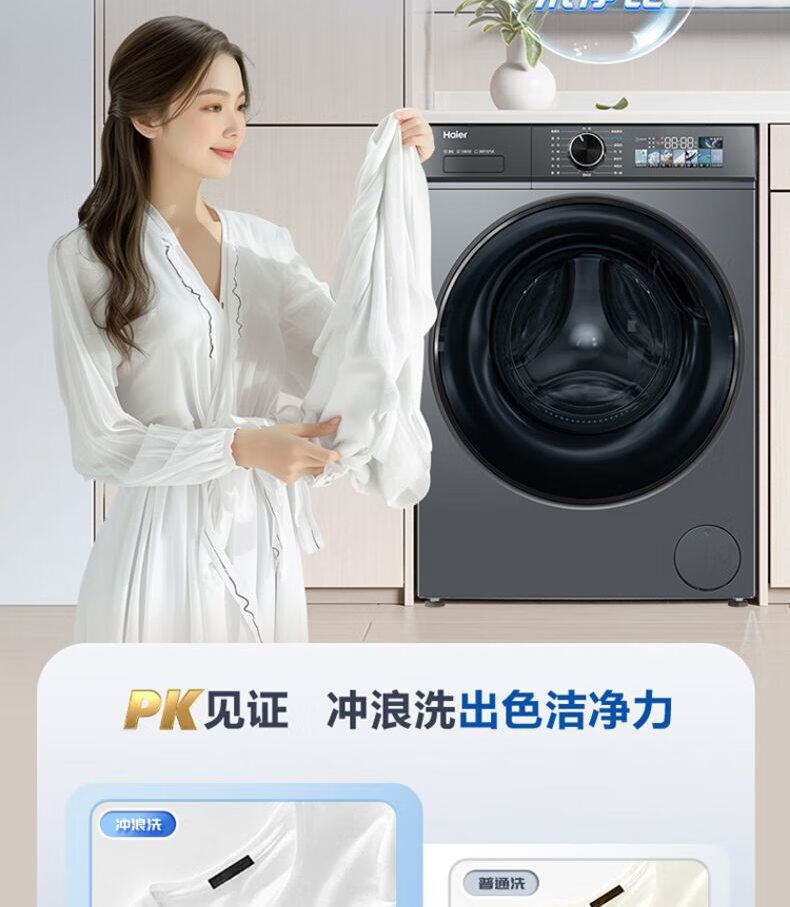 海尔滚筒洗衣机直驱变频全自动晶彩屏10公斤洗烘一体机带烘干家用除菌螨超薄智能投放双喷淋冲浪洗 初色洗脱一体+直驱变频+智能投放 滚筒 10kg