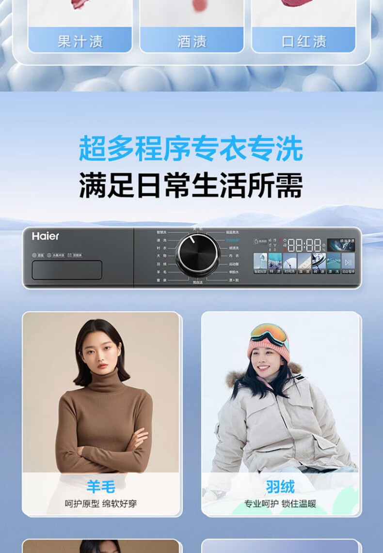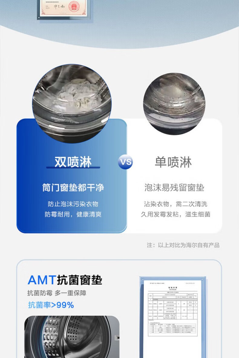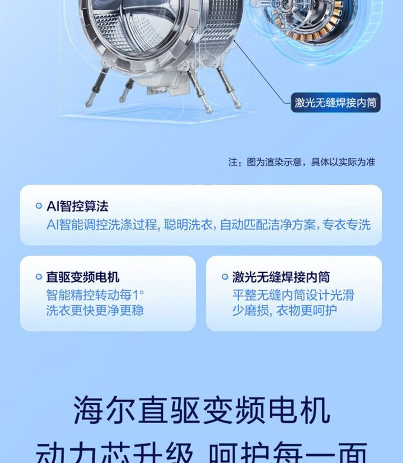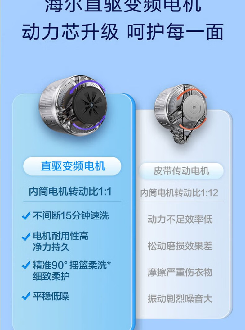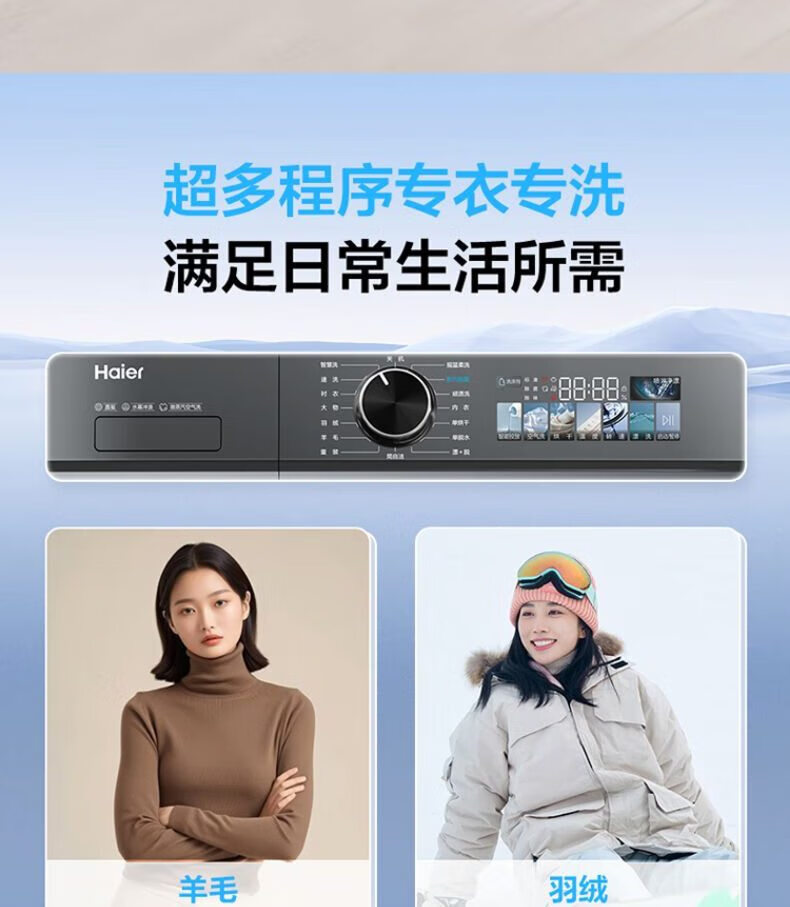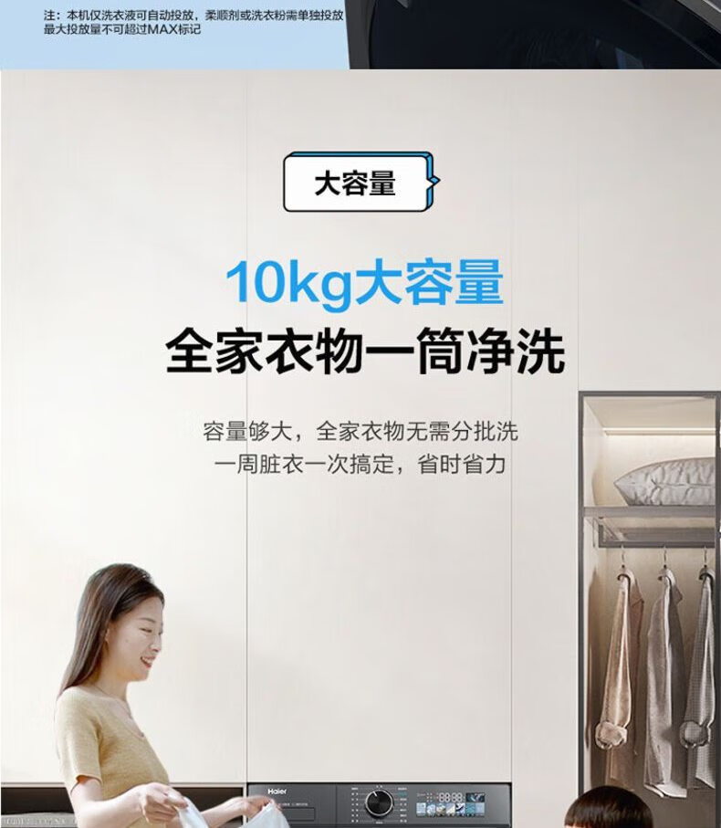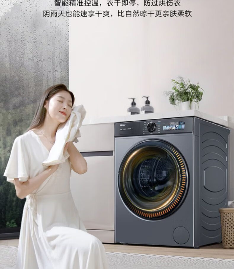 海尔滚筒洗衣机直驱变频全自动晶彩屏10公斤洗烘一体机带烘干家用除菌螨超薄智能投放双喷淋冲浪洗 初色洗脱一体+直驱变频+智能投放 滚筒 10kg