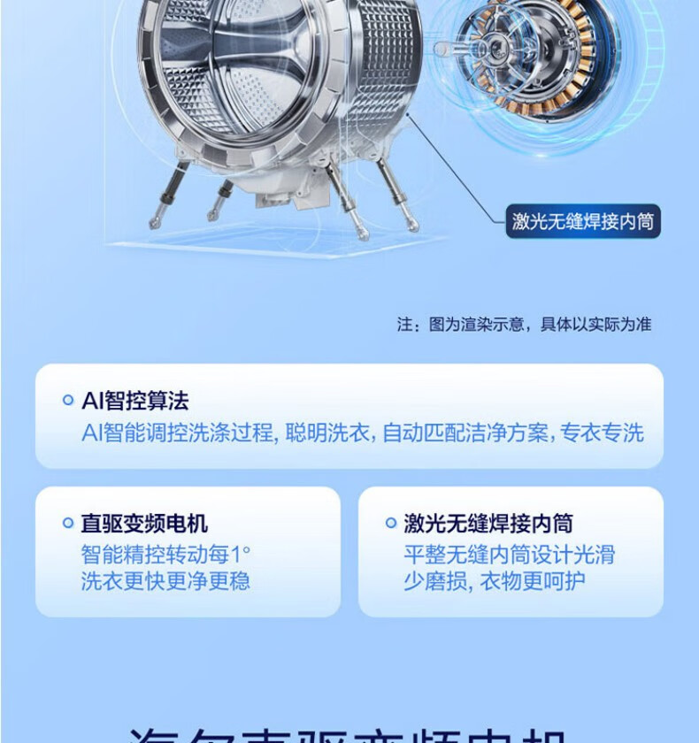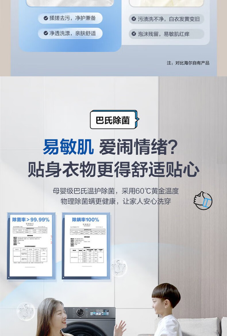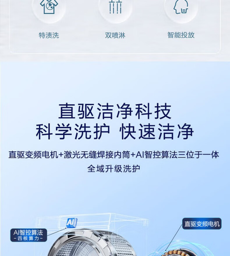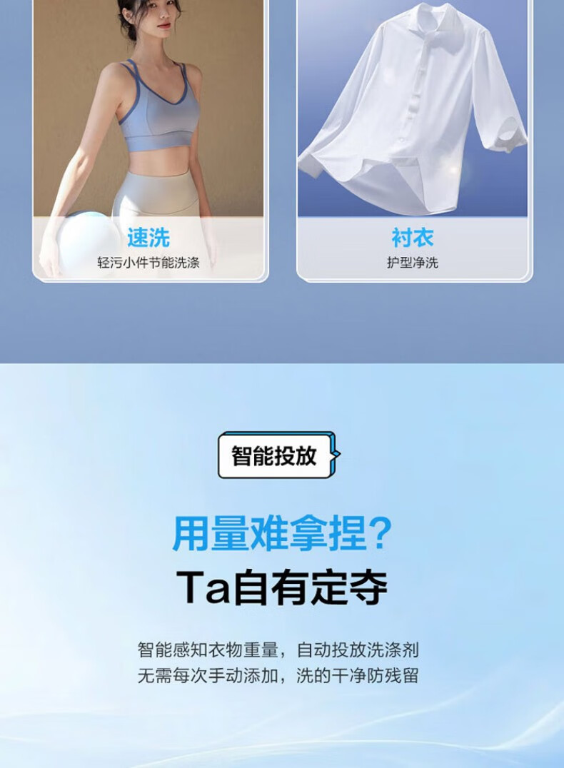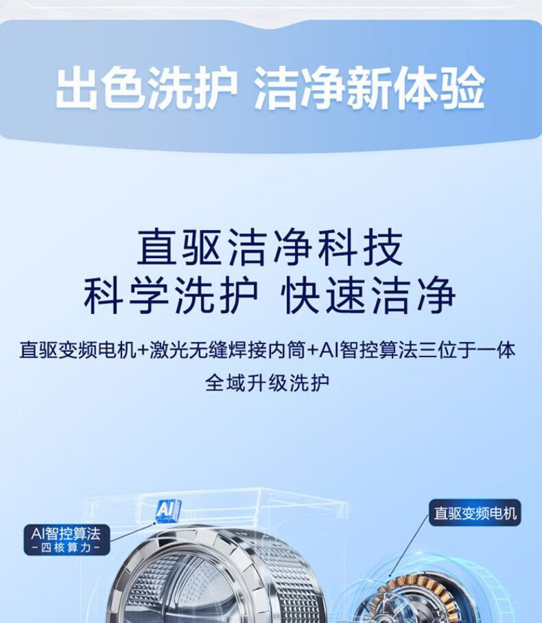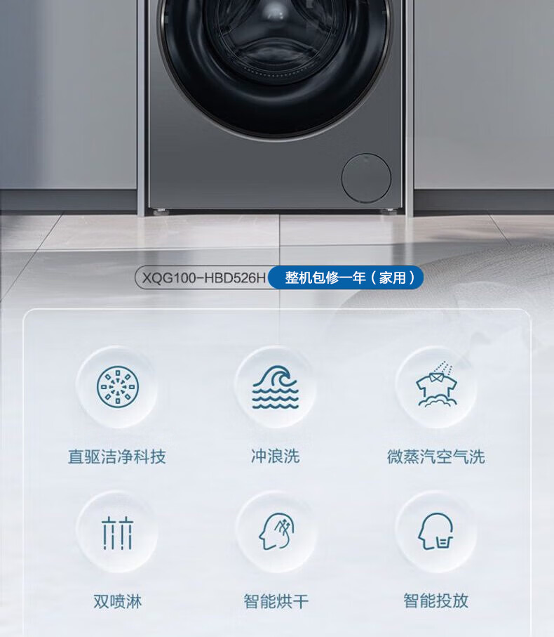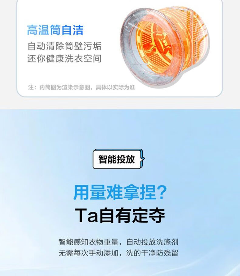 海尔滚筒洗衣机直驱变频全自动晶彩屏10公斤洗烘一体机带烘干家用除菌螨超薄智能投放双喷淋冲浪洗 初色洗脱一体+直驱变频+智能投放 滚筒 10kg