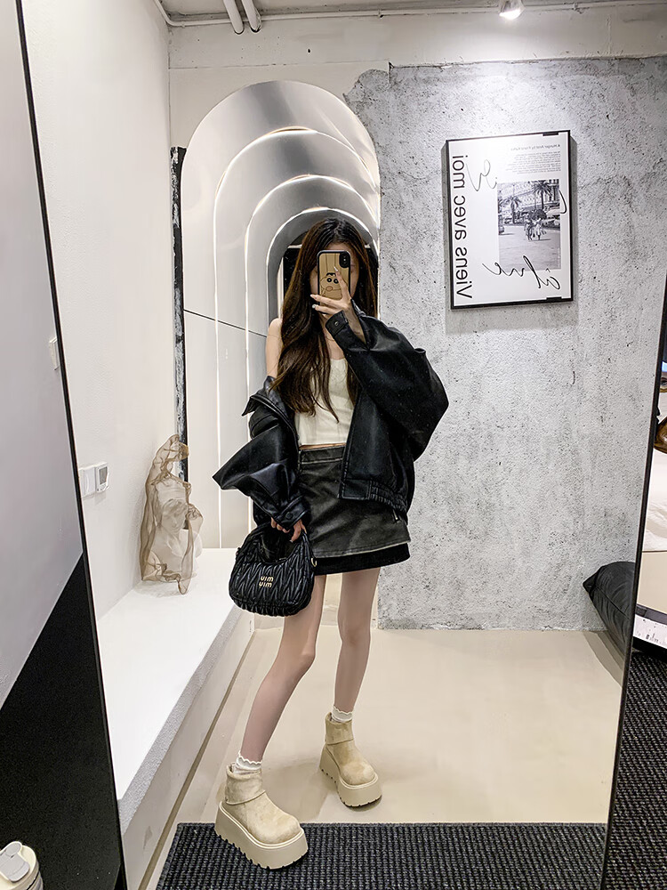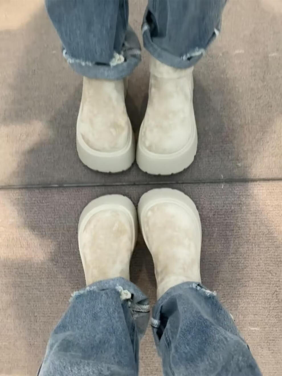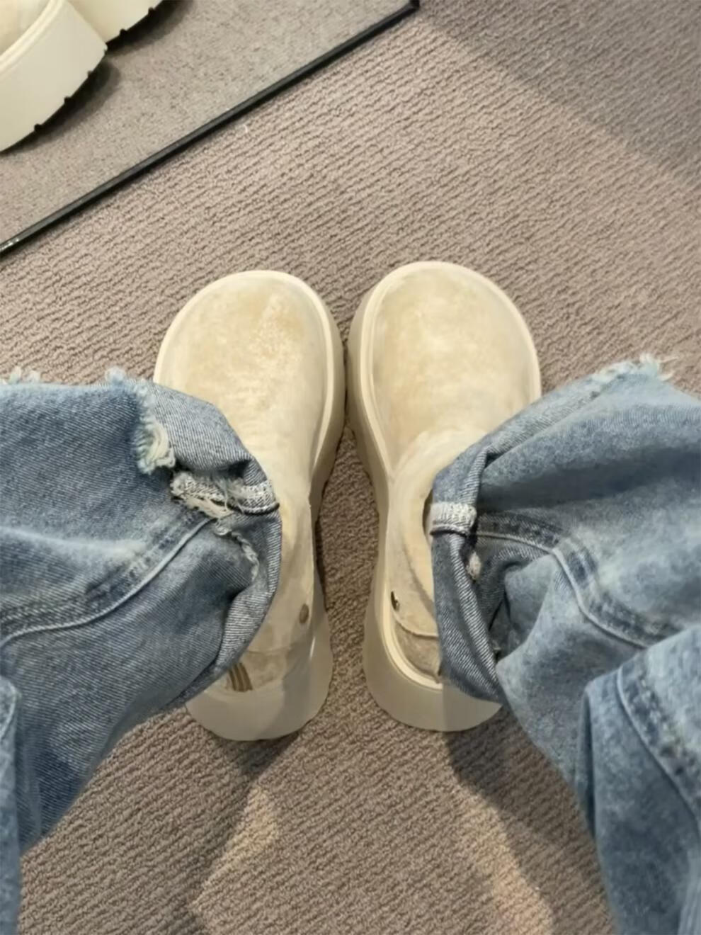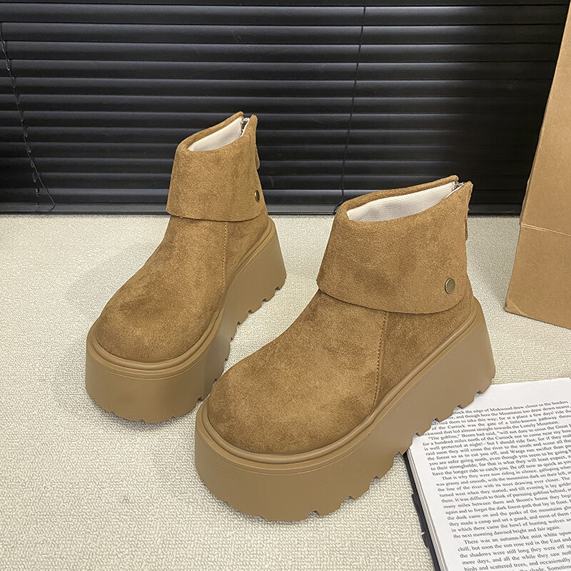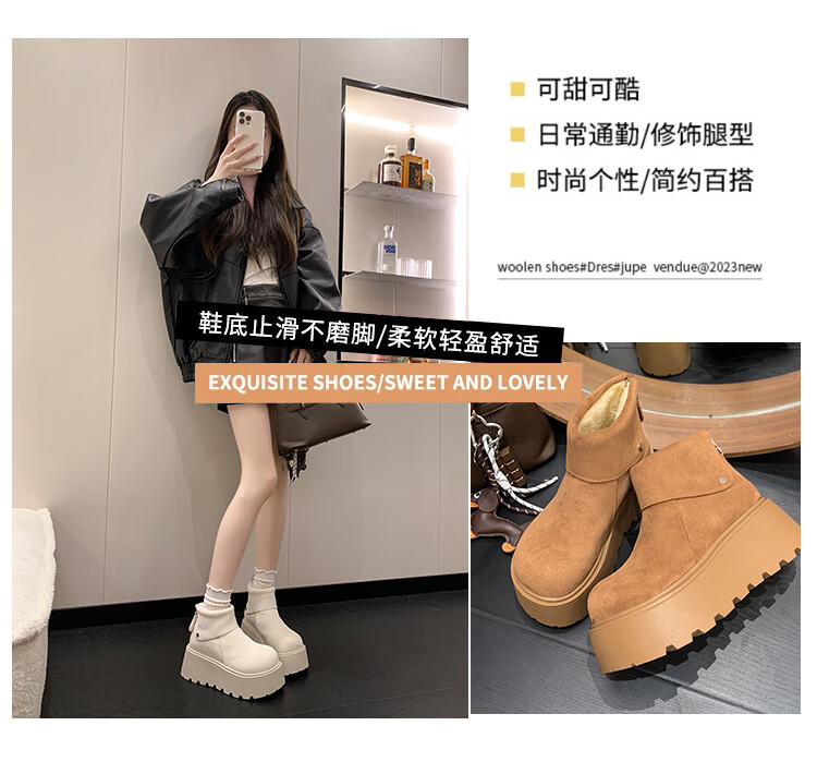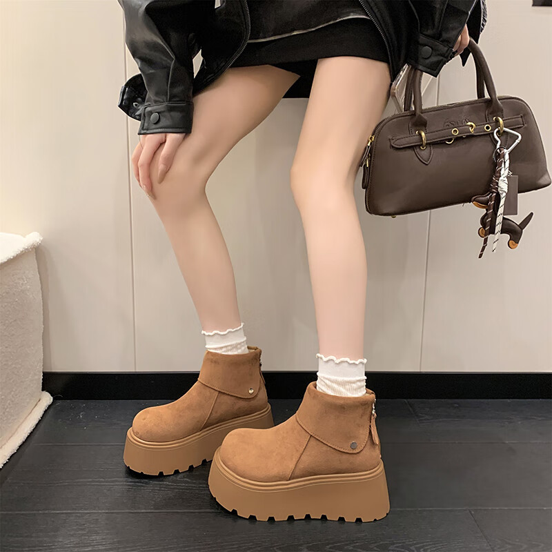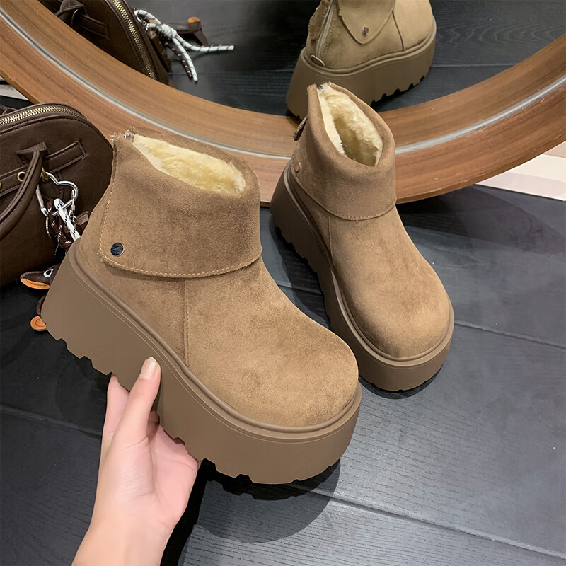 稻草人(MEXICAN)7CM增高真皮厚底美拉德勃肯短靴女秋冬雪地靴棉鞋加绒保暖马丁靴 米杏色-单里 35 标准尺码