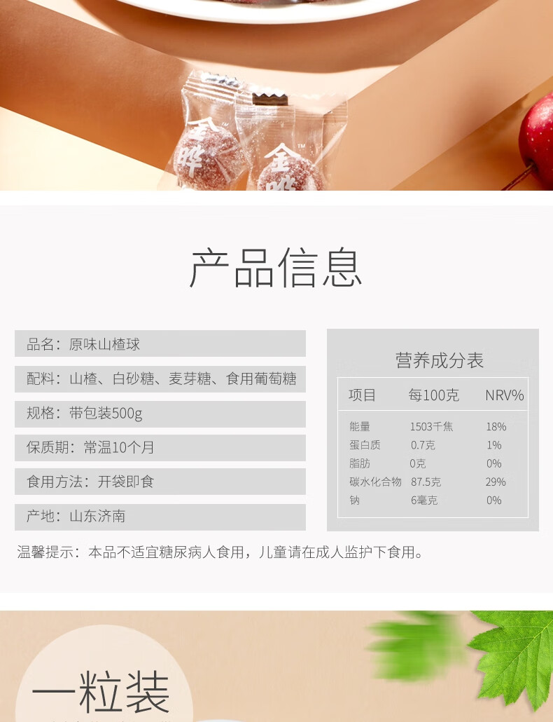 金晔 休闲零食 山楂球雪丽球宝宝零食独立小包装500g/袋