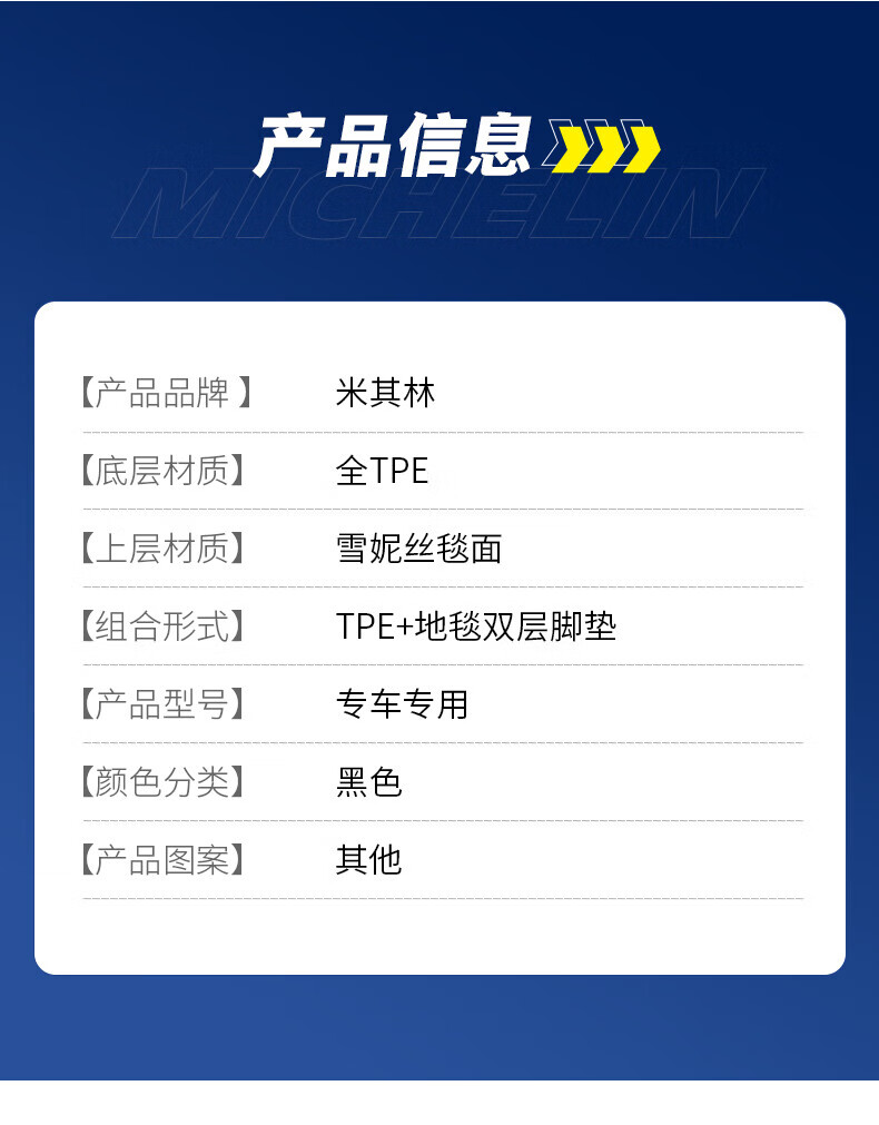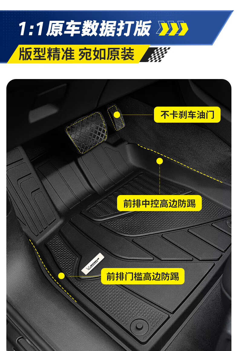 米其林(MICHELIN)tpe汽车脚垫适用特斯拉宝马奥迪A6L大众帕萨特问界理想本田丰田 五座 TPE脚垫+雪妮丝毯面 下单请备注车型年份