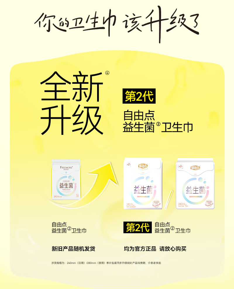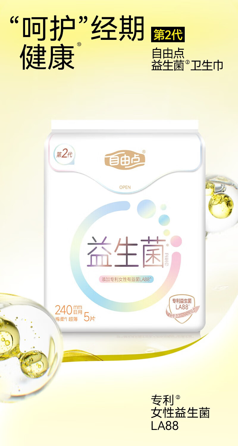 自由点(FREEMORE)益生菌卫生巾超薄棉柔姨妈巾日用夜用组合装经期用批发一整箱 280益生菌组合47片【含赠】
