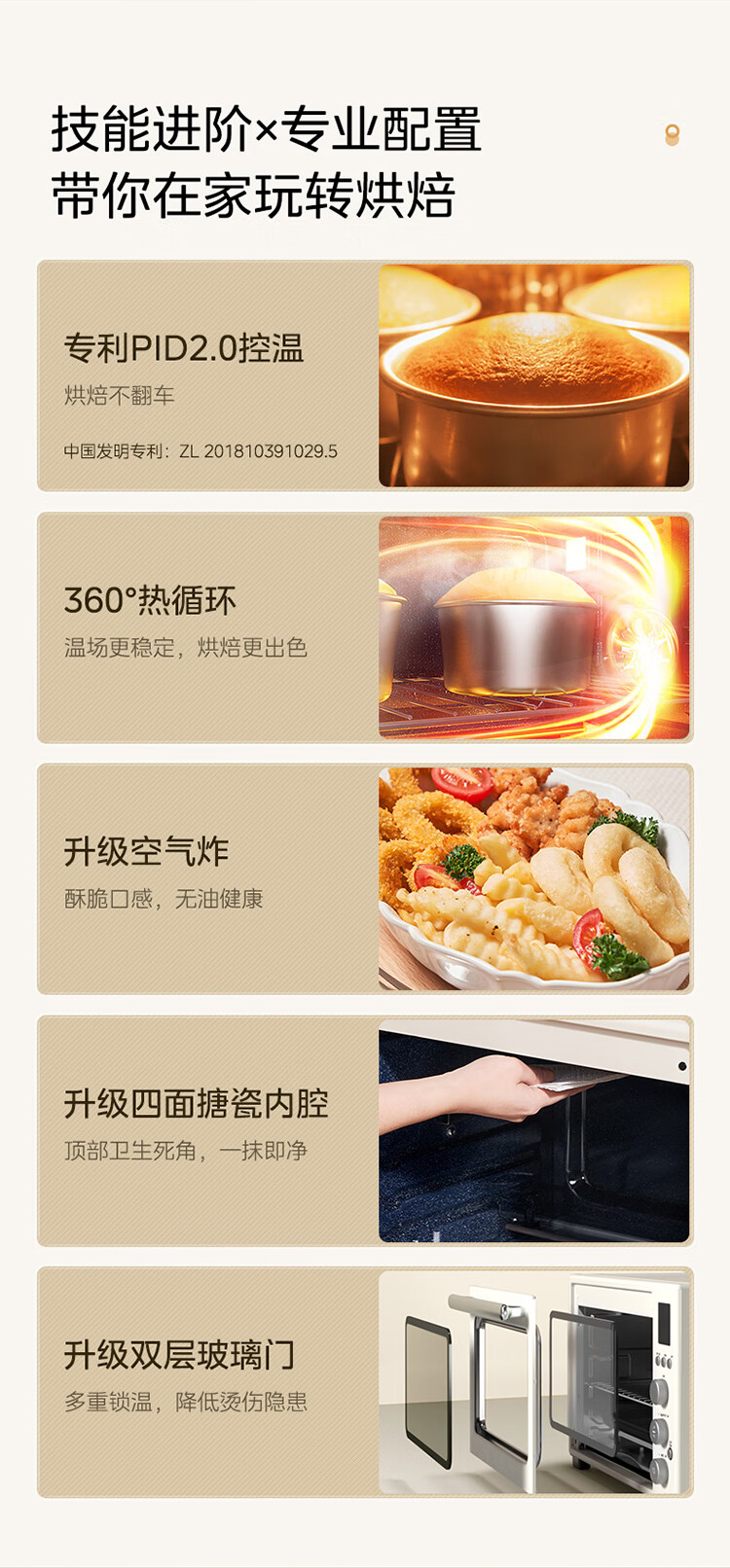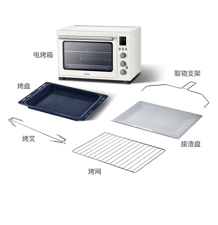 美的(Midea)多功能风炉电烤箱家用 空气炸锅烤箱一体机/40L大容量/四面搪瓷/热风循环/PT4012W二代