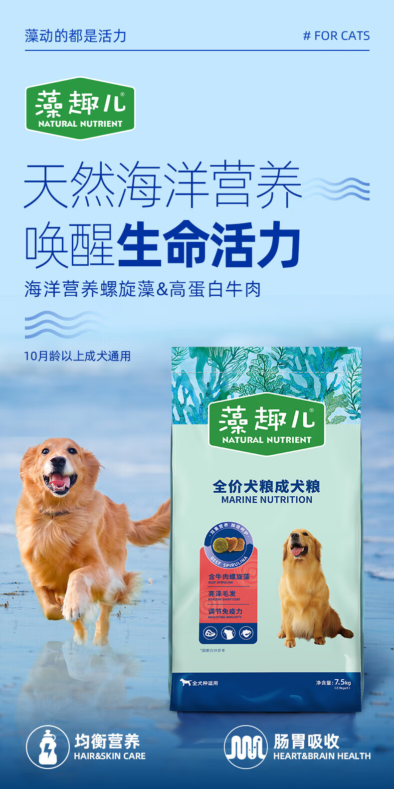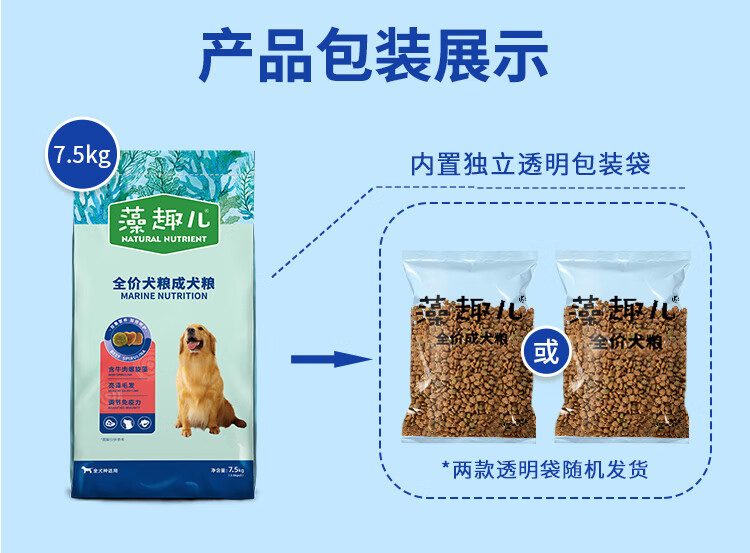 麦富迪狗粮 藻趣儿狗粮成犬粮牛肉螺旋藻 均衡营养7.5kg/15斤