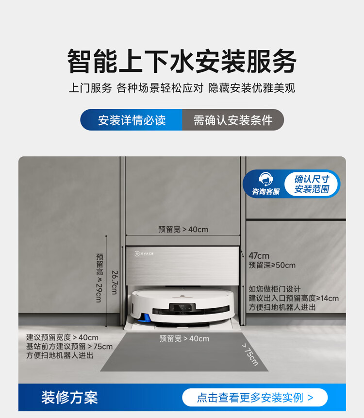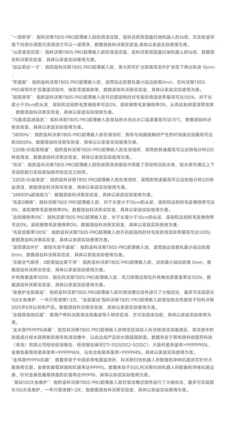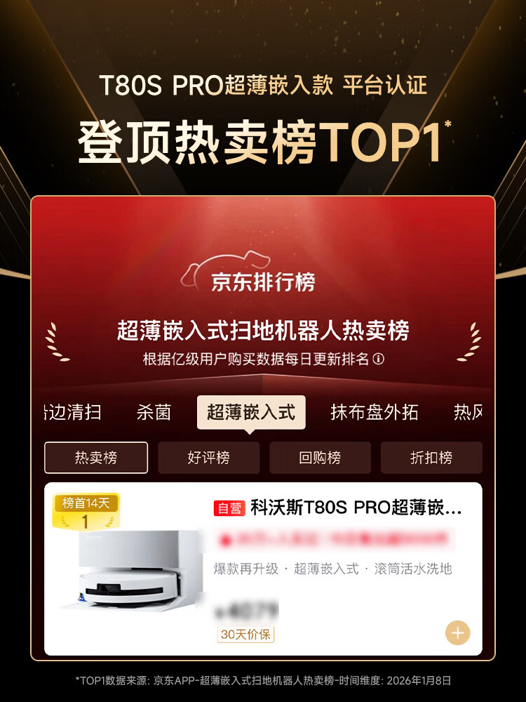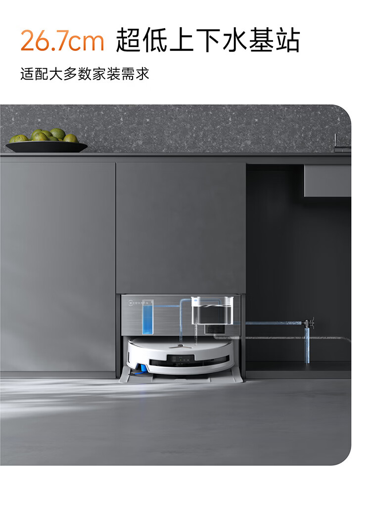 科沃斯T80S PRO超薄嵌入款扫地机器人自动清洗自动集尘滚筒洗地机器人热水洗拖布上下水版DEX62