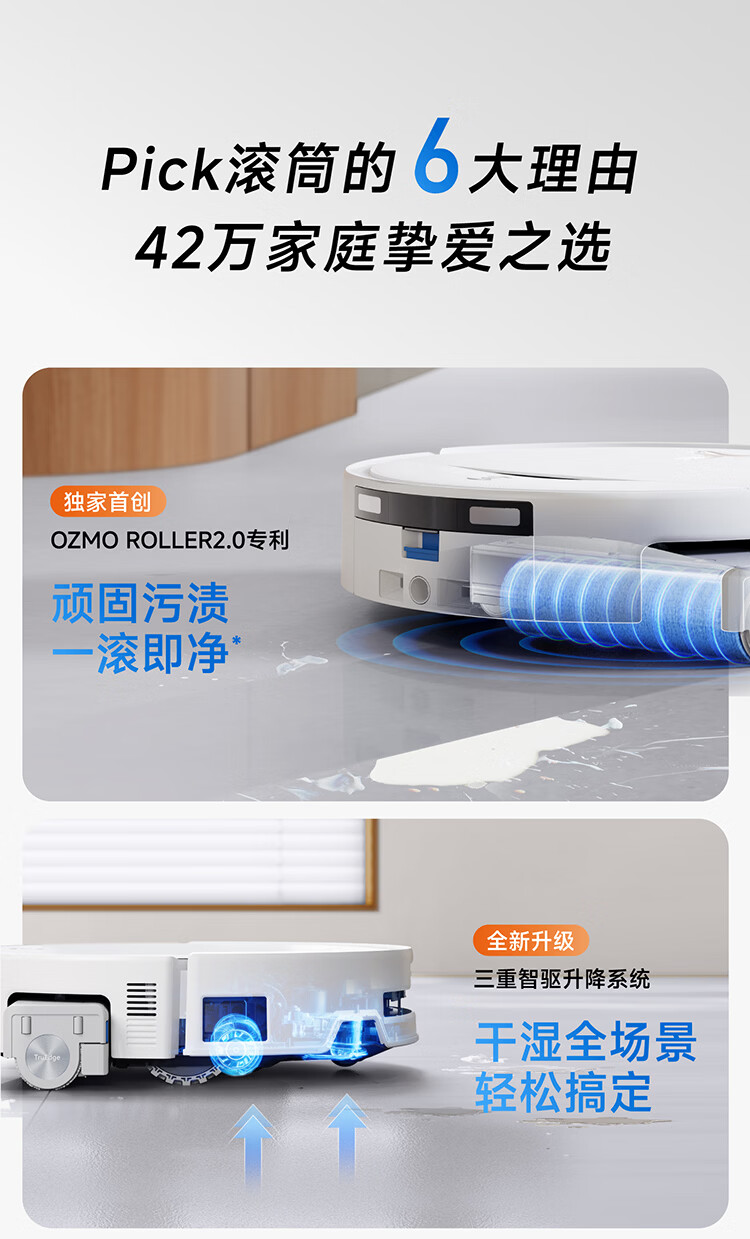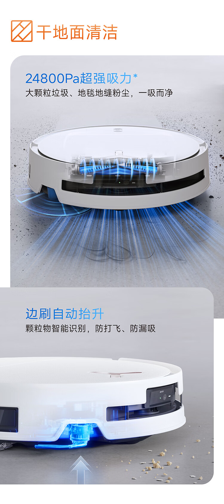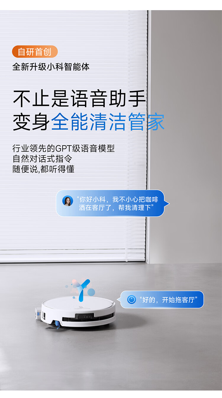 科沃斯T80S PRO超薄嵌入款扫地机器人自动清洗自动集尘滚筒洗地机器人热水洗拖布上下水版DEX62