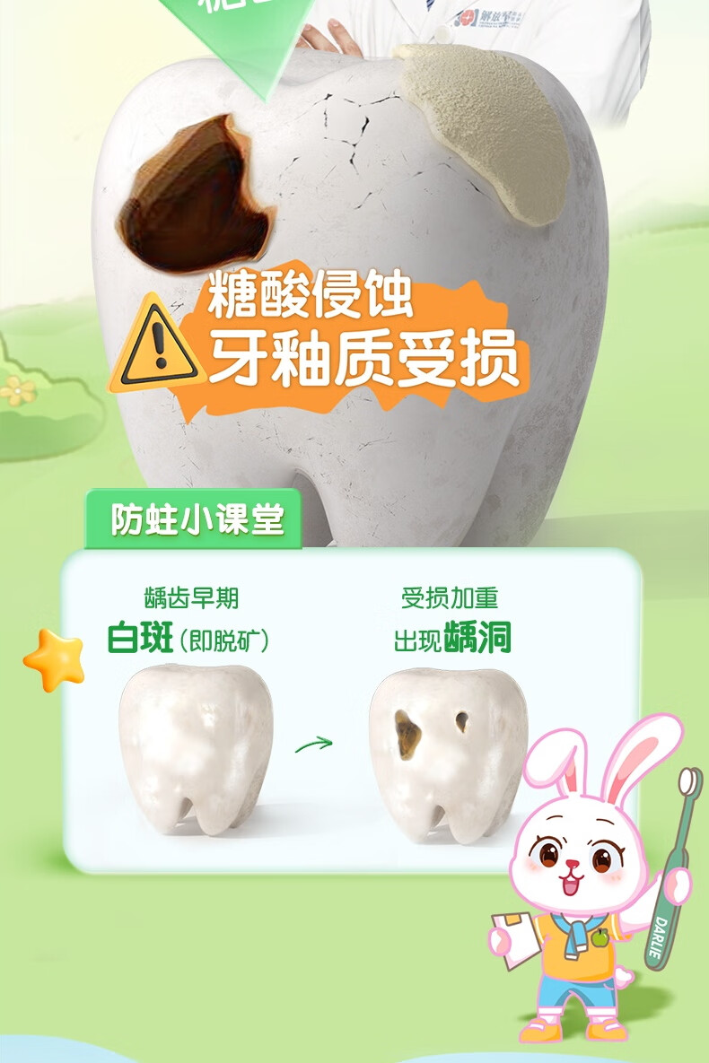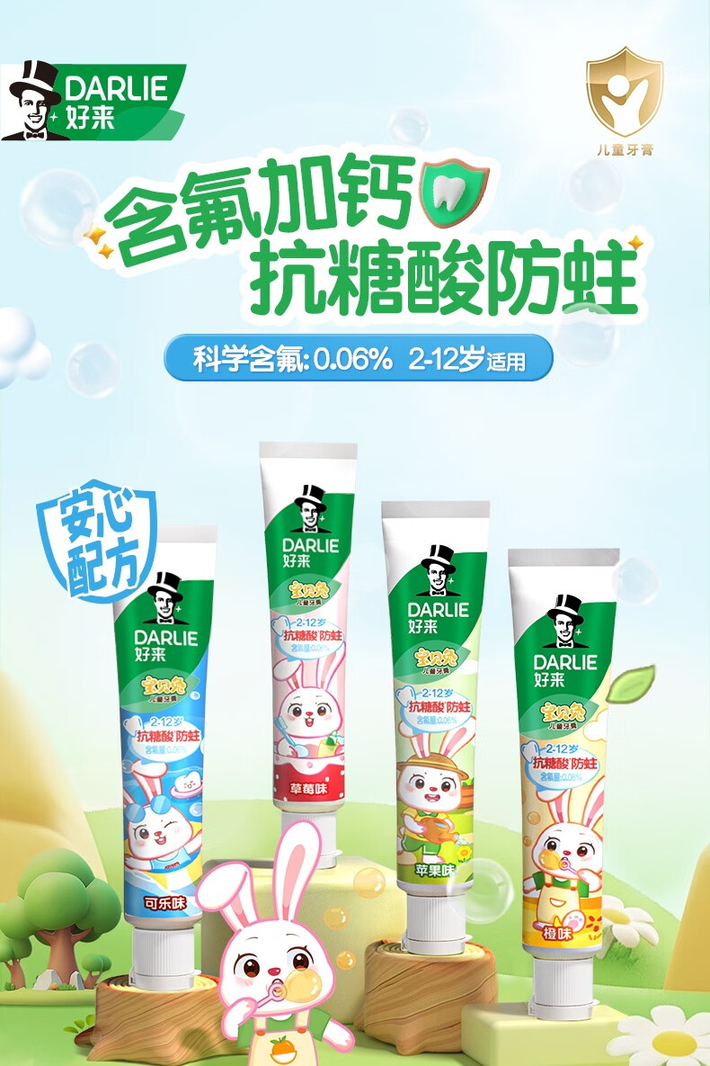 DARLIE好来(原黑人)宝贝兔儿童牙膏2-3-6-12岁苹果味40g 含氟防蛀抗糖酸