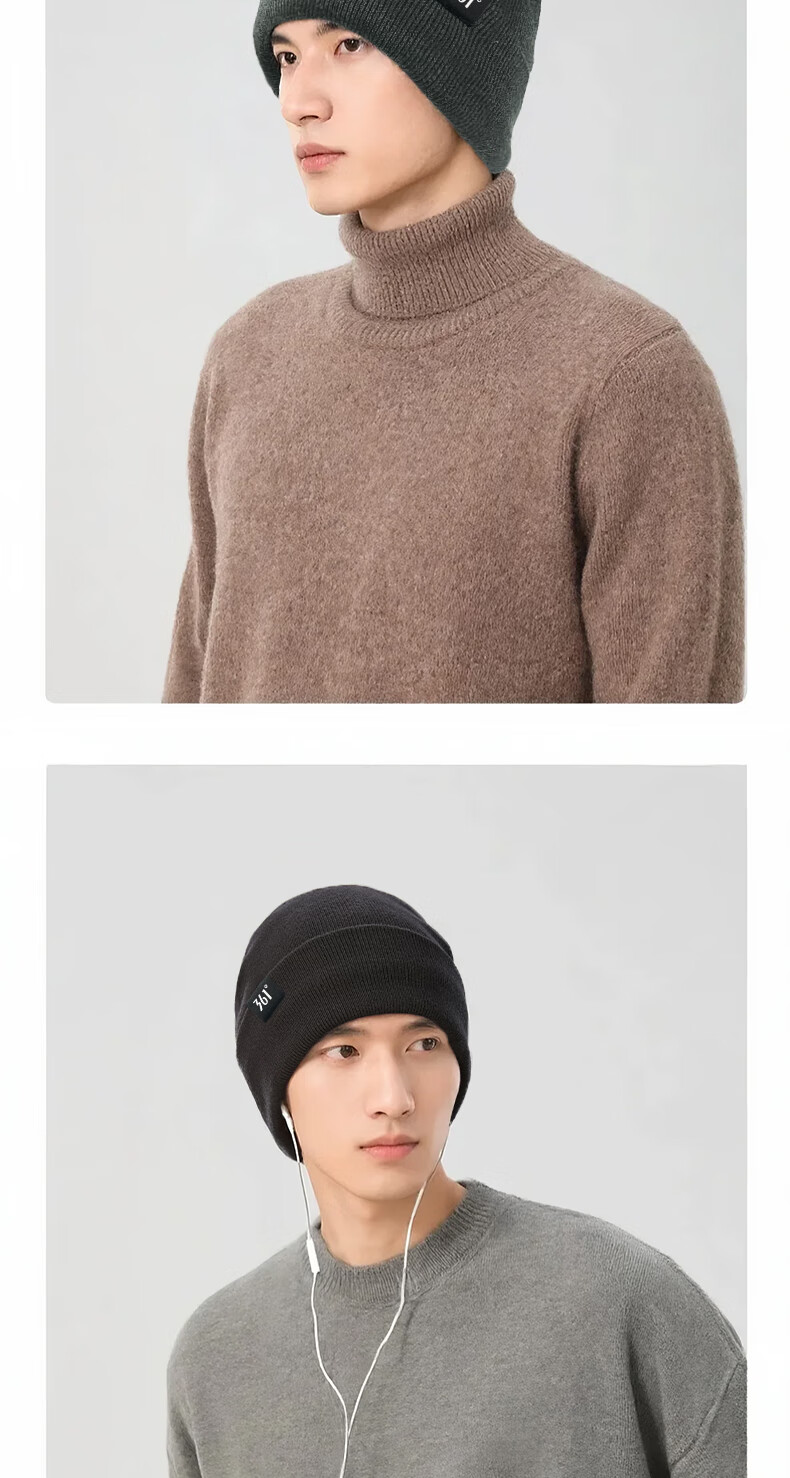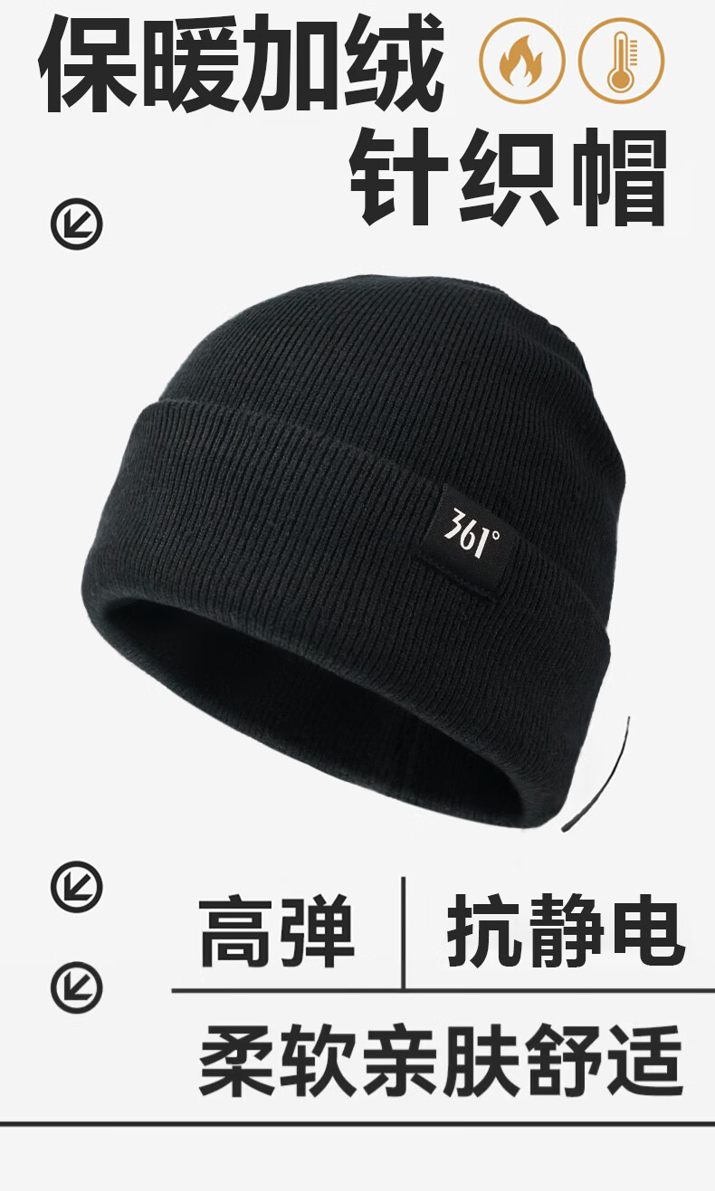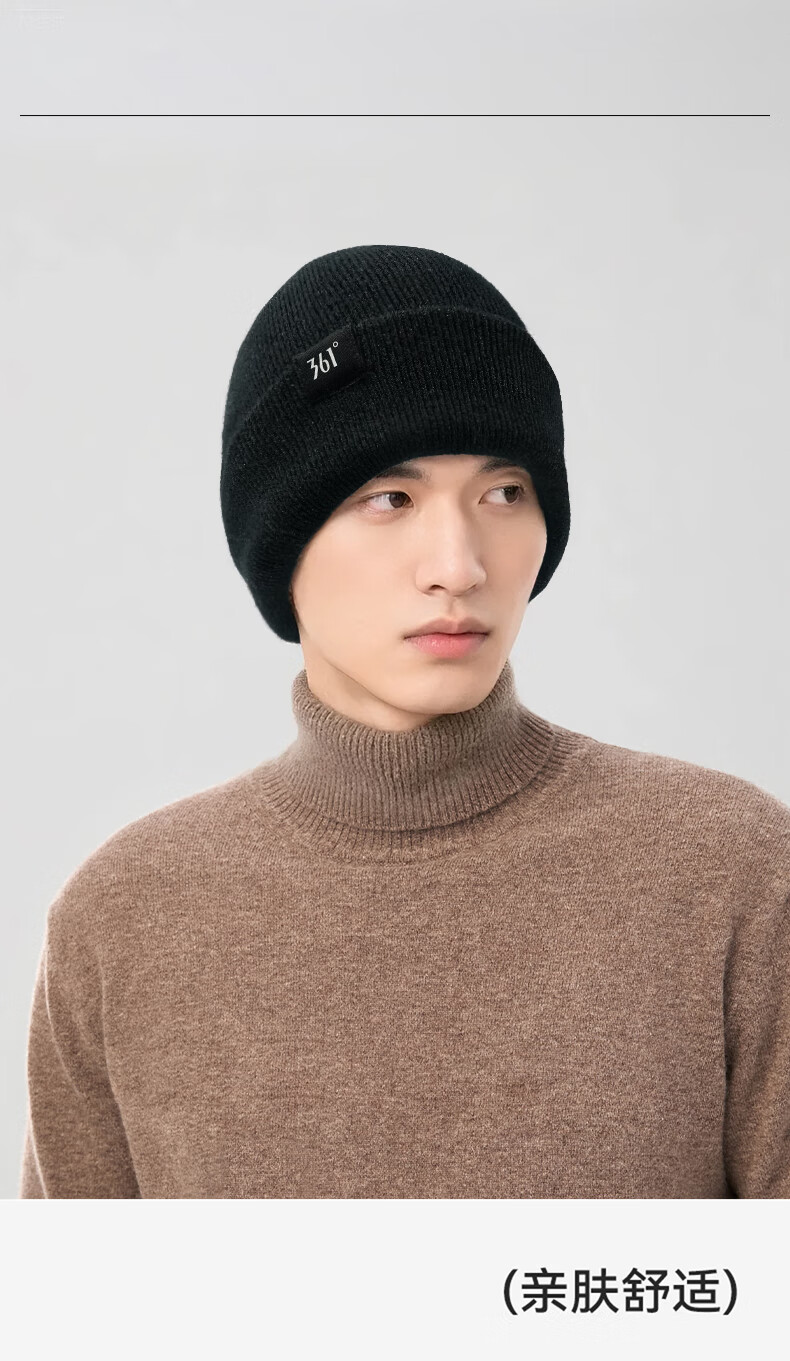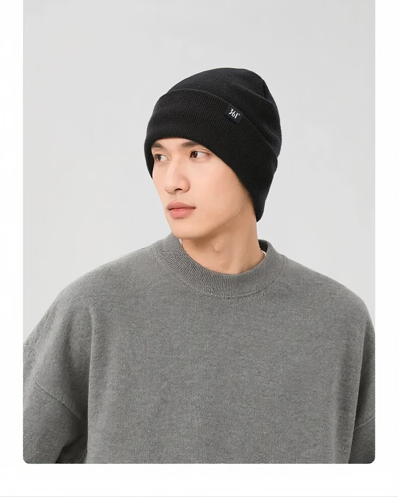 361°针织帽子冬季男加绒防寒滑雪骑行护耳保暖帽加厚毛线帽女 曜石黑