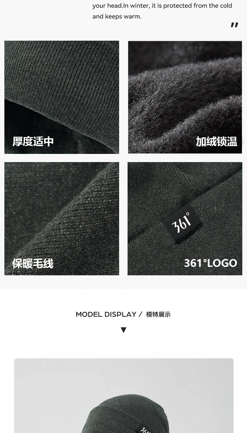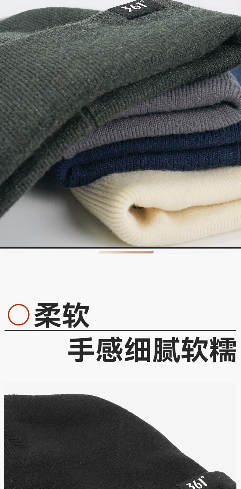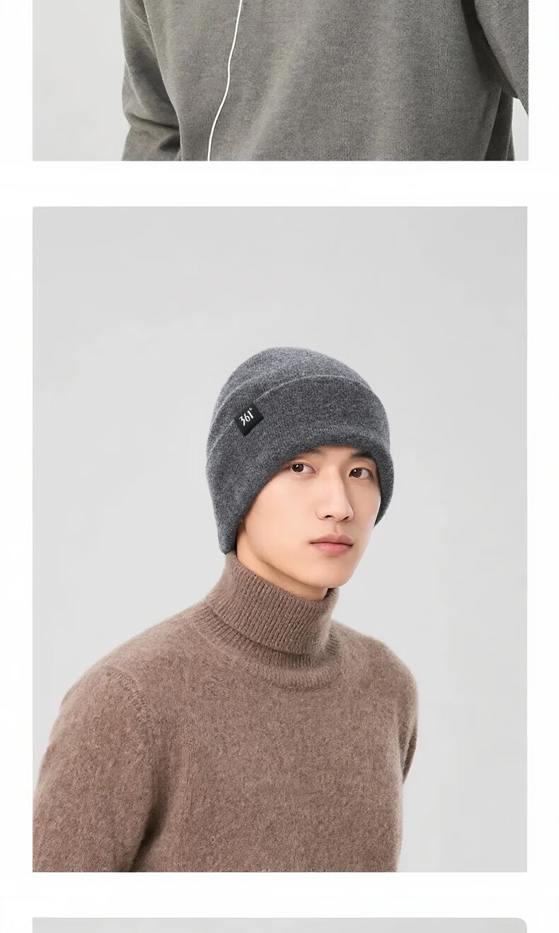 361°针织帽子冬季男加绒防寒滑雪骑行护耳保暖帽加厚毛线帽女 曜石黑
