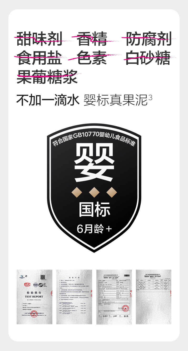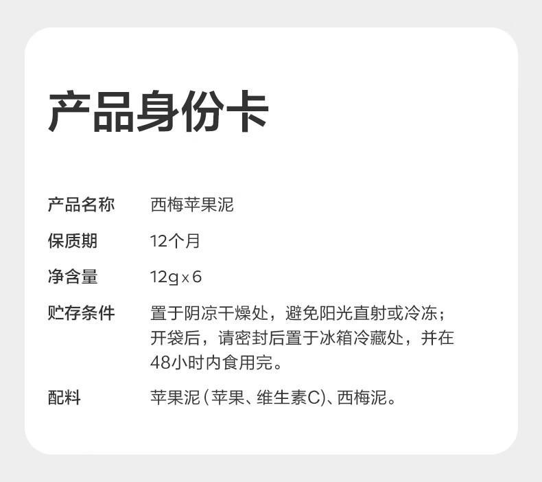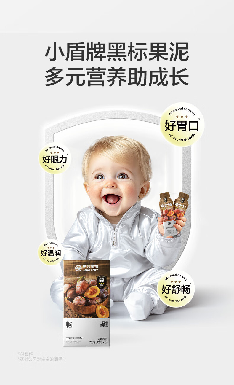 光合星球babycare婴幼儿西梅苹果泥宝宝辅食0添加水果泥小包装6条(72g)