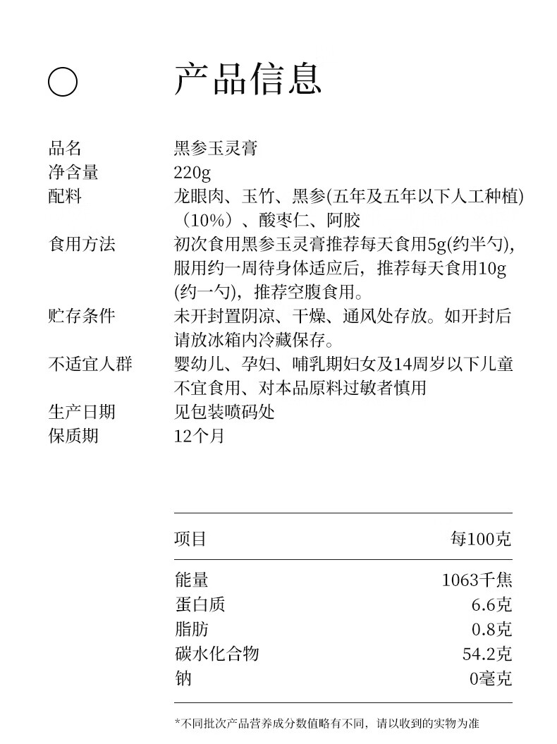 李时珍玉灵膏黑参补酸枣仁桂圆营养气血女性滋补养生膏玉竹玉灵黑参膏 黑参玉灵膏 220g*1瓶 (赠勺子)