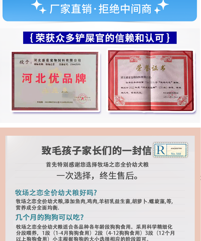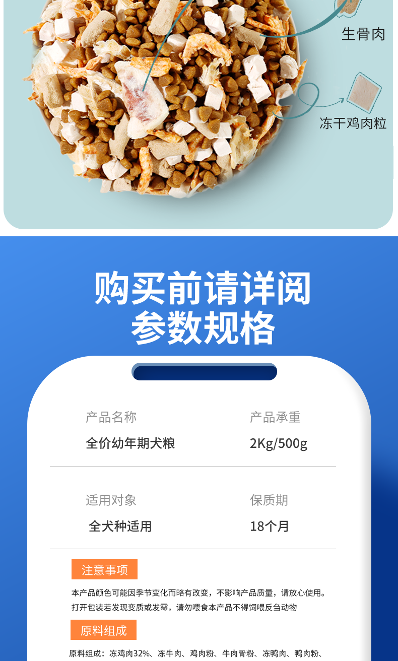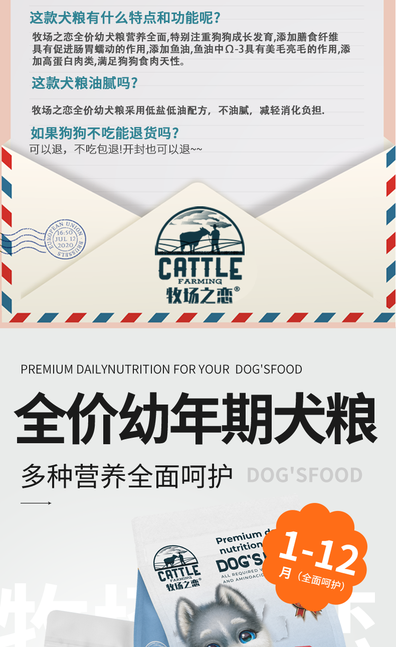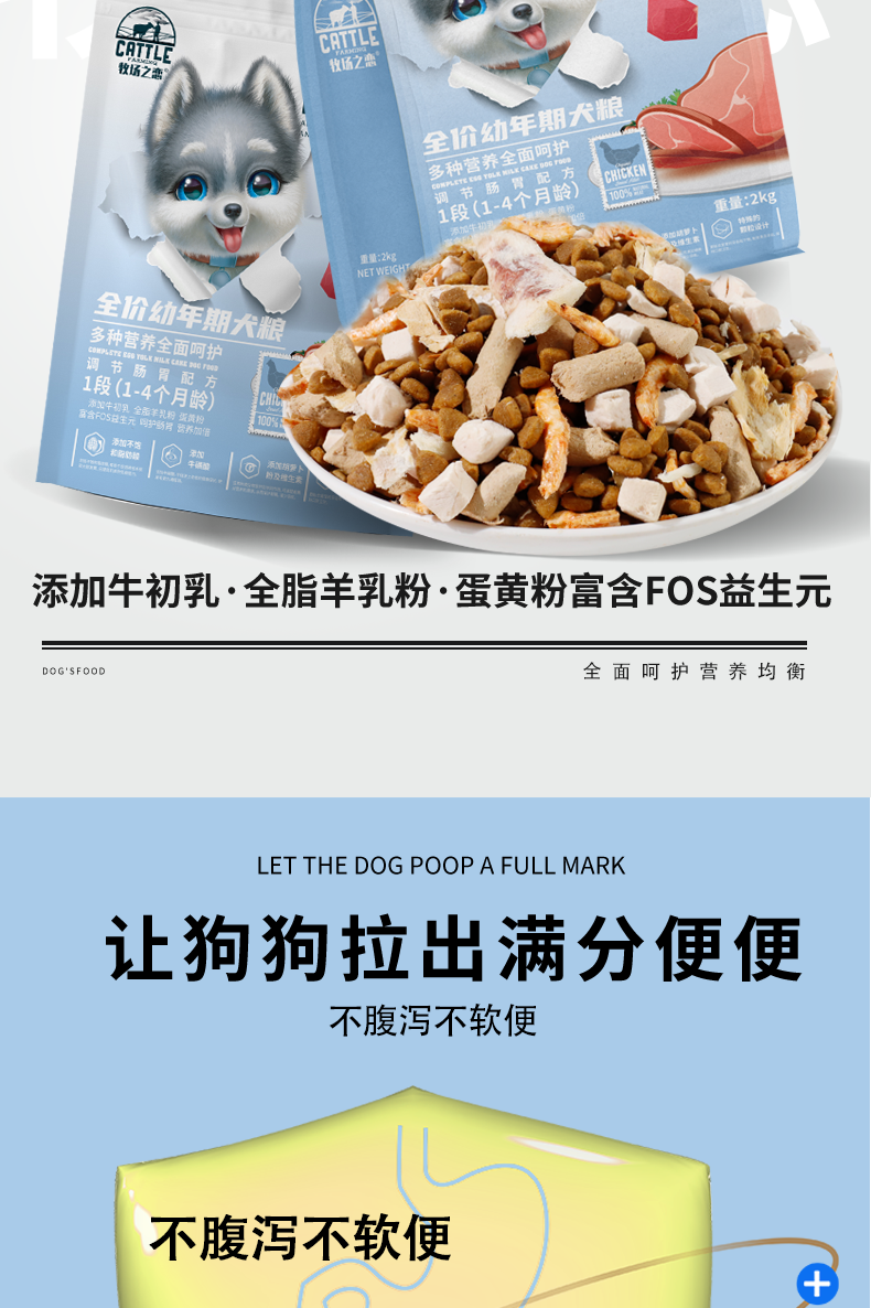 牧场之恋狗粮1-12个月幼犬粮专用小颗粒泰迪博美比熊金毛全价粮 1斤体验装 1-4个月龄食用