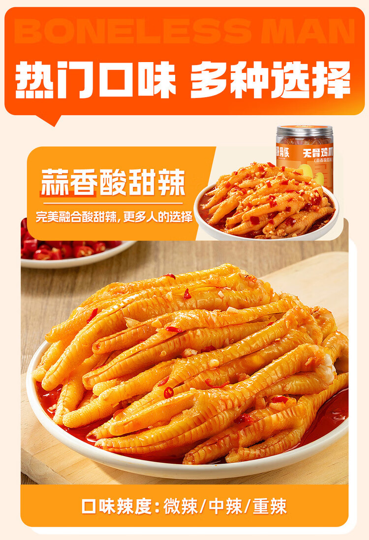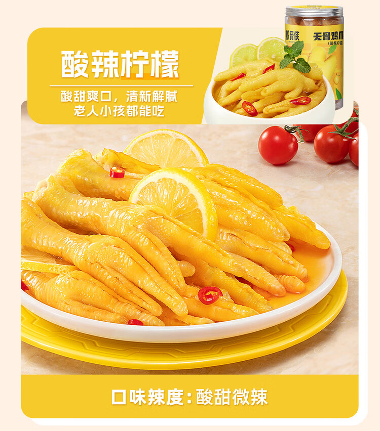 脱骨侠柠檬酸辣无骨鸡爪330g*2罐蒜香泡椒凤爪佤味鸡脚筋休闲解馋零食 蒜香微辣330g+酸辣柠檬330g