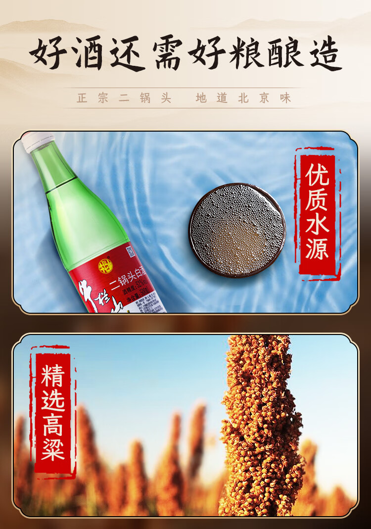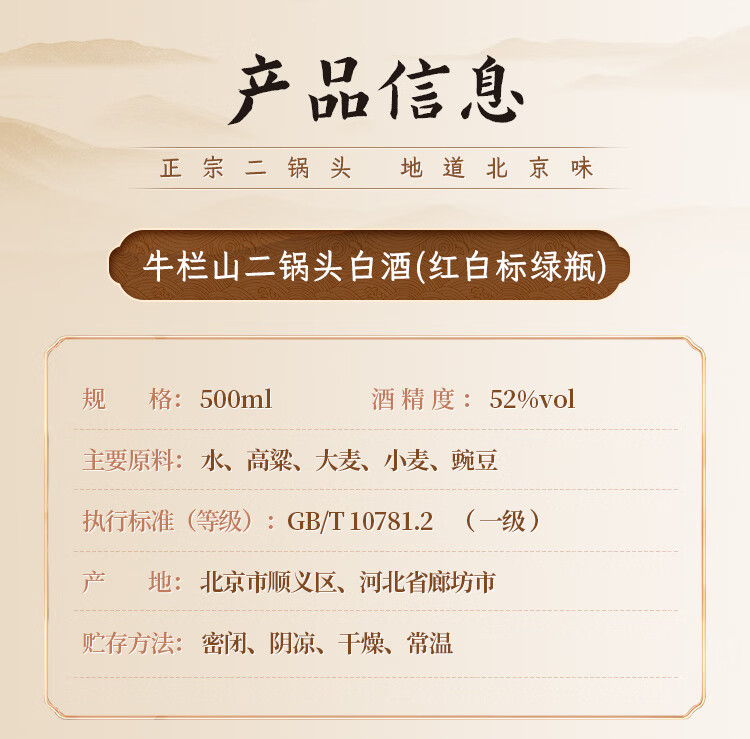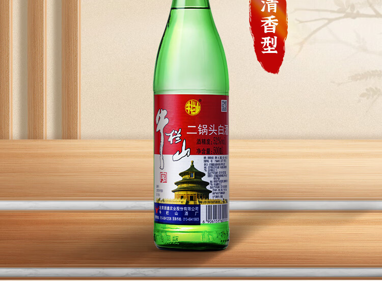 牛栏山 二锅头白酒 绿牛二 口粮酒 清香型白酒 52度 500ml*1瓶 单瓶装
