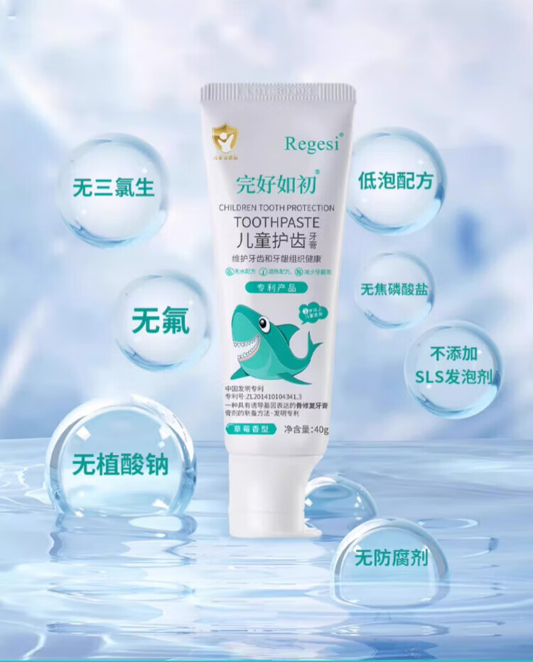 完好如初儿童牙膏6-12岁不含氟3-6岁可用草莓口味【5%磷硅酸钙】 无氟儿童牙膏4支【送成人装】日期截止4月23日