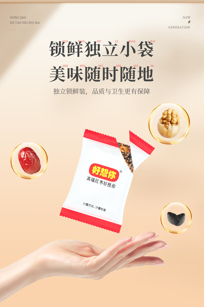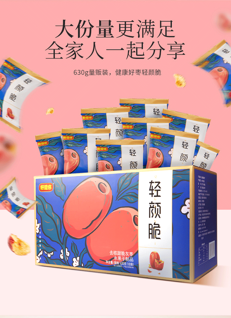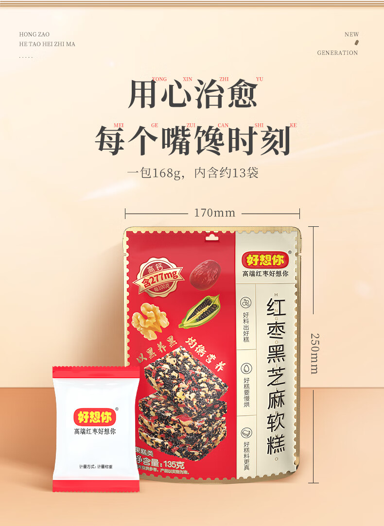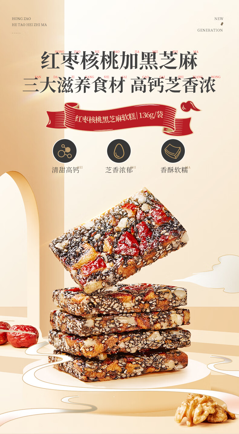 好想你_脆枣 无核灰枣香酥脆枣 伴手礼 独立小袋装 红枣黑芝麻软糕135g*3袋