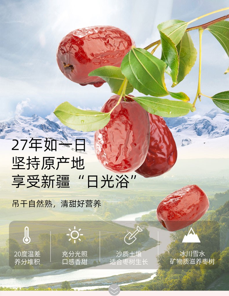 亚通古孜新疆和田大枣 一级灯笼蜜枣免洗即食红枣 孕妇补气血零食红枣礼盒 灯笼蜜枣一级果260g*2袋