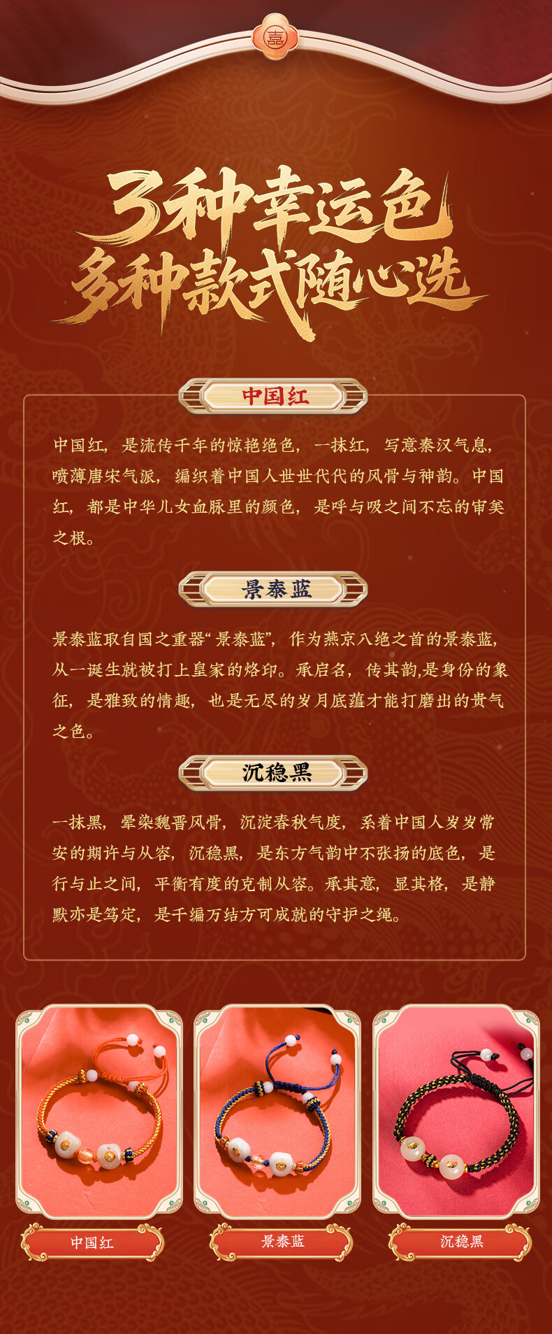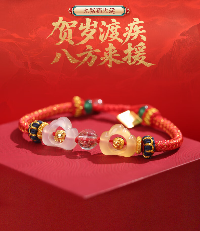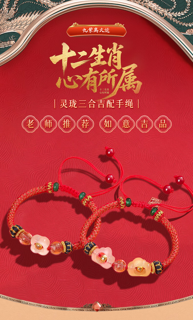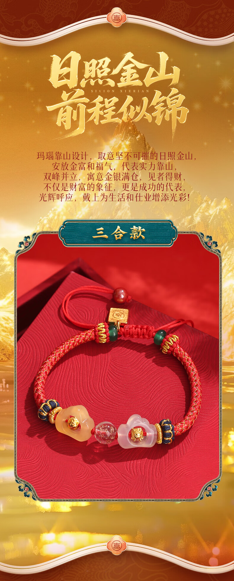 灵机生活馆2026麦玲玲手绳三合生肖红绳灵珑本命年太岁属吉祥物手链新年礼物 帝圣三合手链红色(属虎/马狗)