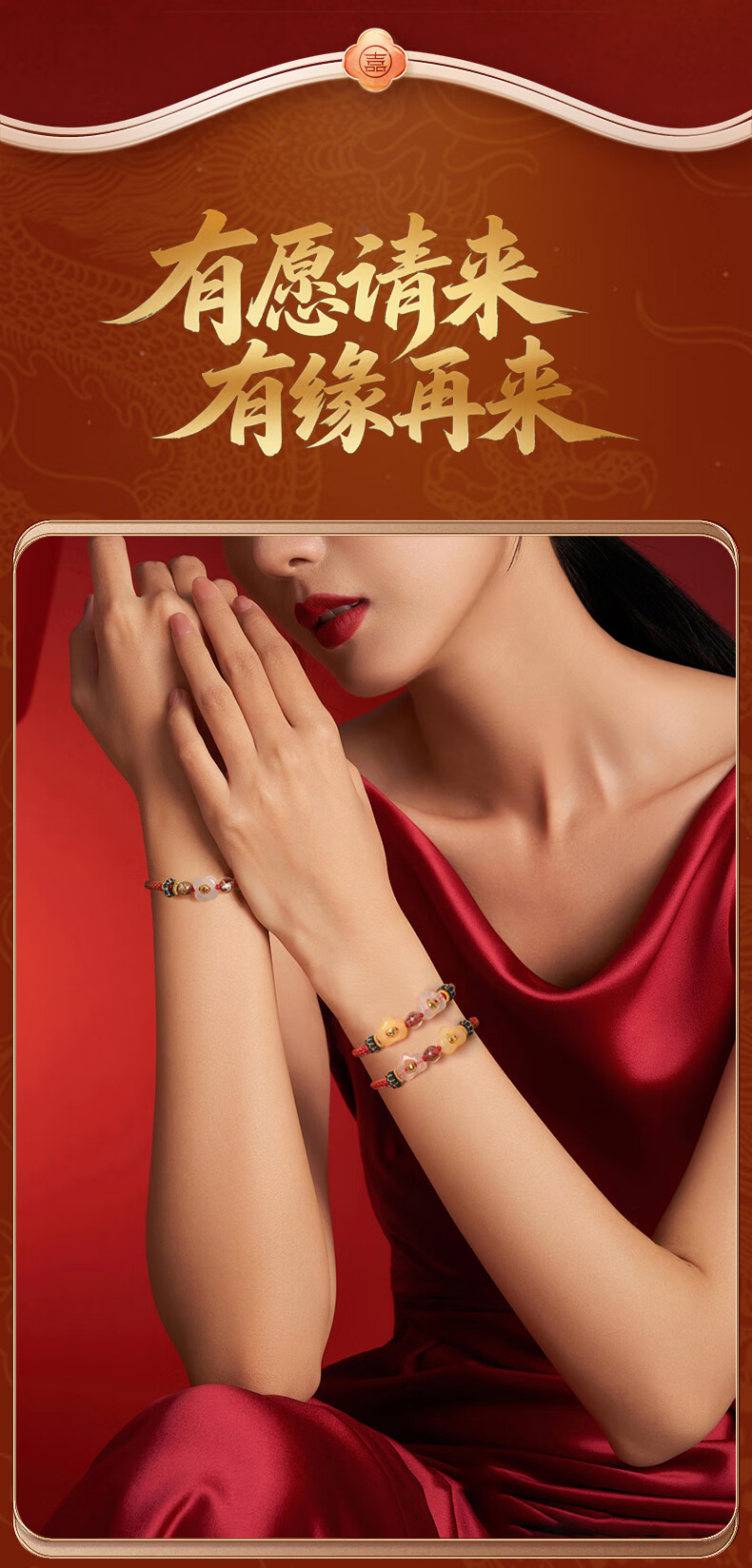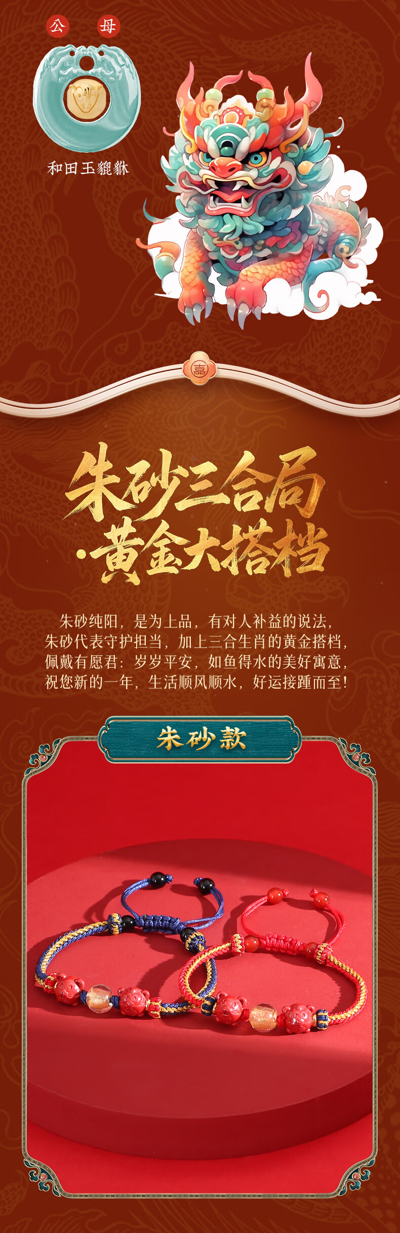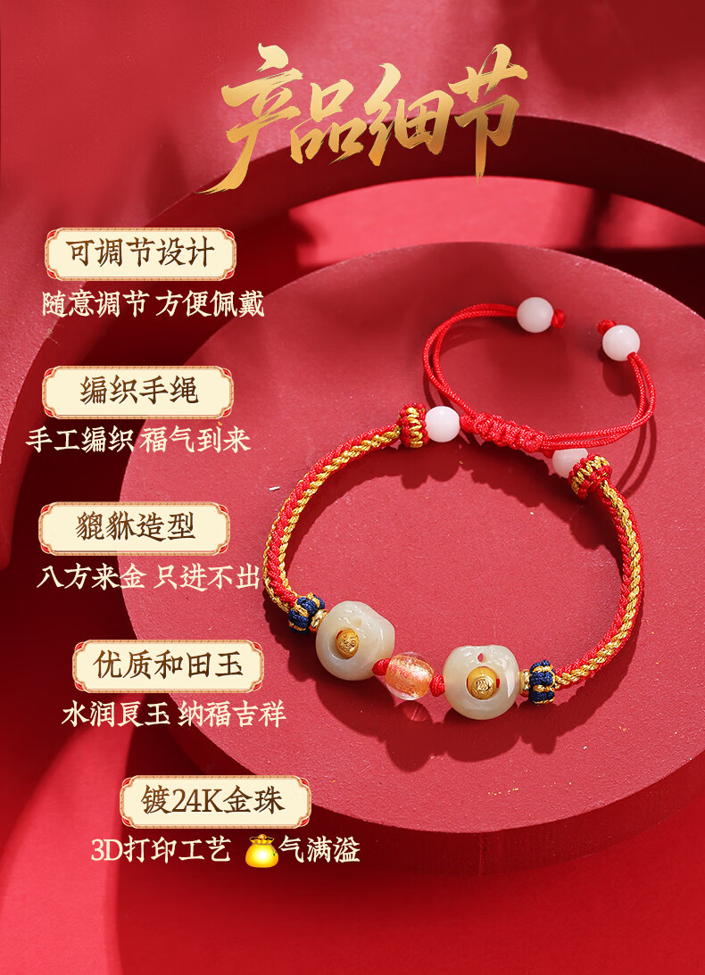 灵机生活馆2026麦玲玲手绳三合生肖红绳灵珑本命年太岁属吉祥物手链新年礼物 帝圣三合手链红色(属虎/马狗)