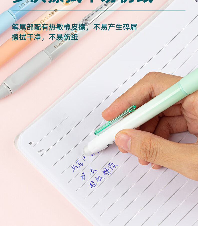 得力(deli)按动式可擦笔中性笔圆珠水笔三年级上册小学生专用热易热敏魔力晶蓝笔芯黑色摩檫头高颜值开学 按动款【可擦黑色】4支