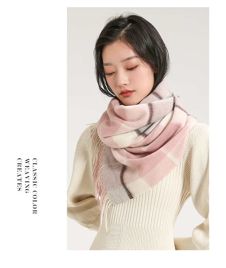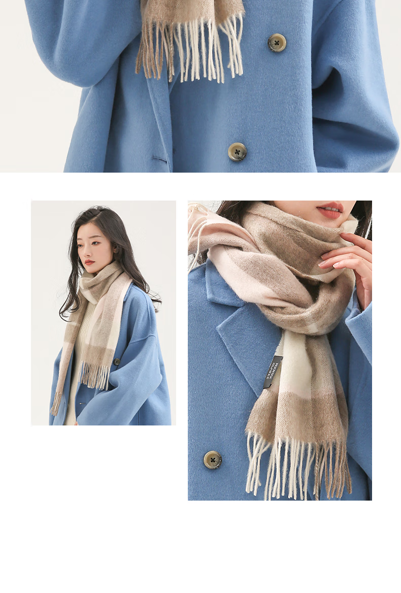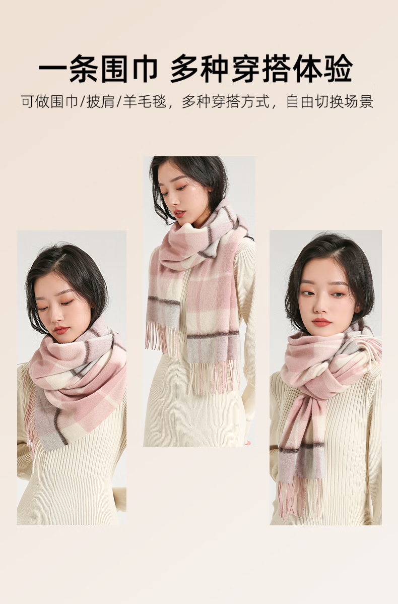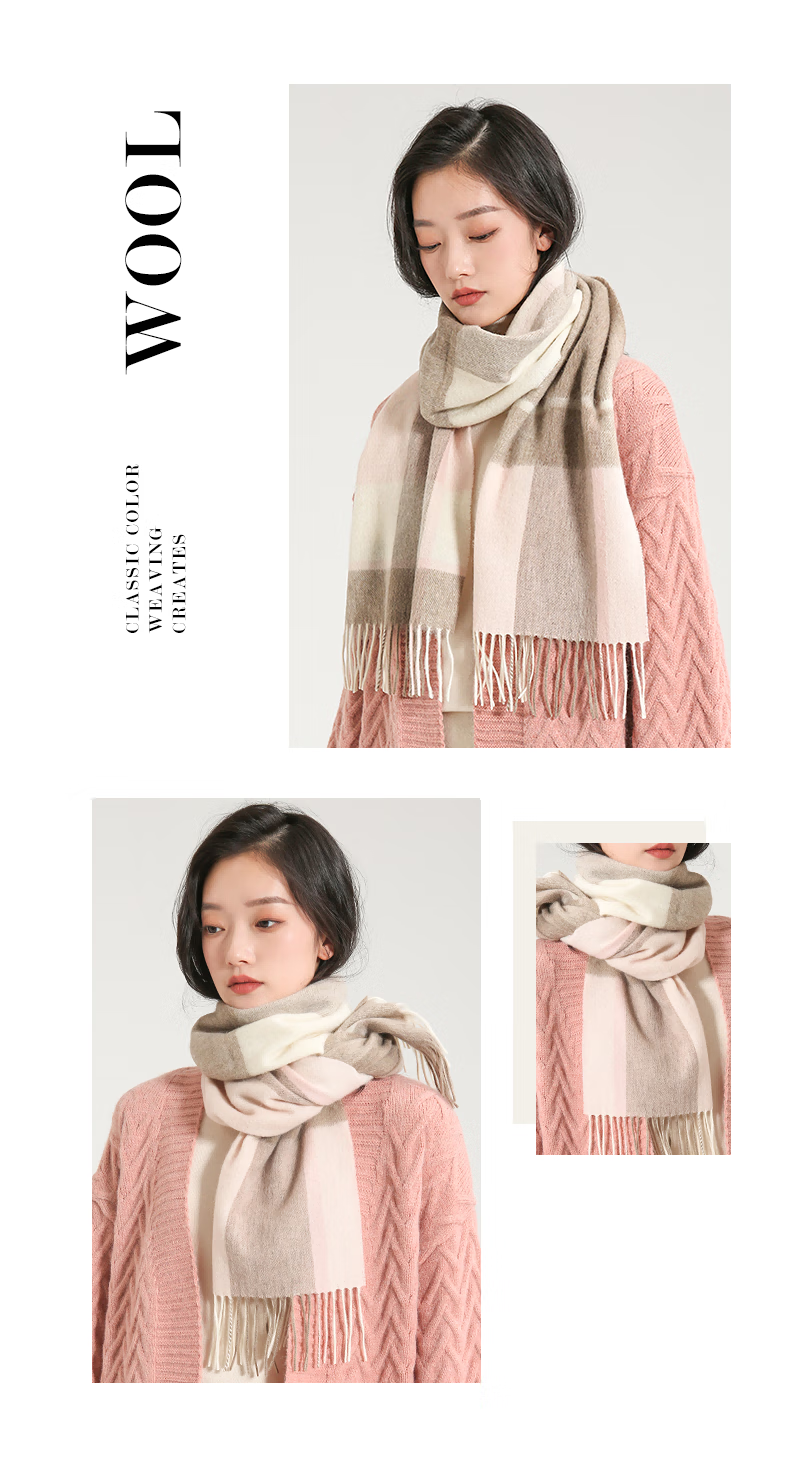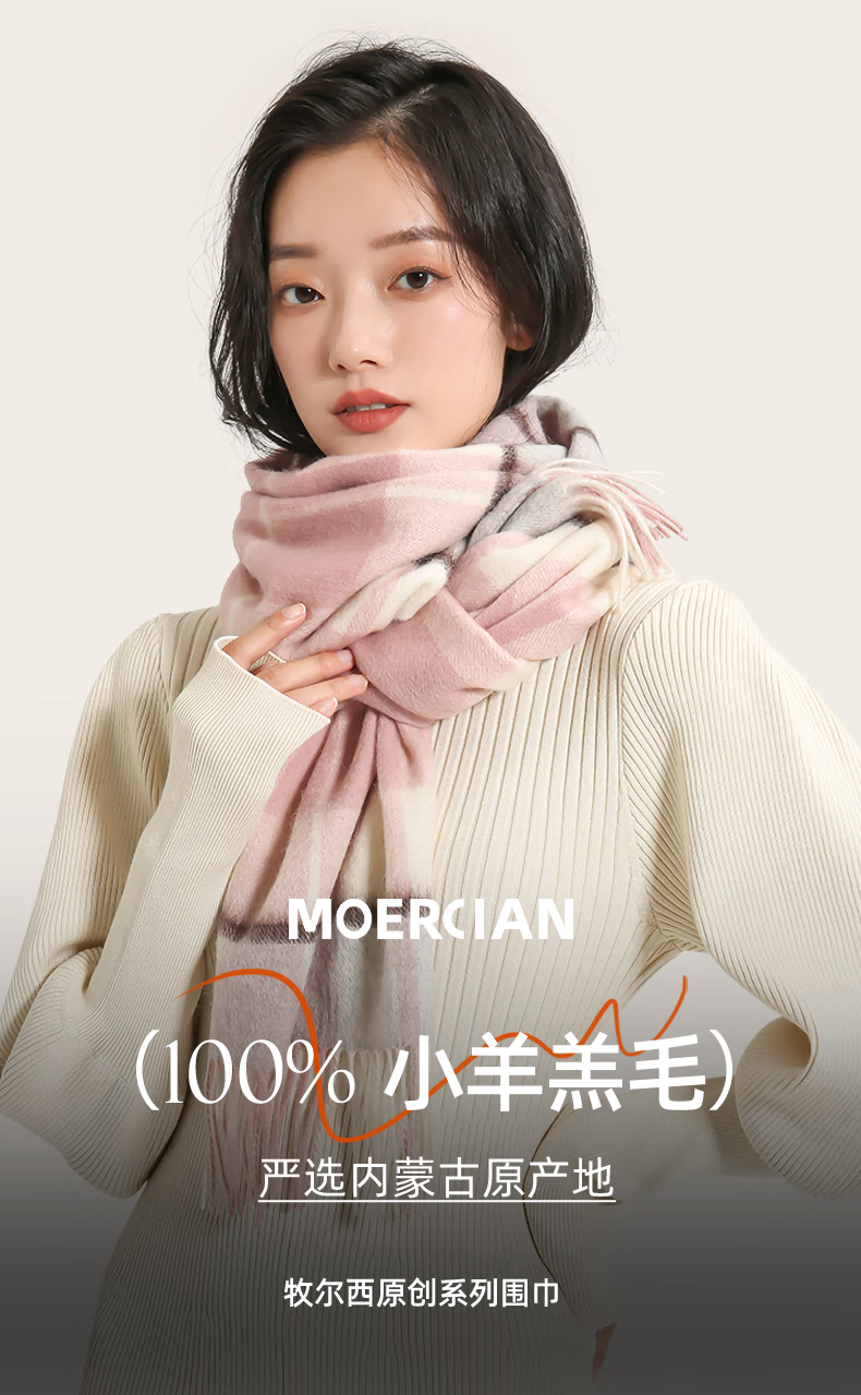 牧尔西 (MOERCIAN)纯羊毛围巾女百搭女士围巾小披肩冬季保暖加厚围脖女妈妈生日礼物 浅驼格