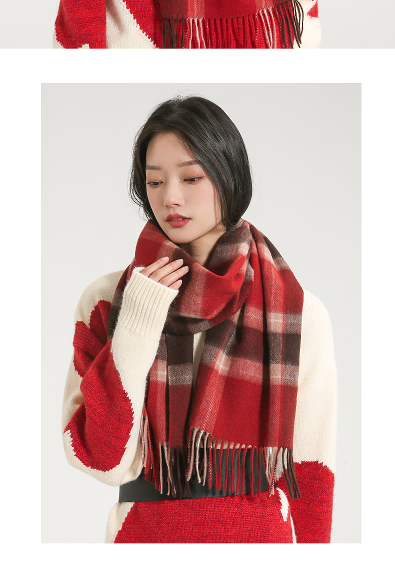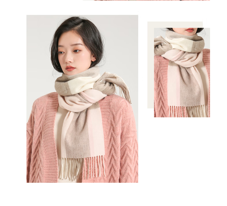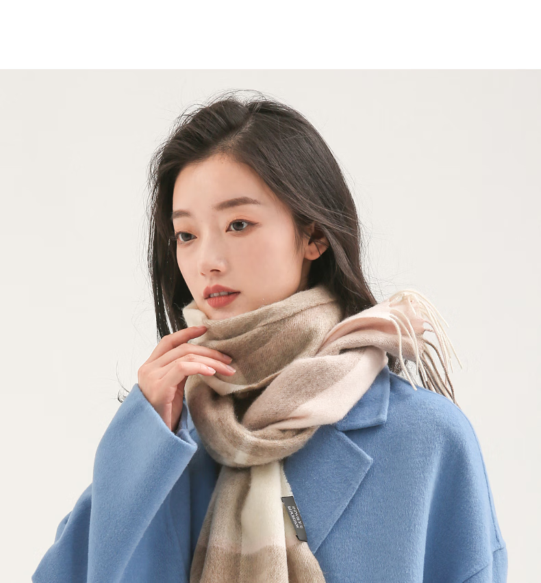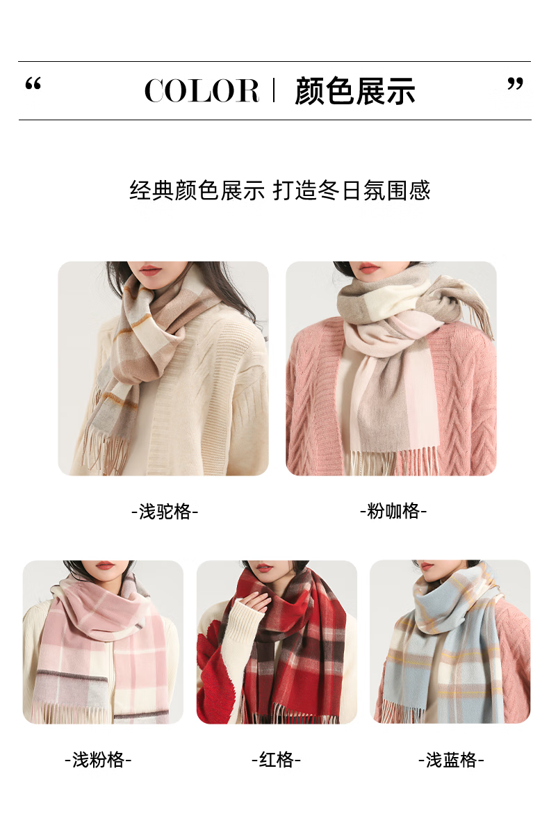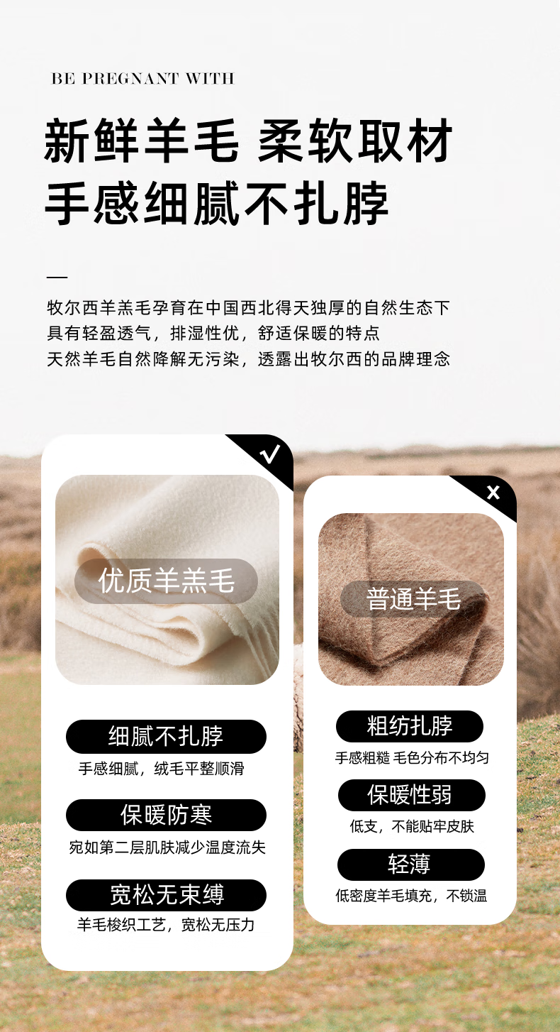 牧尔西 (MOERCIAN)纯羊毛围巾女百搭女士围巾小披肩冬季保暖加厚围脖女妈妈生日礼物 浅驼格