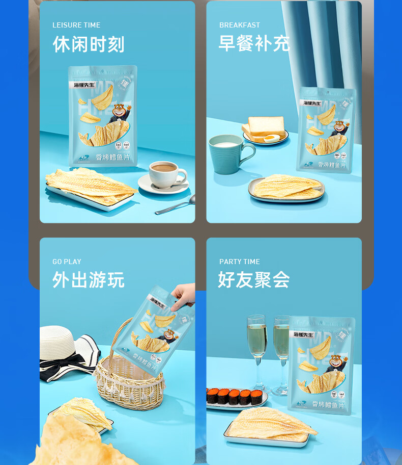 海狸先生 香烤鳕鱼片 孕妇办公室海鲜零食大连特产烤鱼片香鱼片即食 4袋*45g