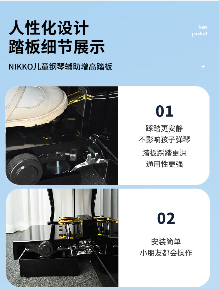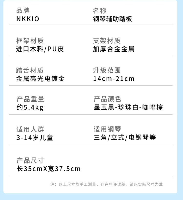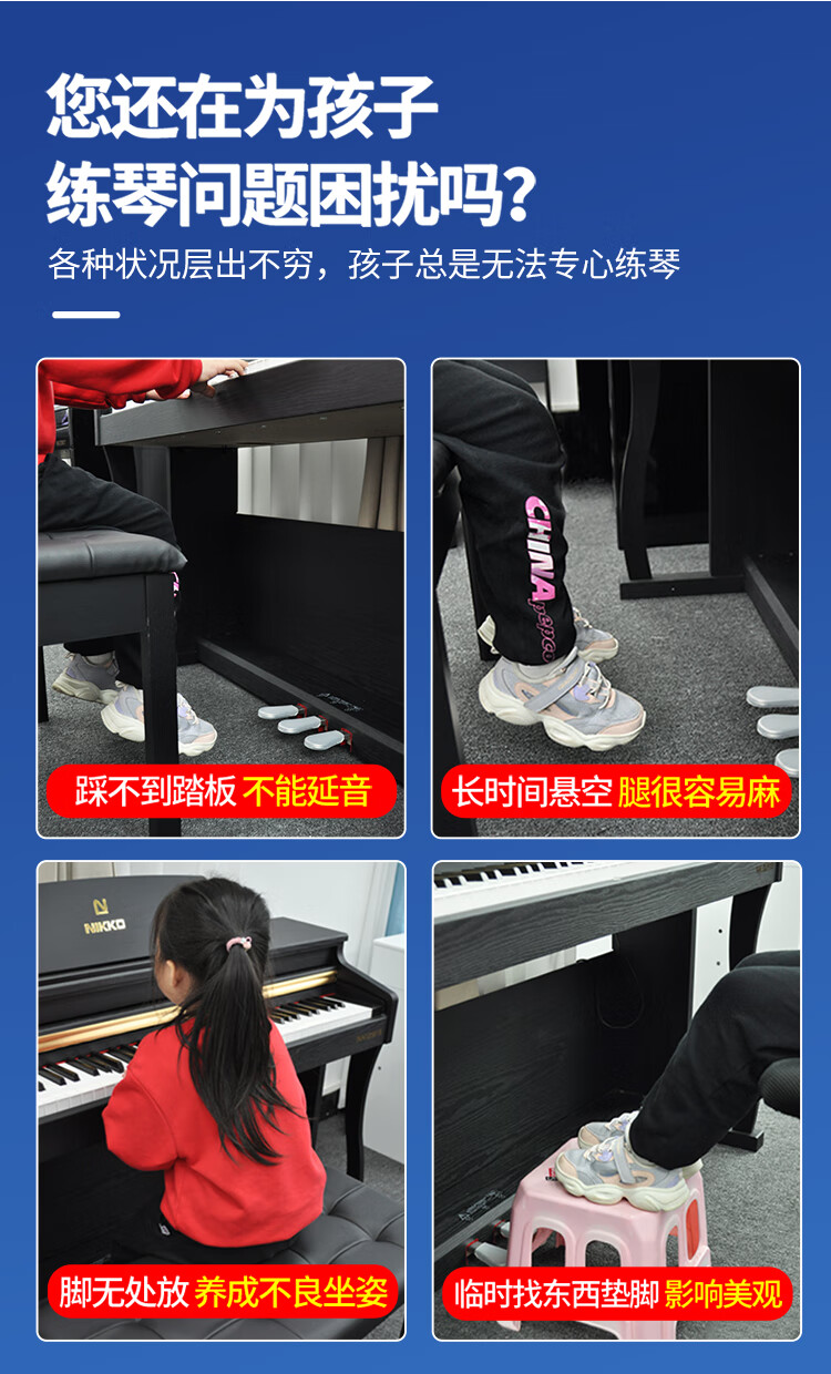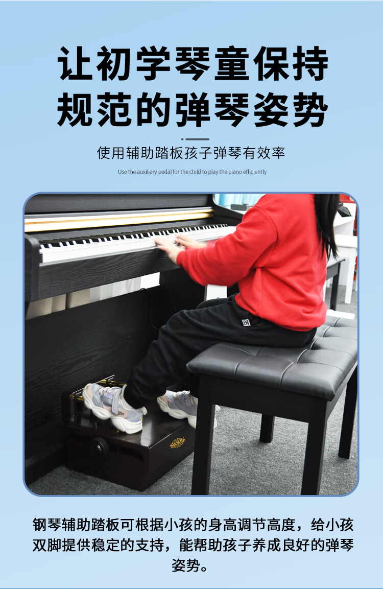 NKKIO钢琴辅助踏板增高器儿童练琴脚踏板脚垫升降台 烤漆黑