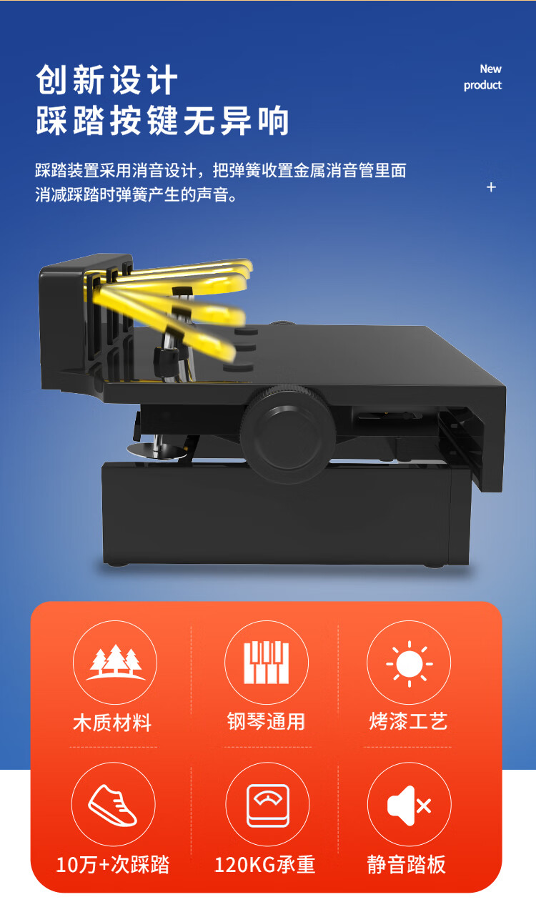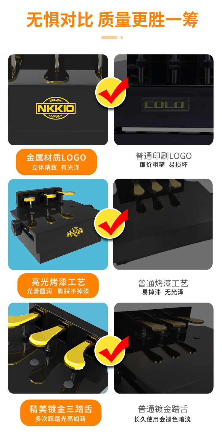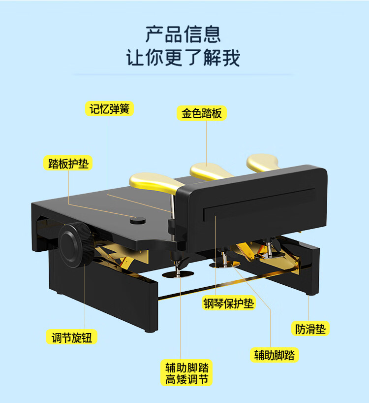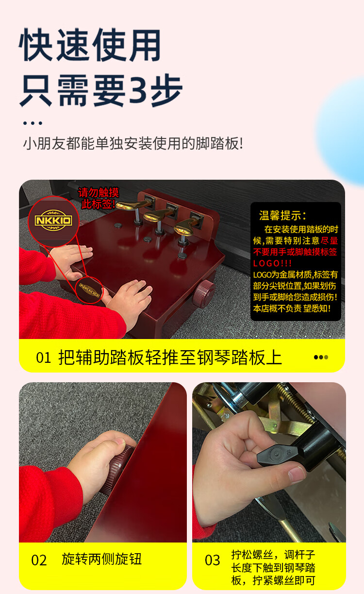 NKKIO钢琴辅助踏板增高器儿童练琴脚踏板脚垫升降台 烤漆黑