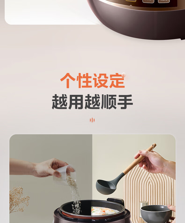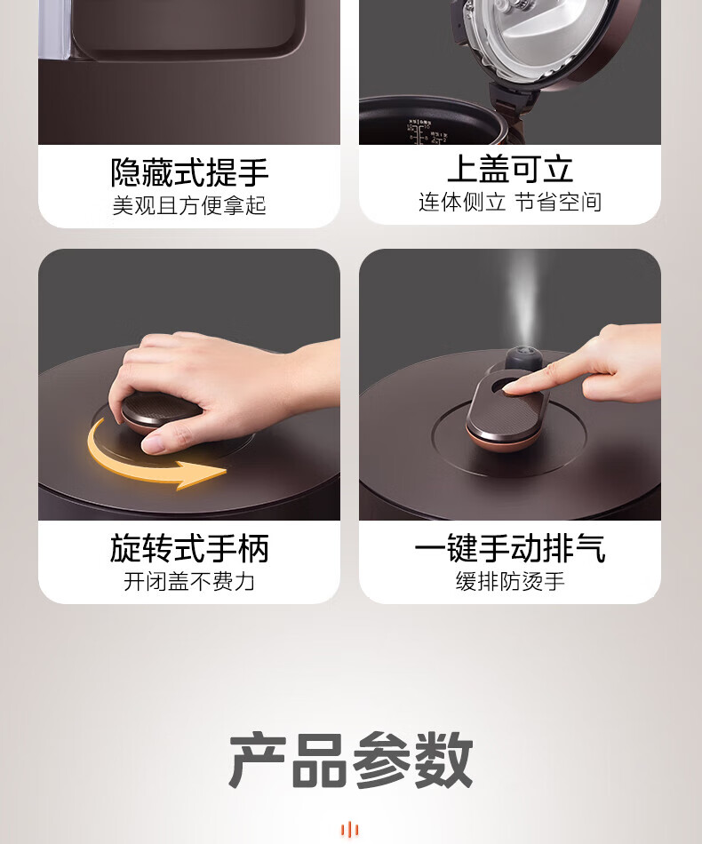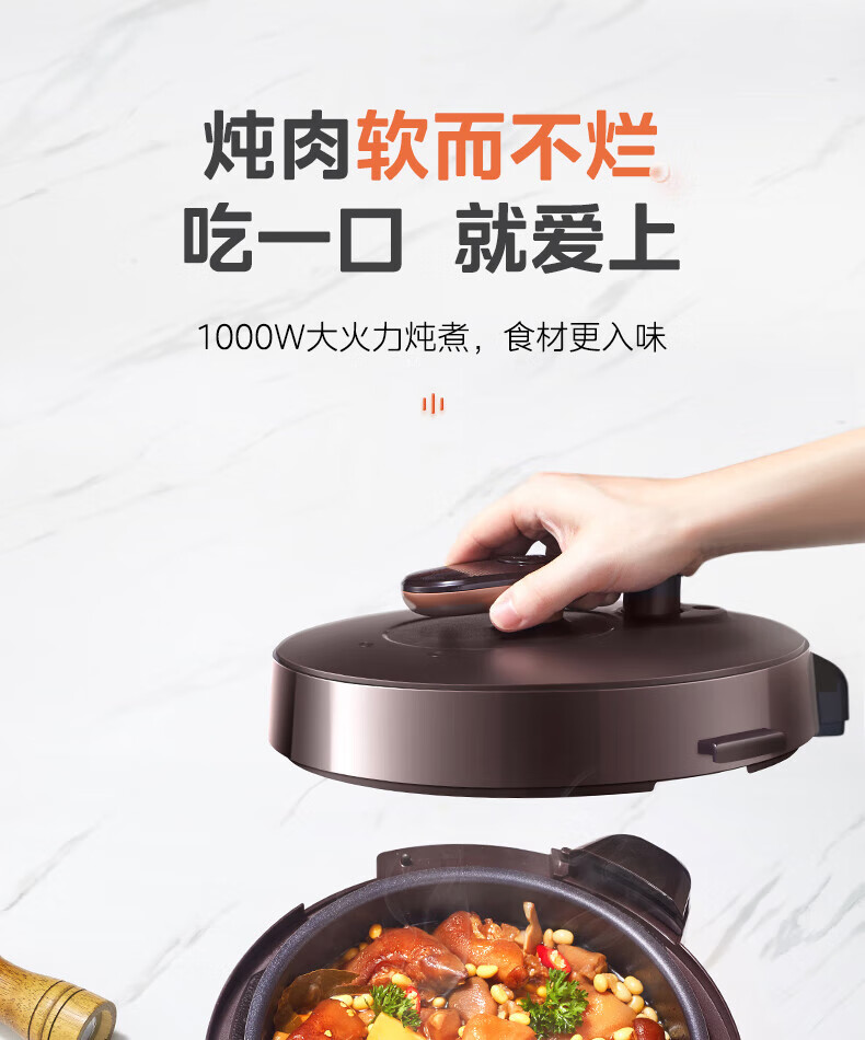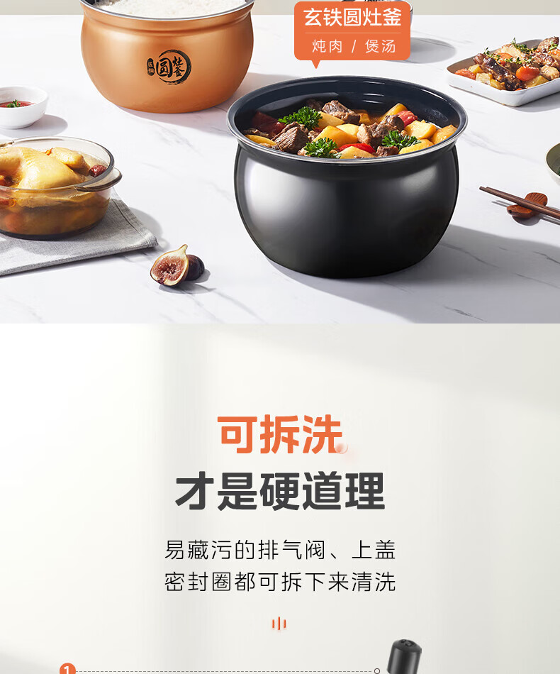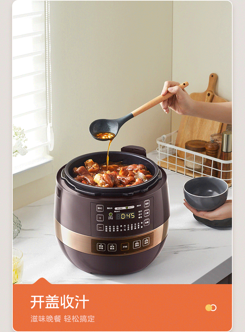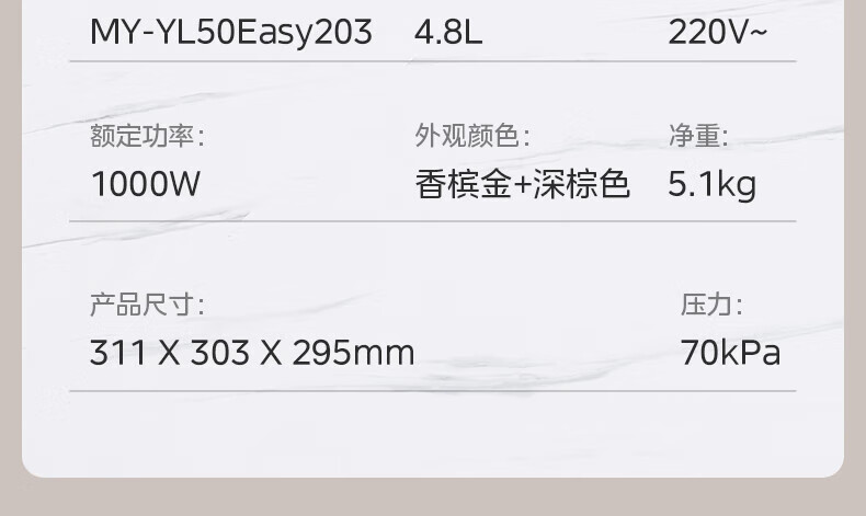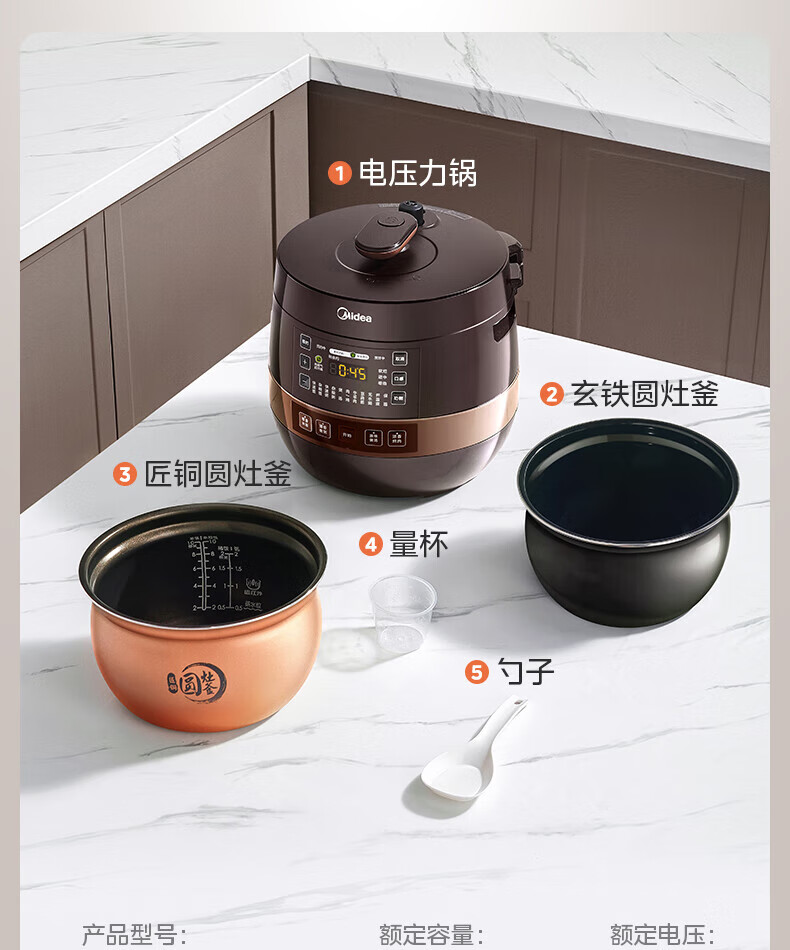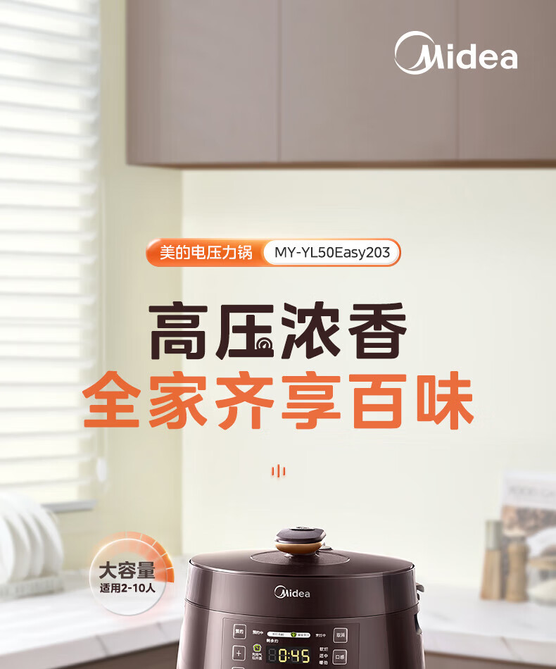 美的(Midea)圆灶球胆电压力锅家用4-6人 全自动智能多功能预约电饭煲高压锅70kPa快煮煲汤焖炖MY-YL50Easy203 【圆釜大屏】 4.8L