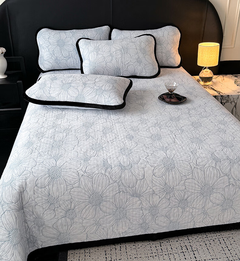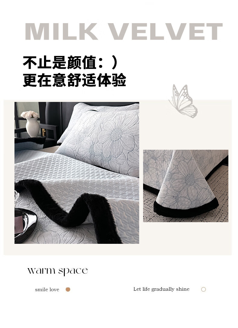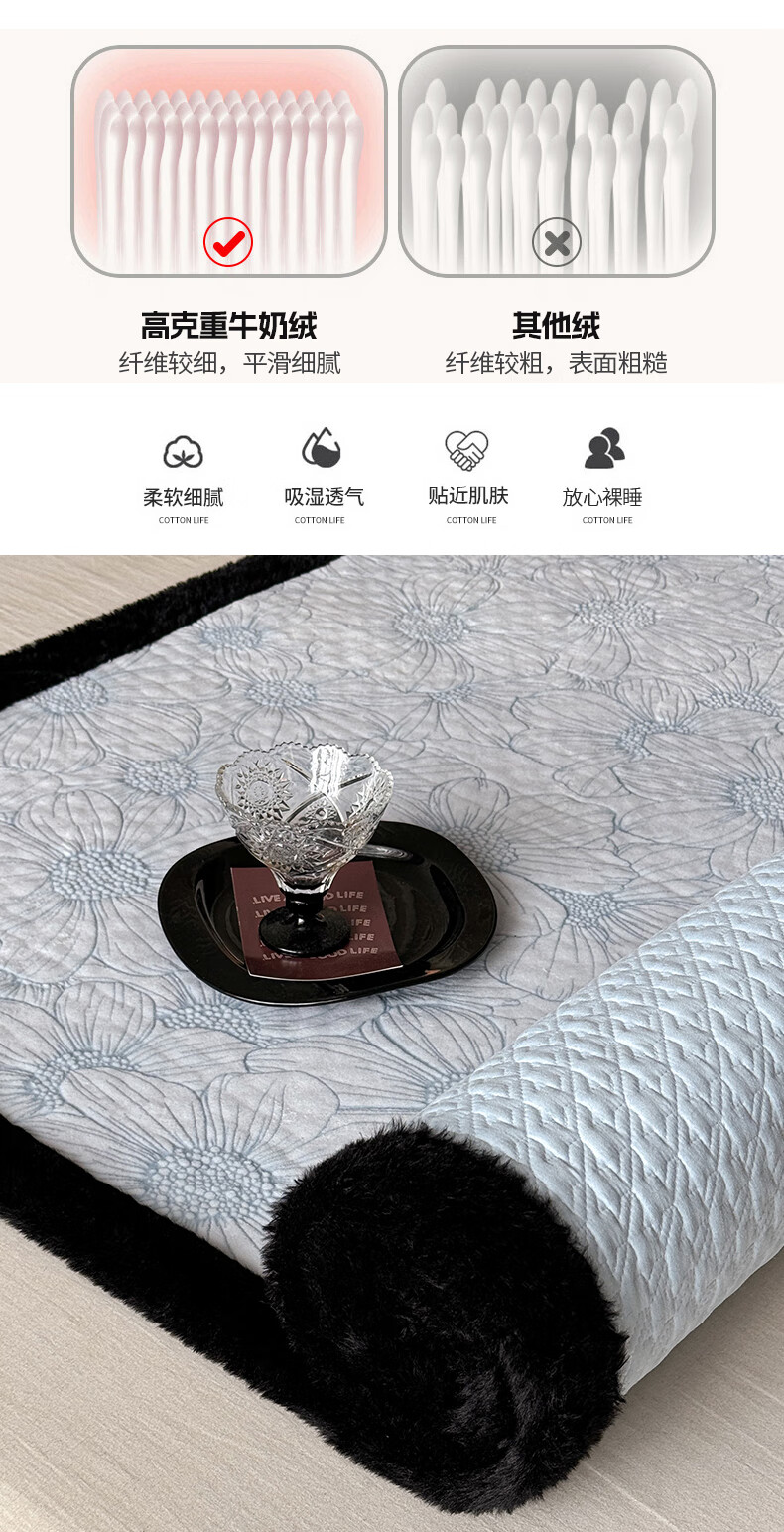 苏萱加厚牛奶绒夹棉床盖单件冬季珊瑚绒榻榻米床单三件套加绒床褥子垫 向阳花-蓝 200x230cm床盖单件
