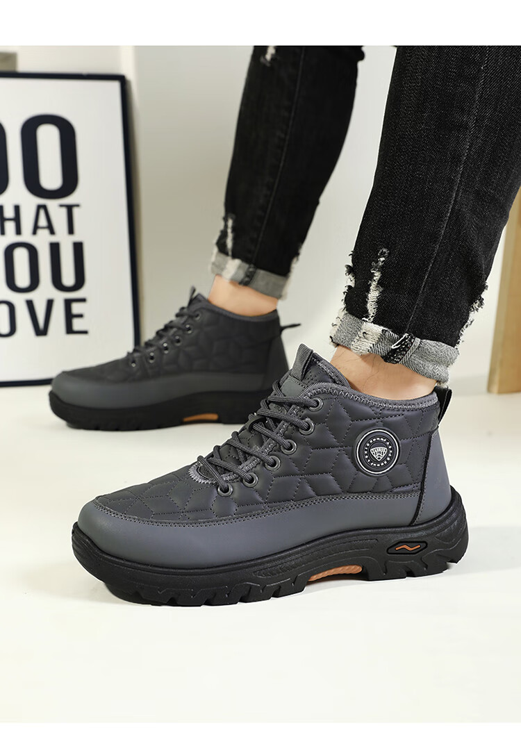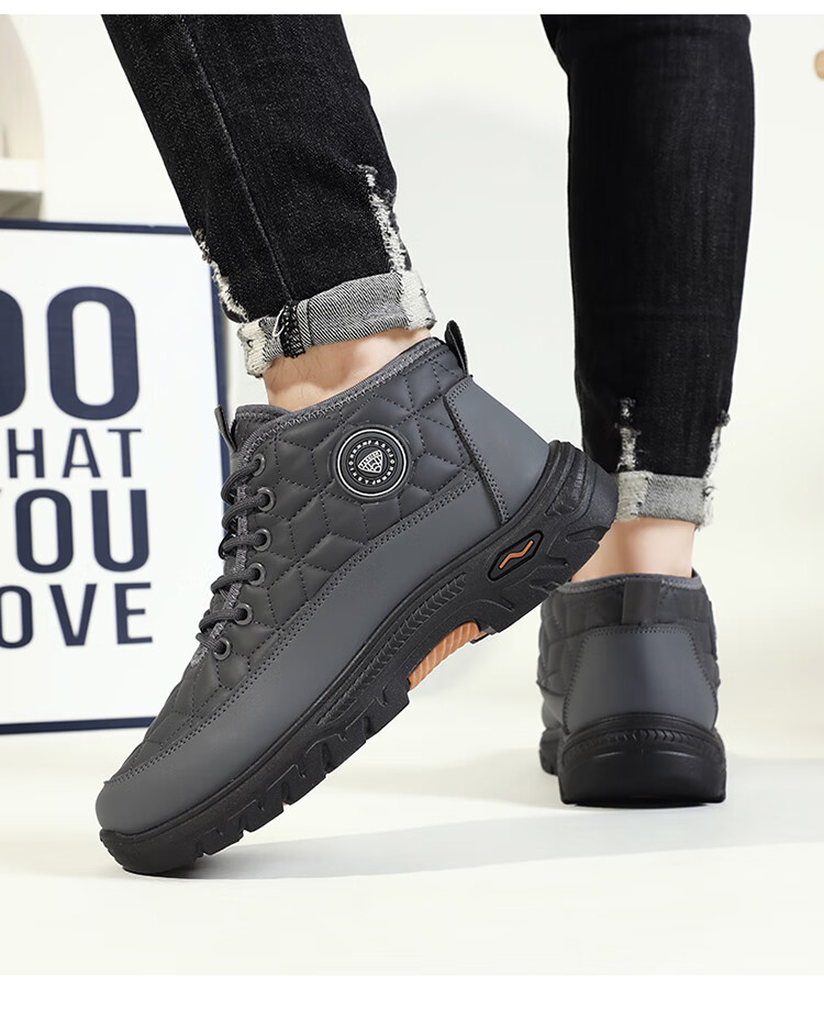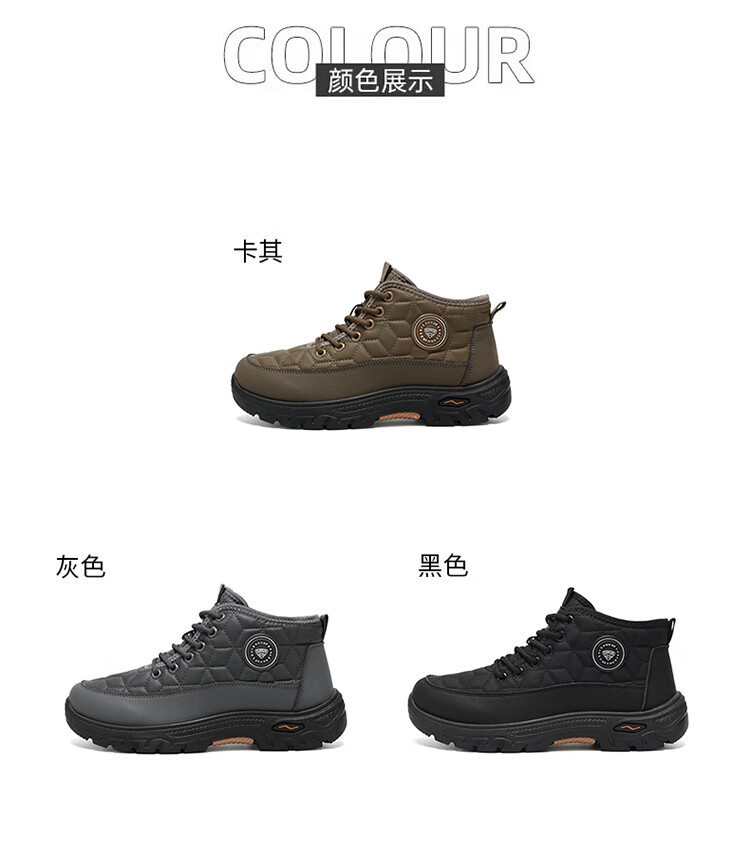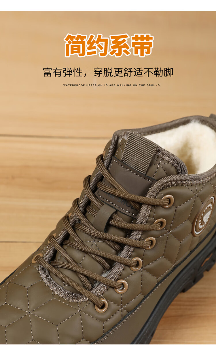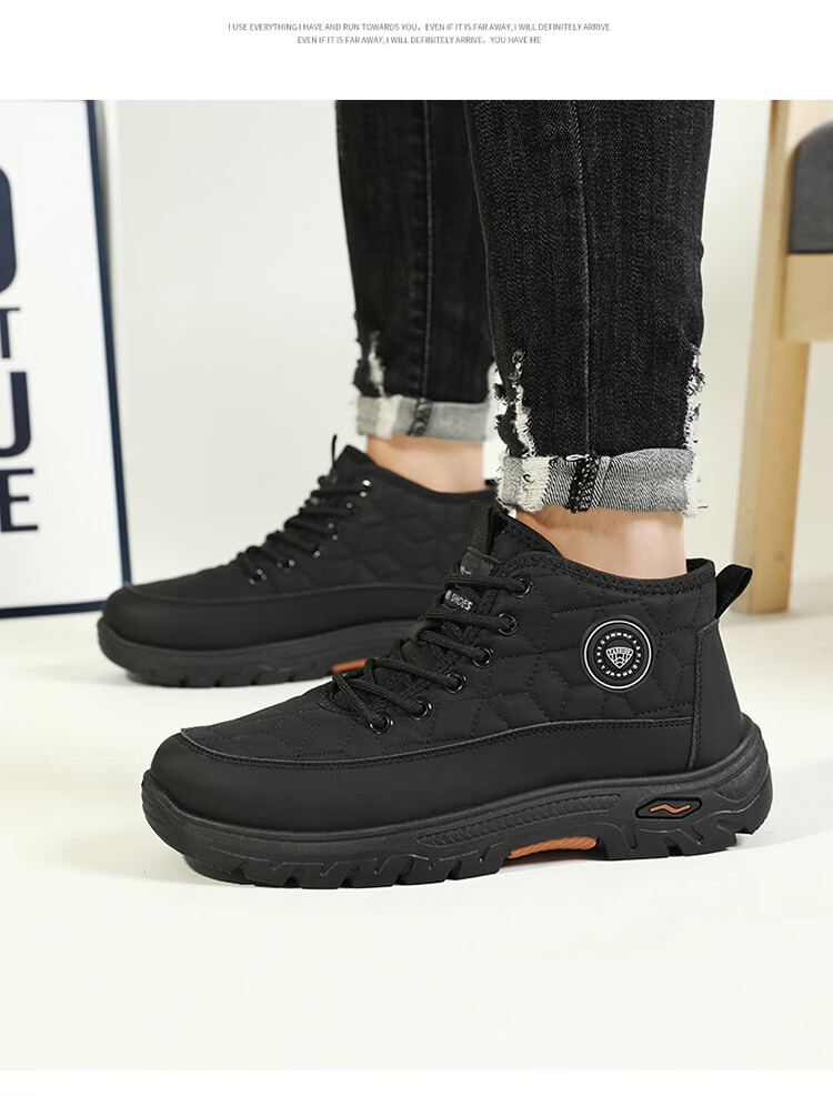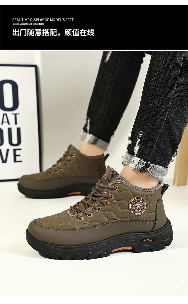 稻草人(MEXICAN)2026冬季加绒保暖高帮棉鞋男新款防水防滑雪地靴棉羊毛内里爸爸鞋 黑色 39