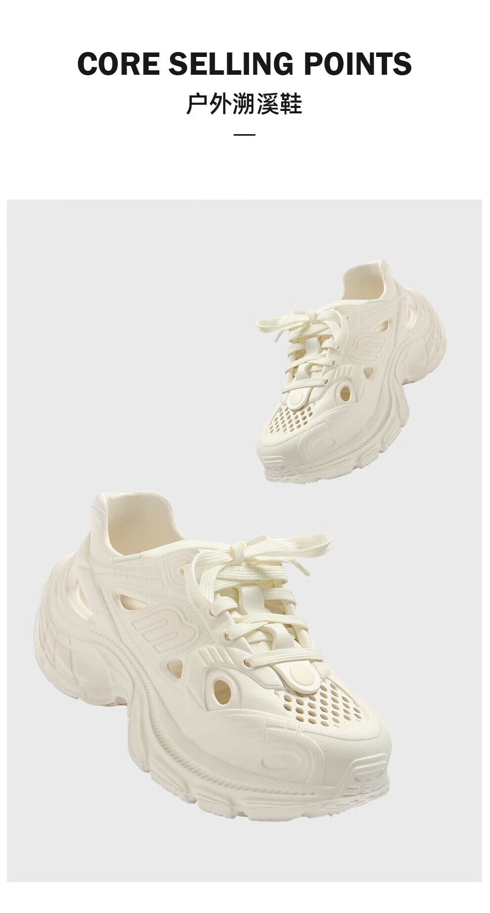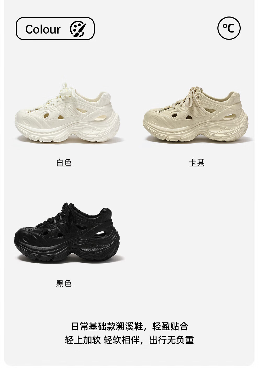 FZT洞洞鞋女2025新款夏季户外穿溯溪防滑踩屎感增高老爹鞋凉拖鞋女士 灰色【简约】 35 正码