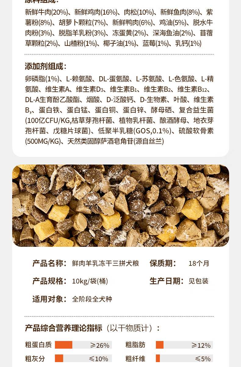 心粮时刻无谷冻干狗粮10kg中小型成犬全价泰迪比熊博美通用狗干粮20斤 【鲜肉羊乳】基础款袋装10kg