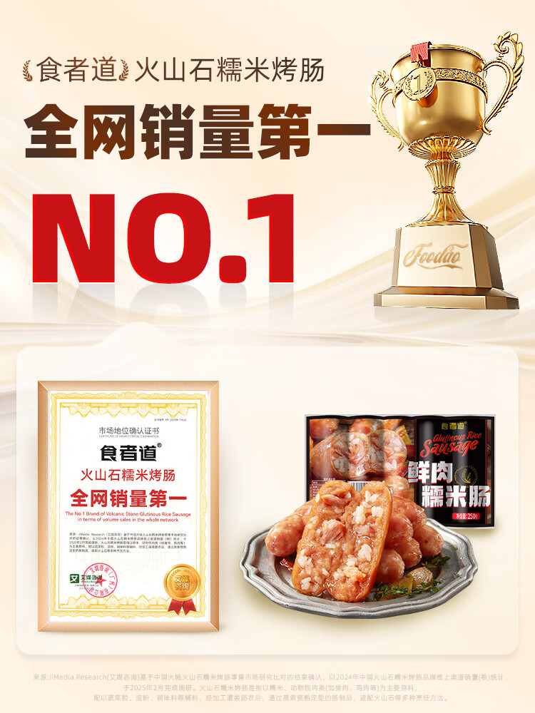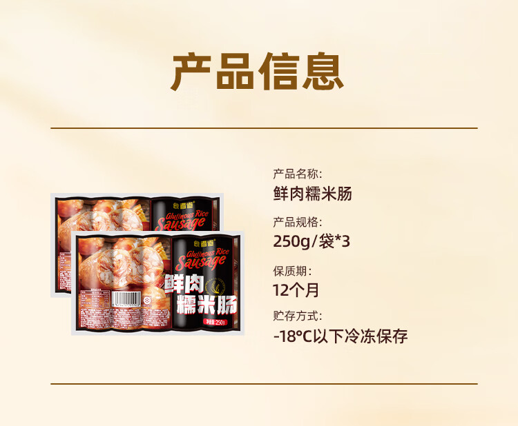 食者道鲜肉糯米肠250g*3 冷冻早餐半成品空气炸锅食材烤肠零食 年货送礼