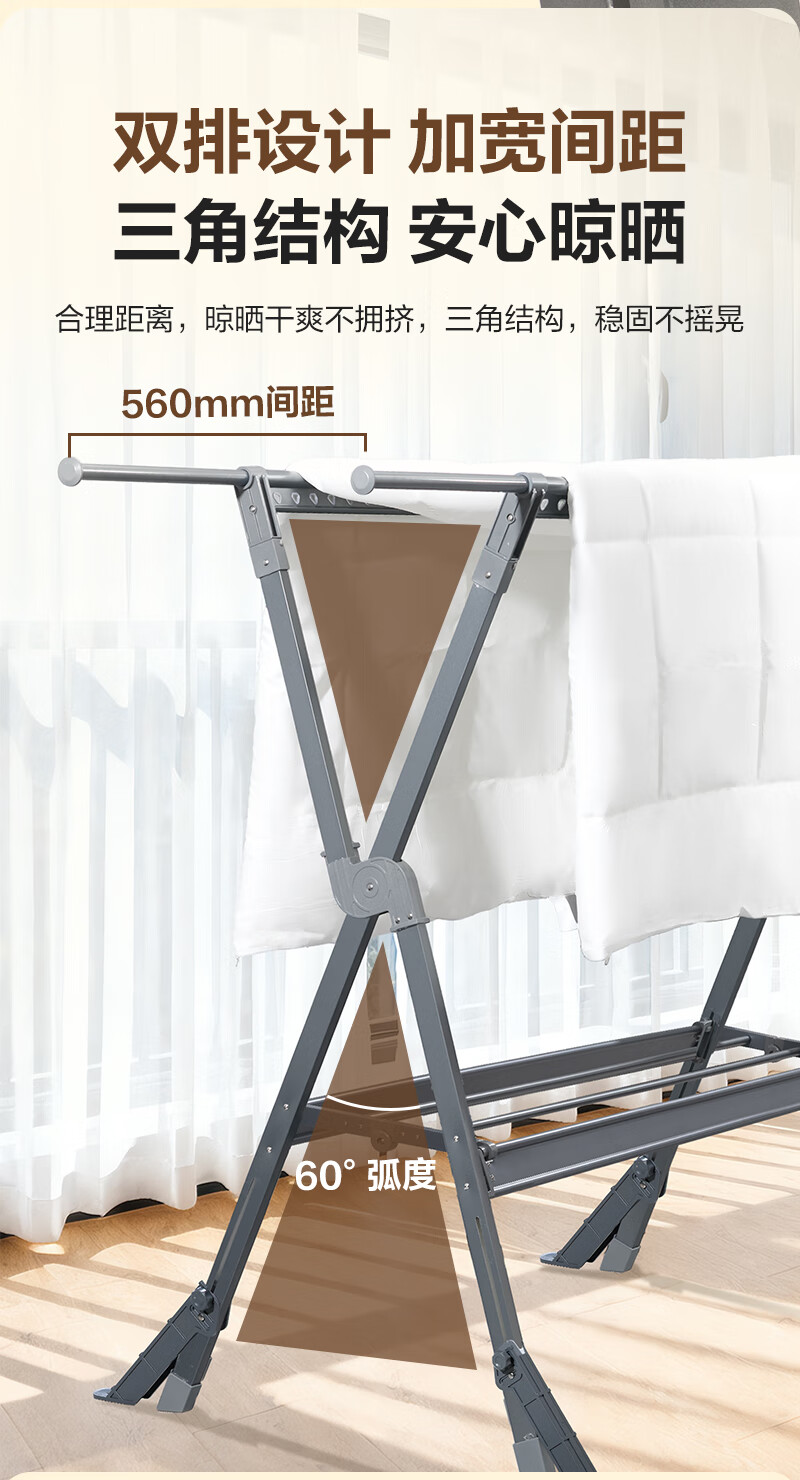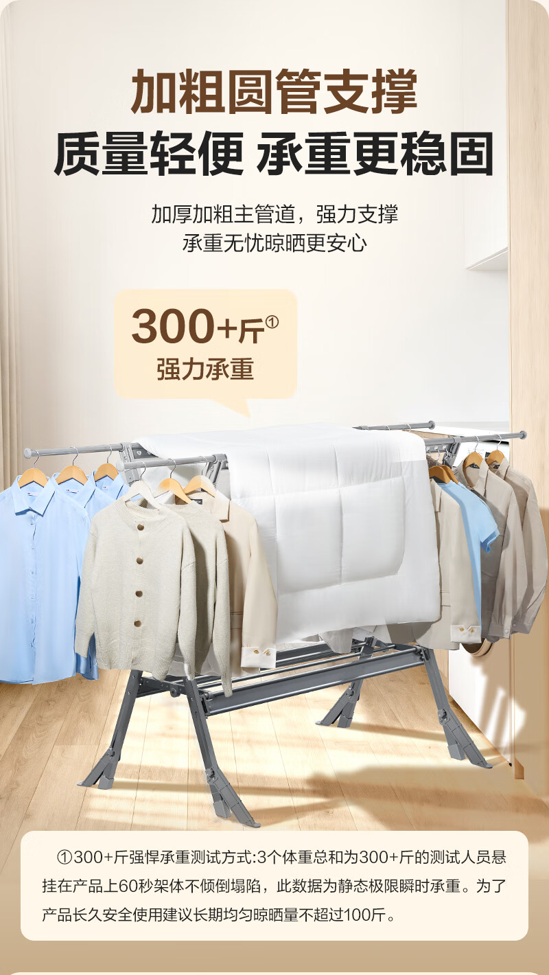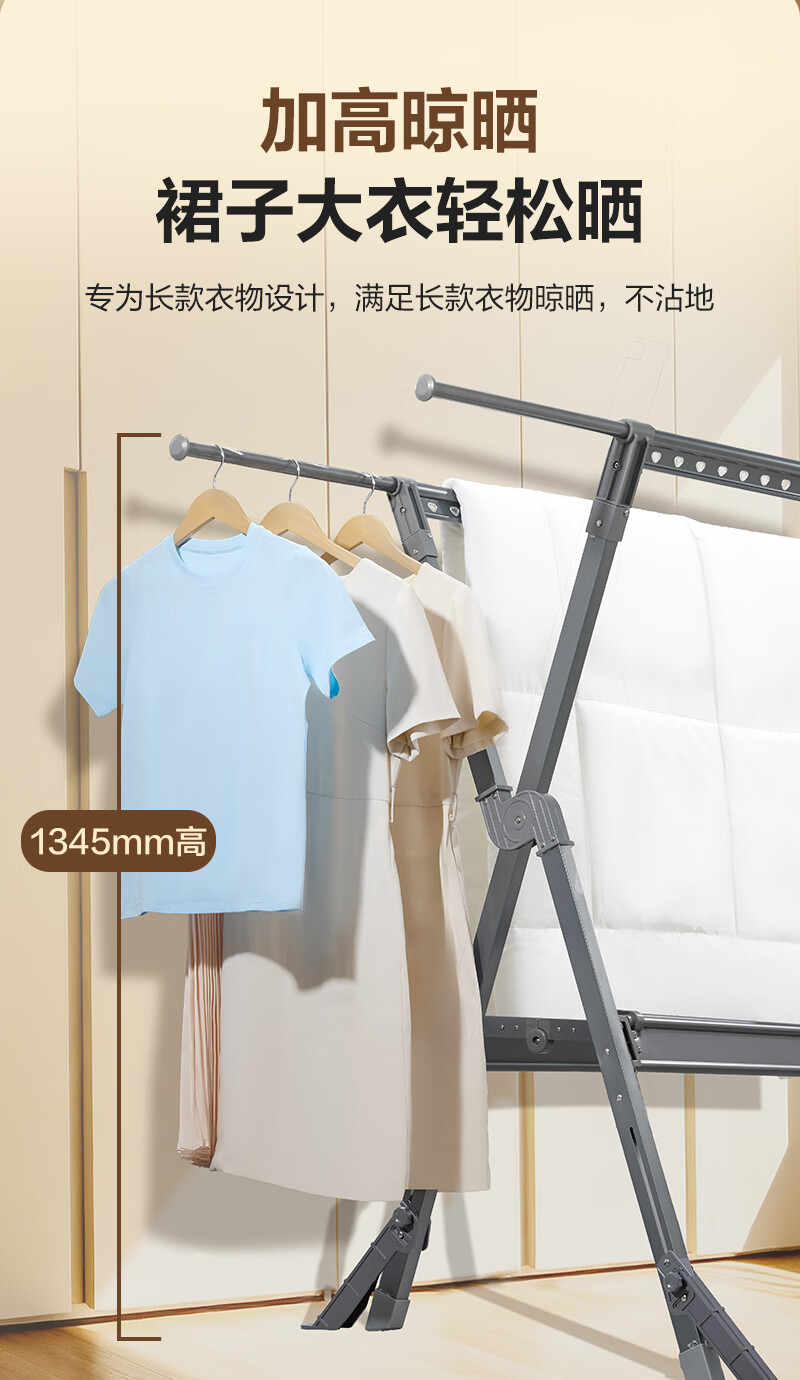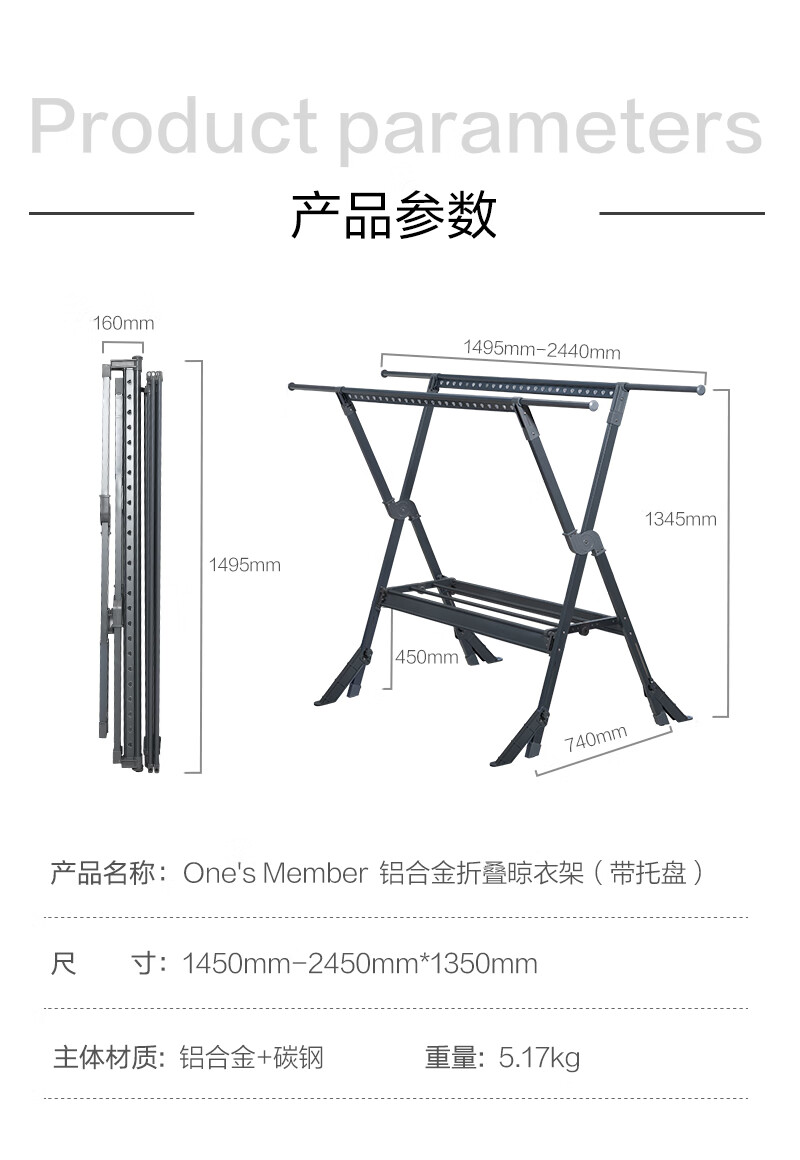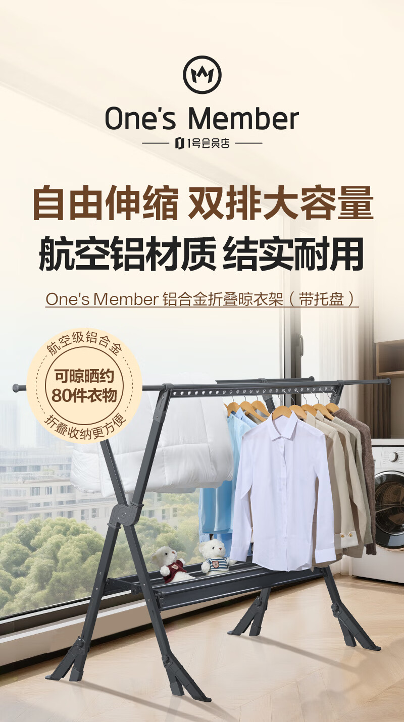 1号会员店(One's Member)落地晾衣架 铝合金可伸缩折叠 阳台晒被子挂衣架 加厚大容量 托盘