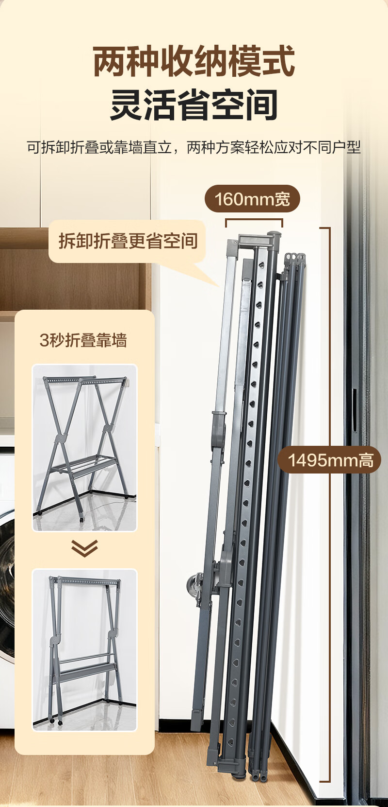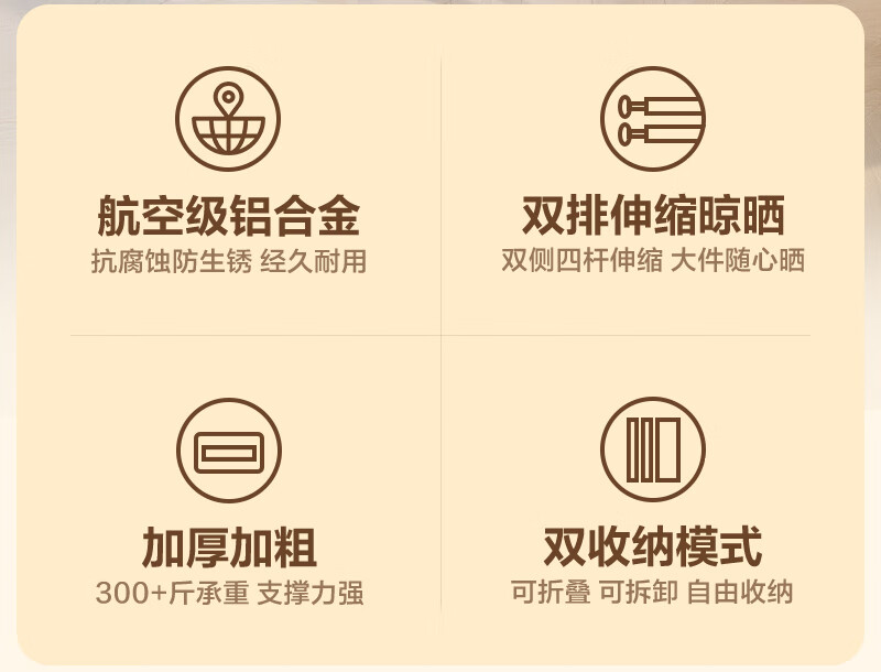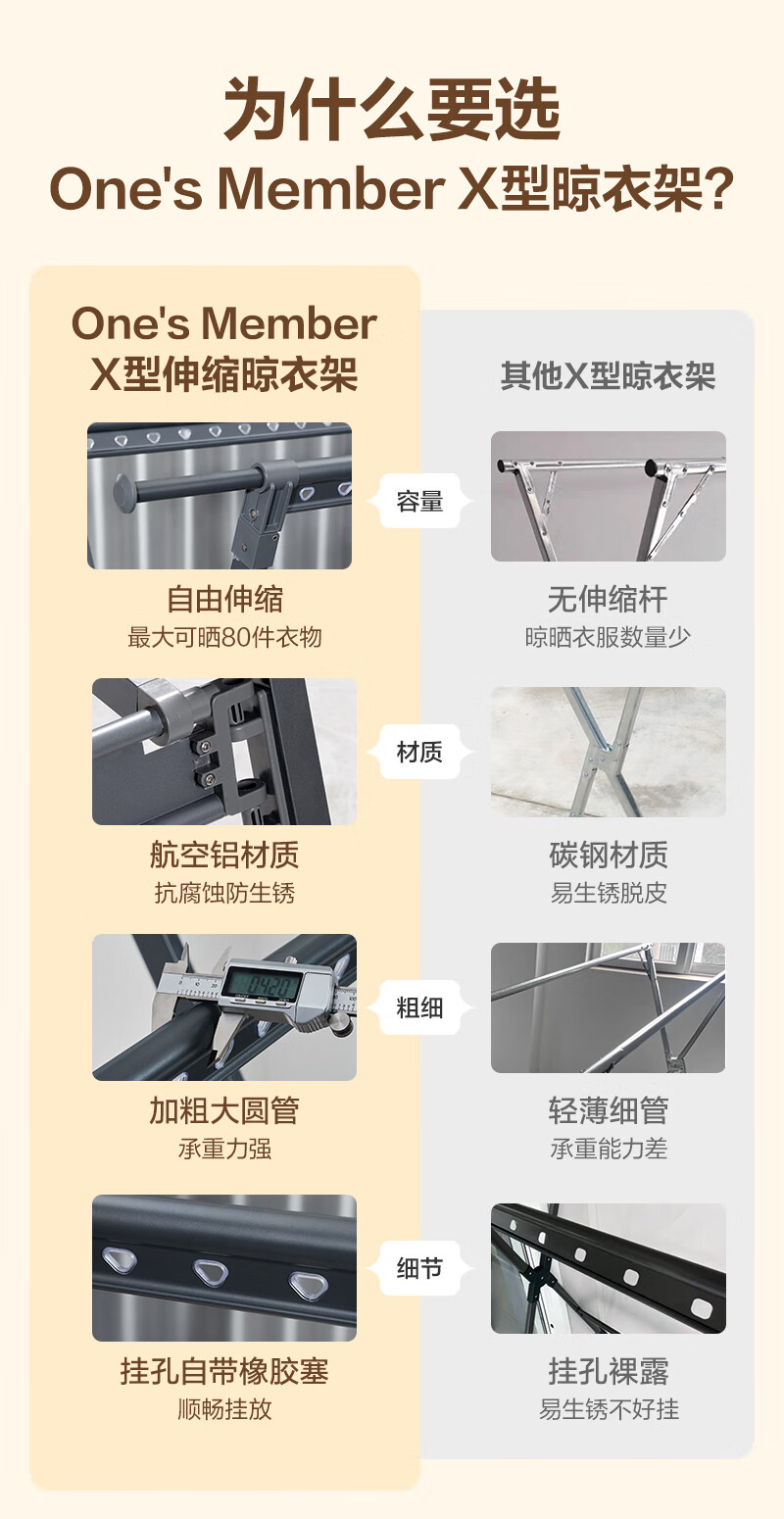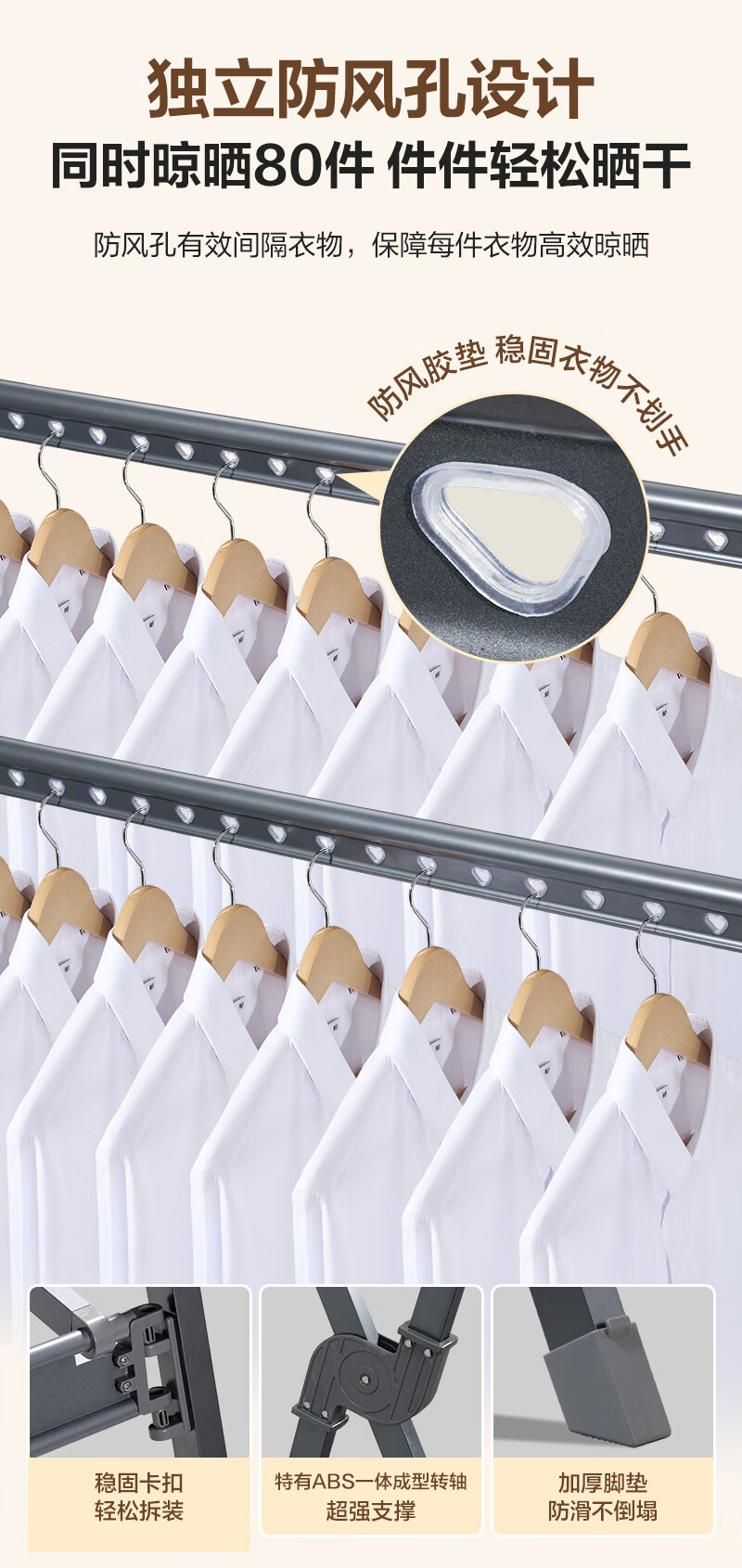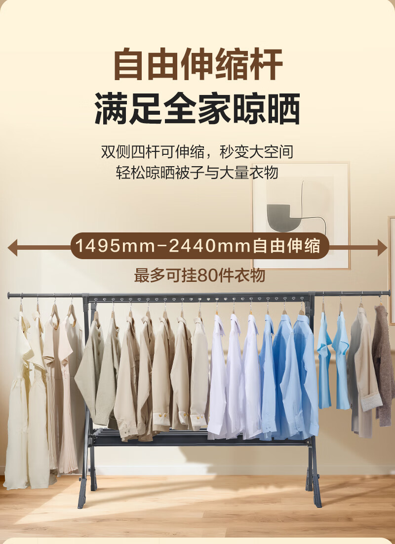 1号会员店(One's Member)落地晾衣架 铝合金可伸缩折叠 阳台晒被子挂衣架 加厚大容量 托盘