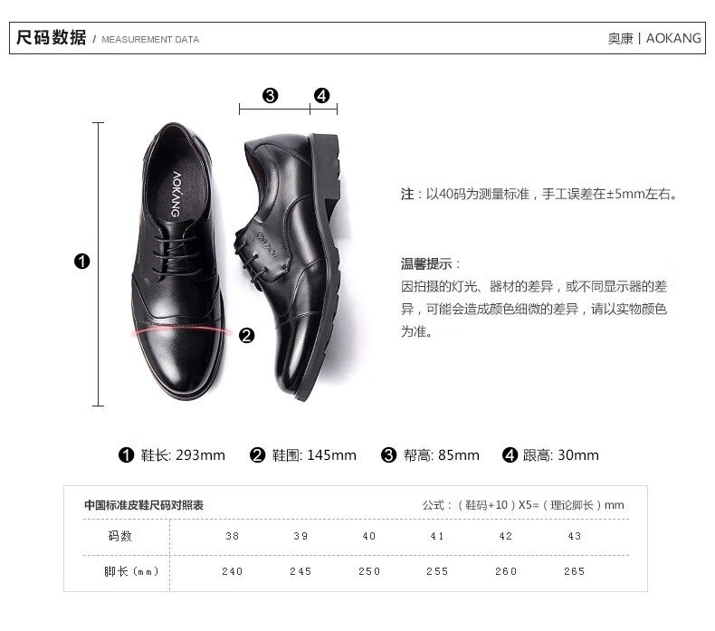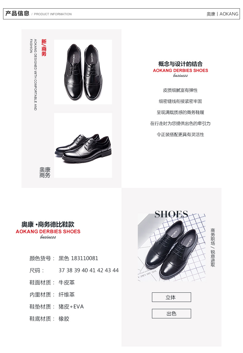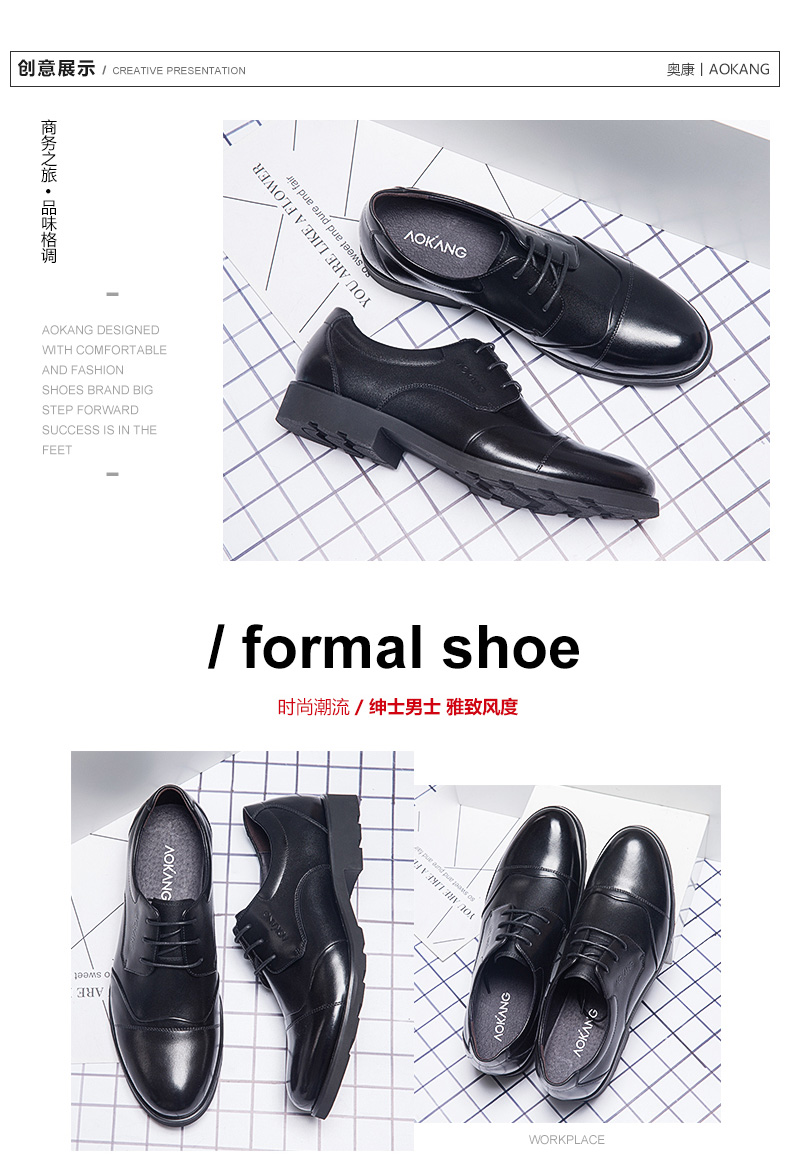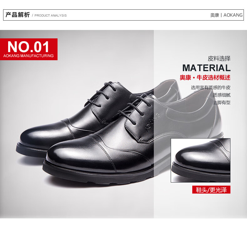 奥康 (Aokang)皮鞋正装男士皮鞋商务鞋舒适透气男鞋子 黑色42
