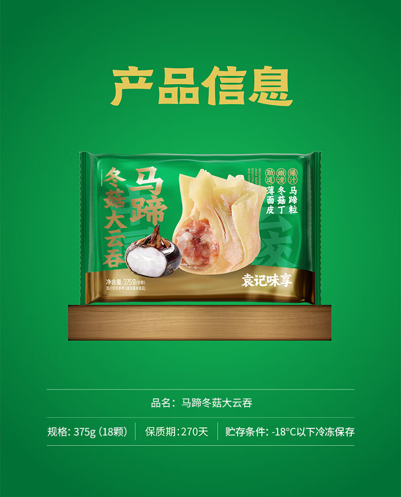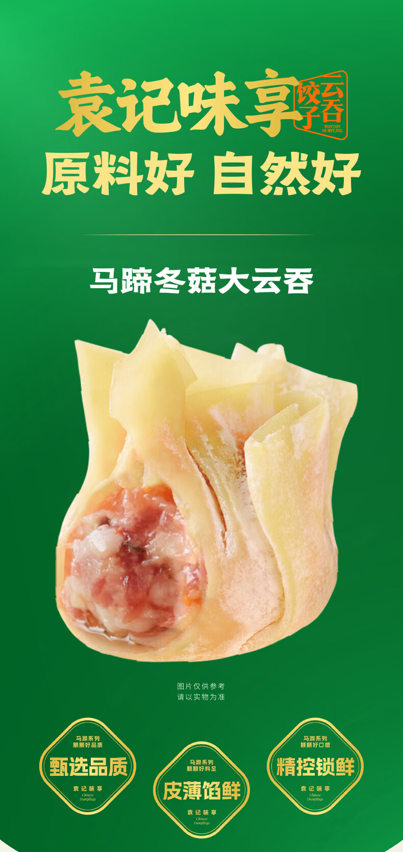 袁记味享袁记云饺 【拍5件打6折】玉米冬菇马蹄鲜肉大馄饨水饺年货送礼 【1盒12颗】玉米鲜肉大云吞250g