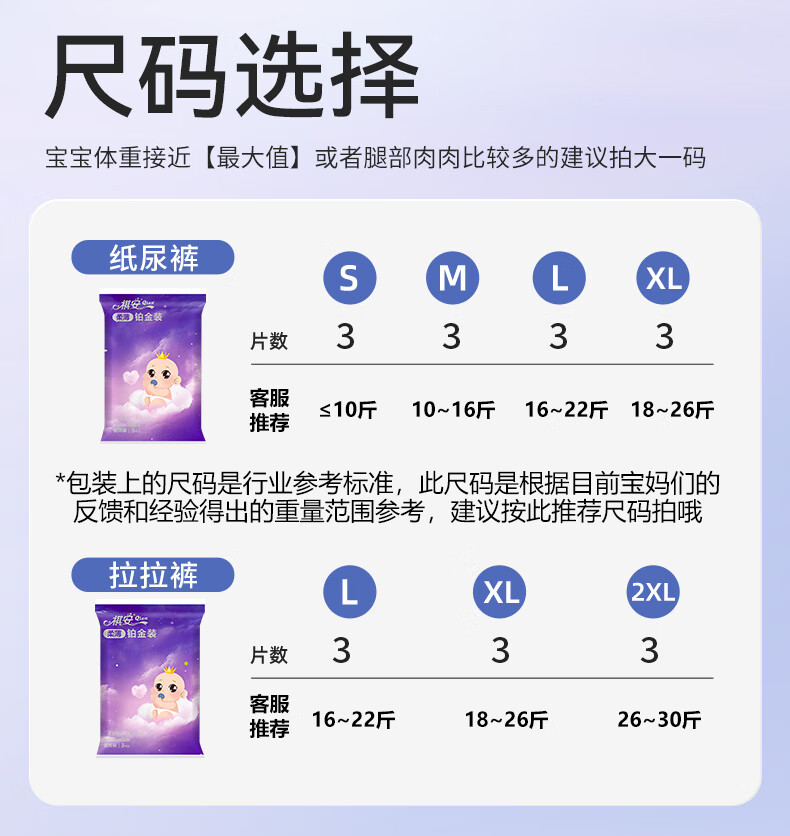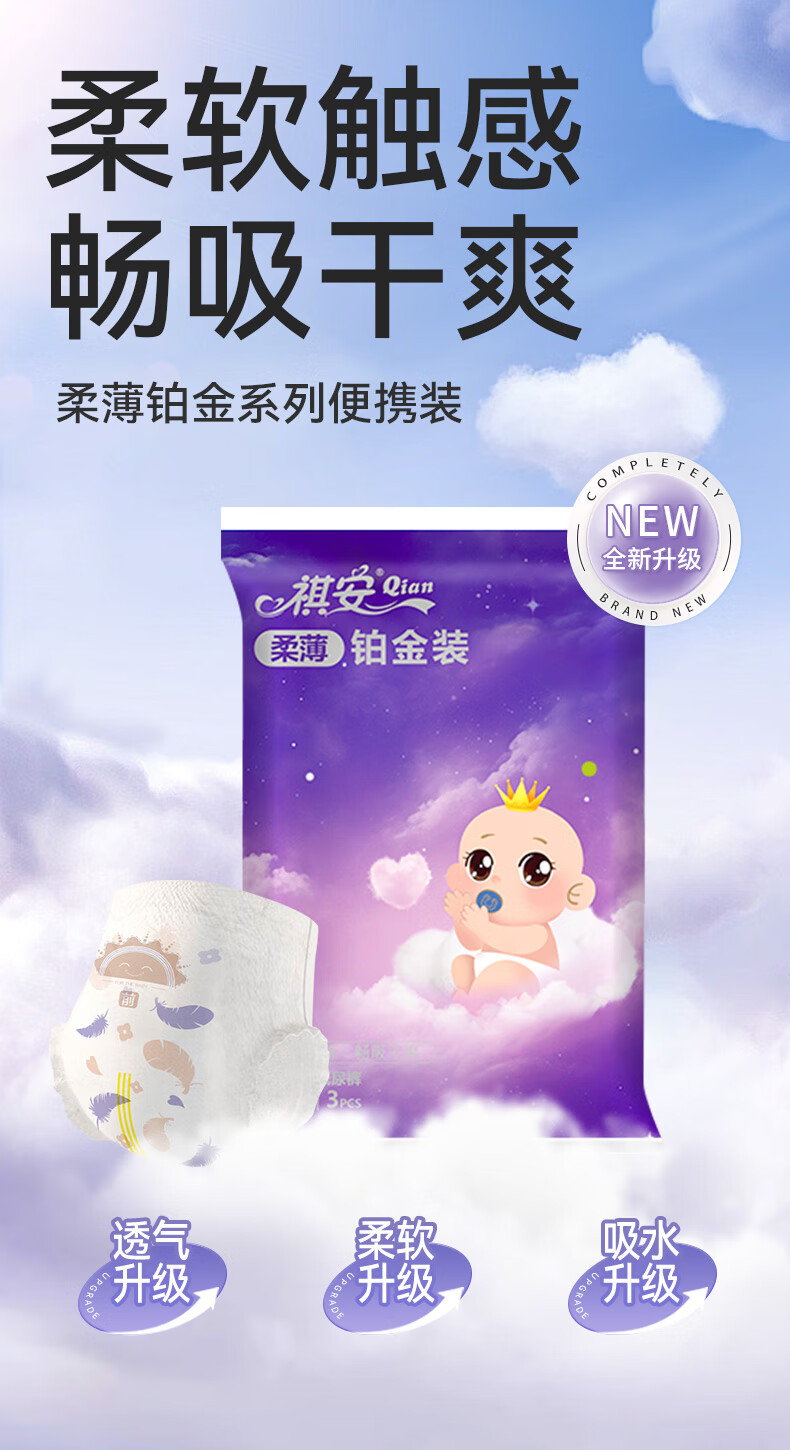 祺安2柔薄铂金拉拉裤超薄透气无感腰围新生婴儿尿裤便携装3片 拉拉裤XXL码3片≥15KG