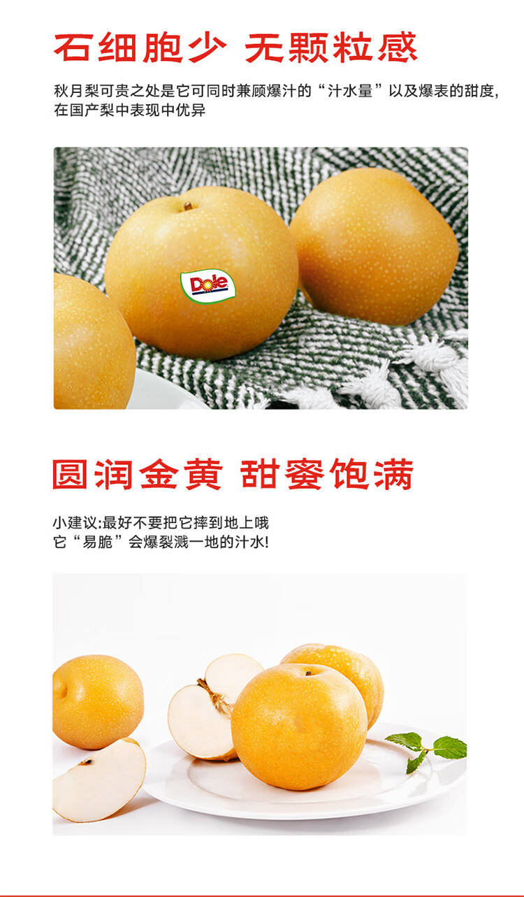 都乐Dole 山东秋月梨3.2斤礼盒装 单果260g+ 皮薄肉厚源头直发 包邮