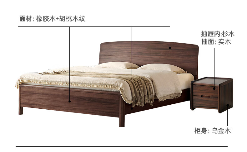 帕沙曼国货补贴全实木床1米8双人床复古主卧原木大板床中古风MC100-Q 【单床】卡槽松木排骨架 1800*2000mm