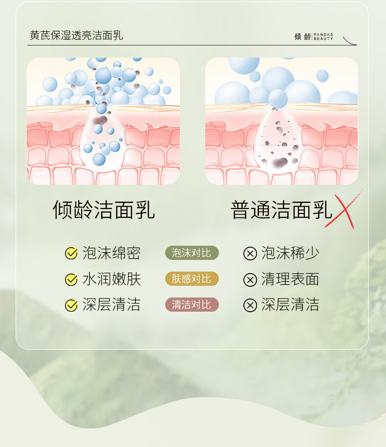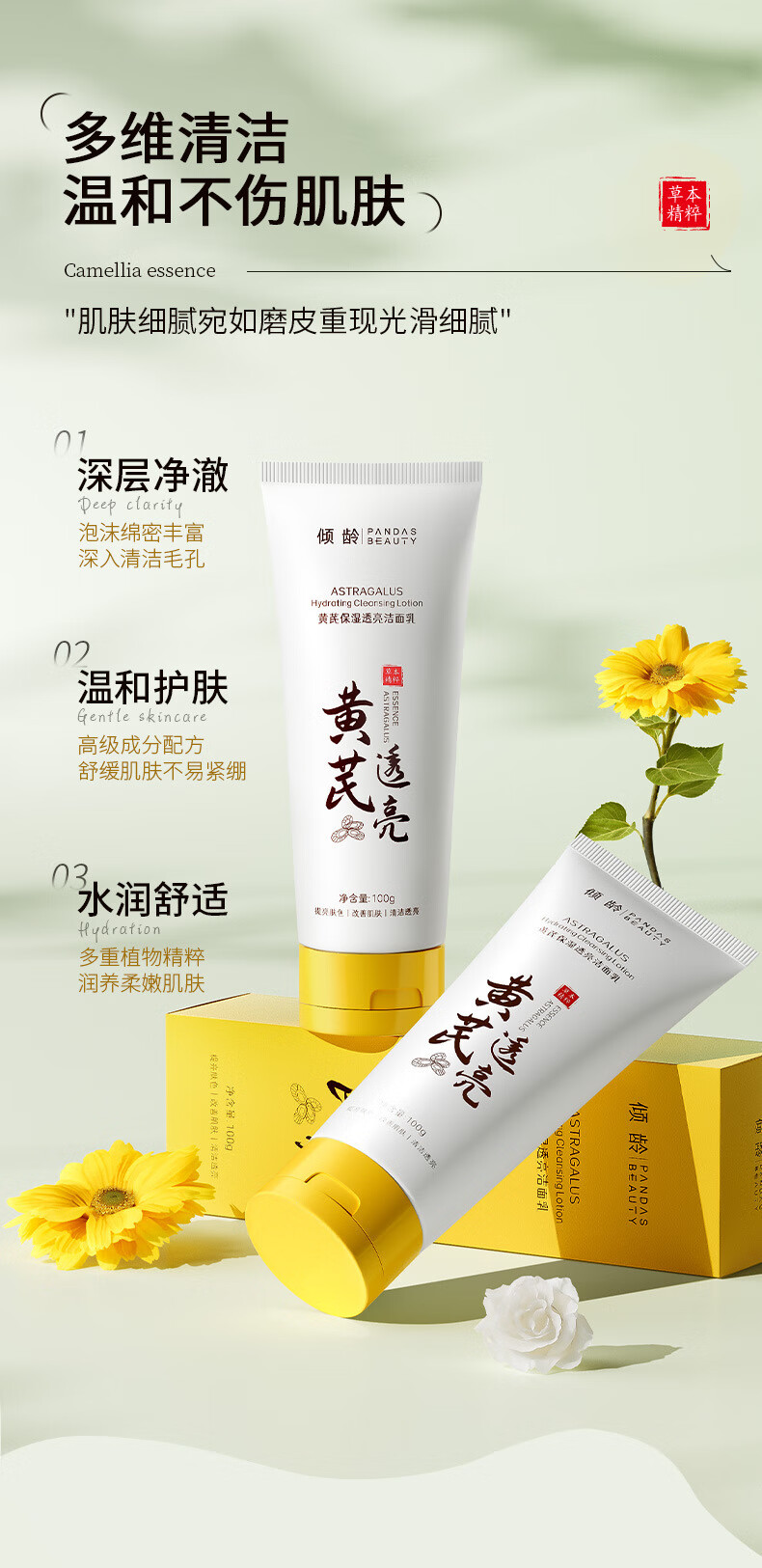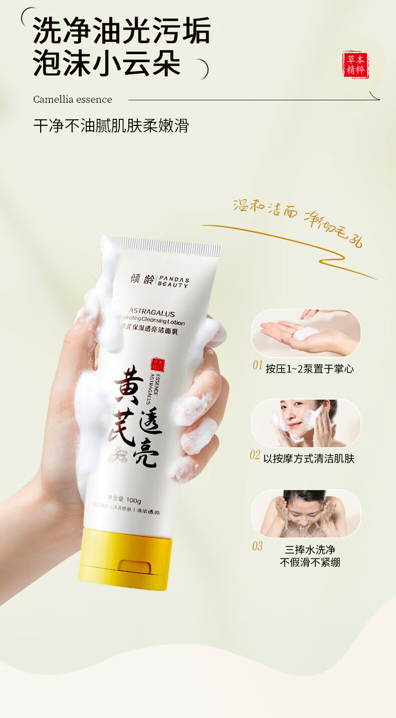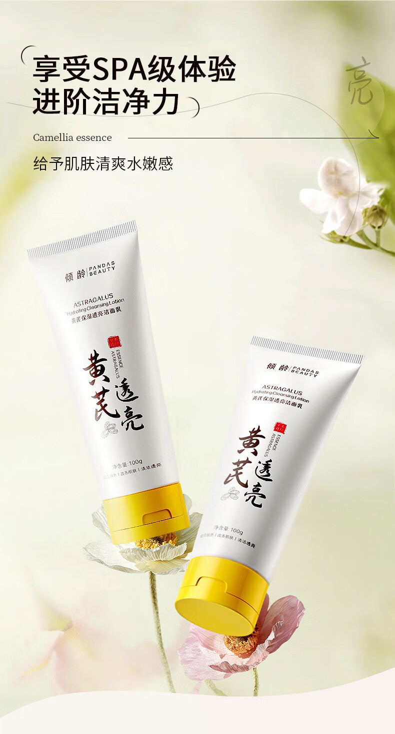 黄芪霜黄芪洗面奶保湿透亮洁面乳红国货温和清洁补水清透洗面奶男女通用 两盒装【第二盒半价】